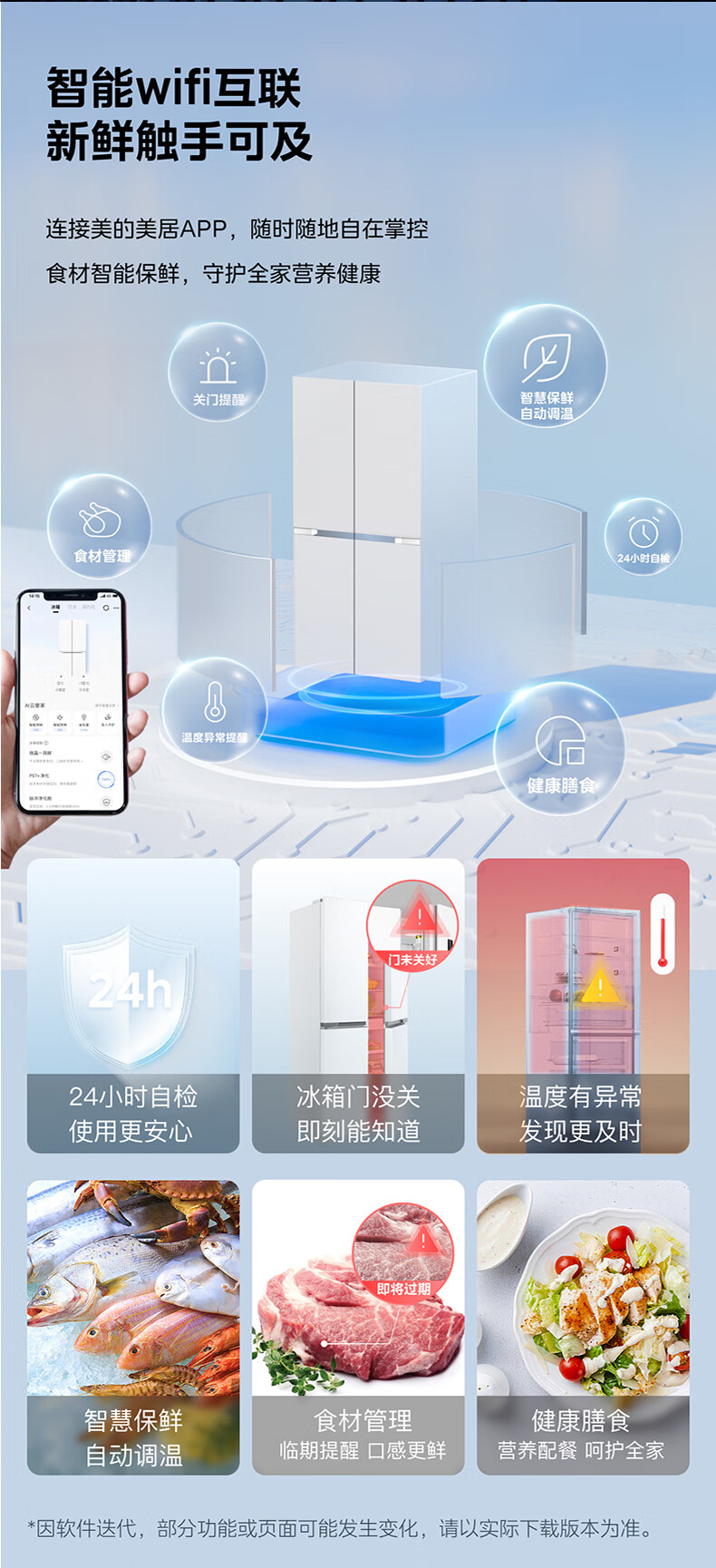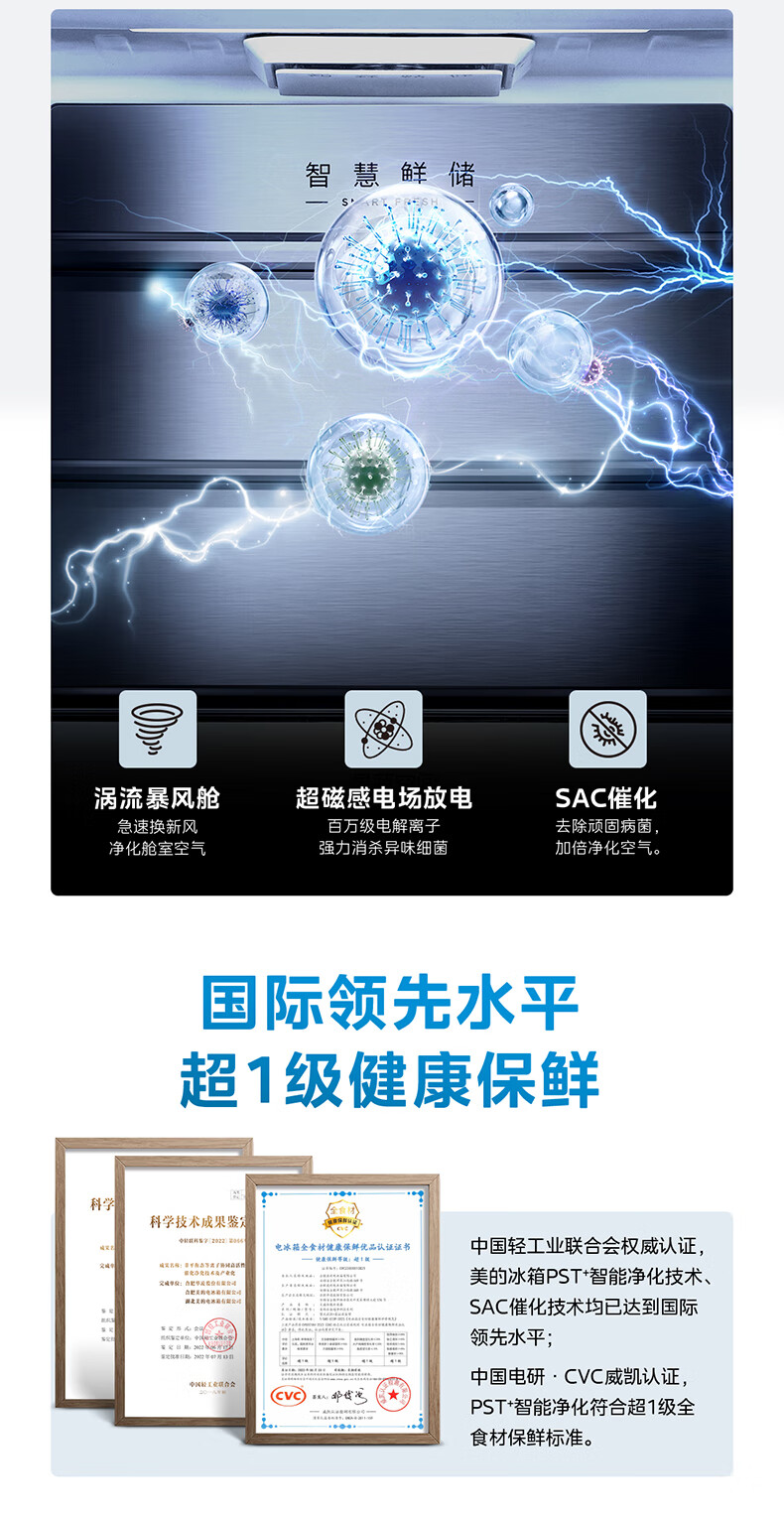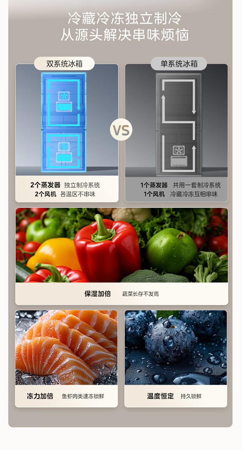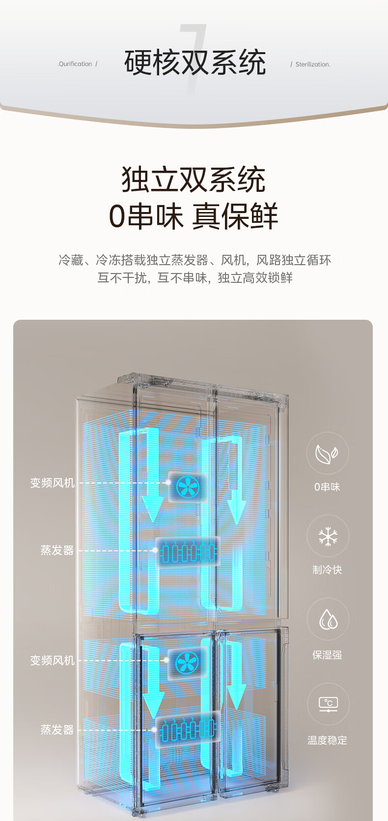 美的(Midea)508L十字门冰箱双系统双循环除菌净味大容量一级能效风冷无霜以旧换新白BCD-508WSPZM(E)国家补贴
