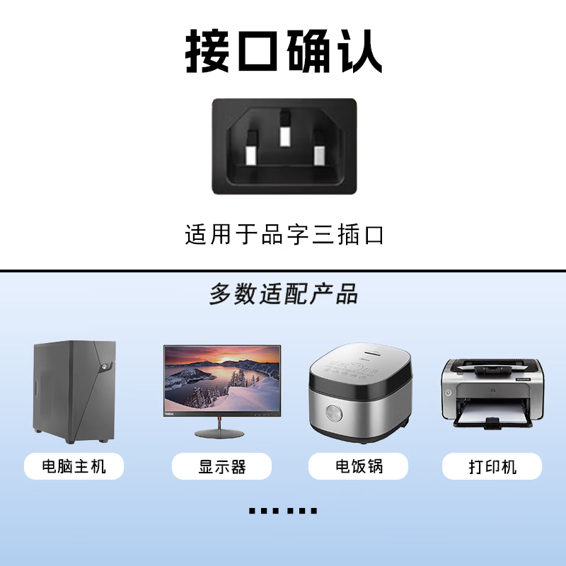 绿效国标三孔电源线电脑主机电源连接线适用显示器电饭煲台式打印机主机箱投影仪三芯通用电源线 梅花尾电源连接线