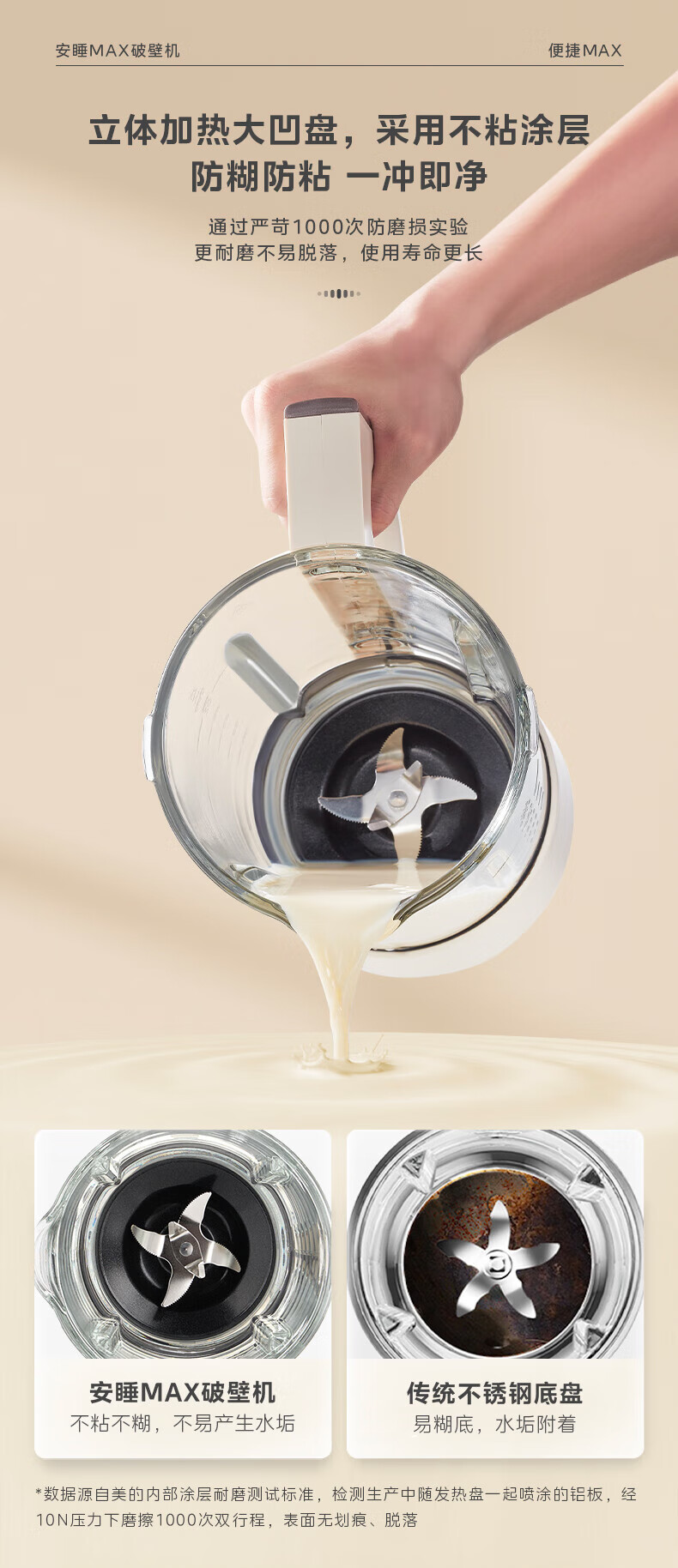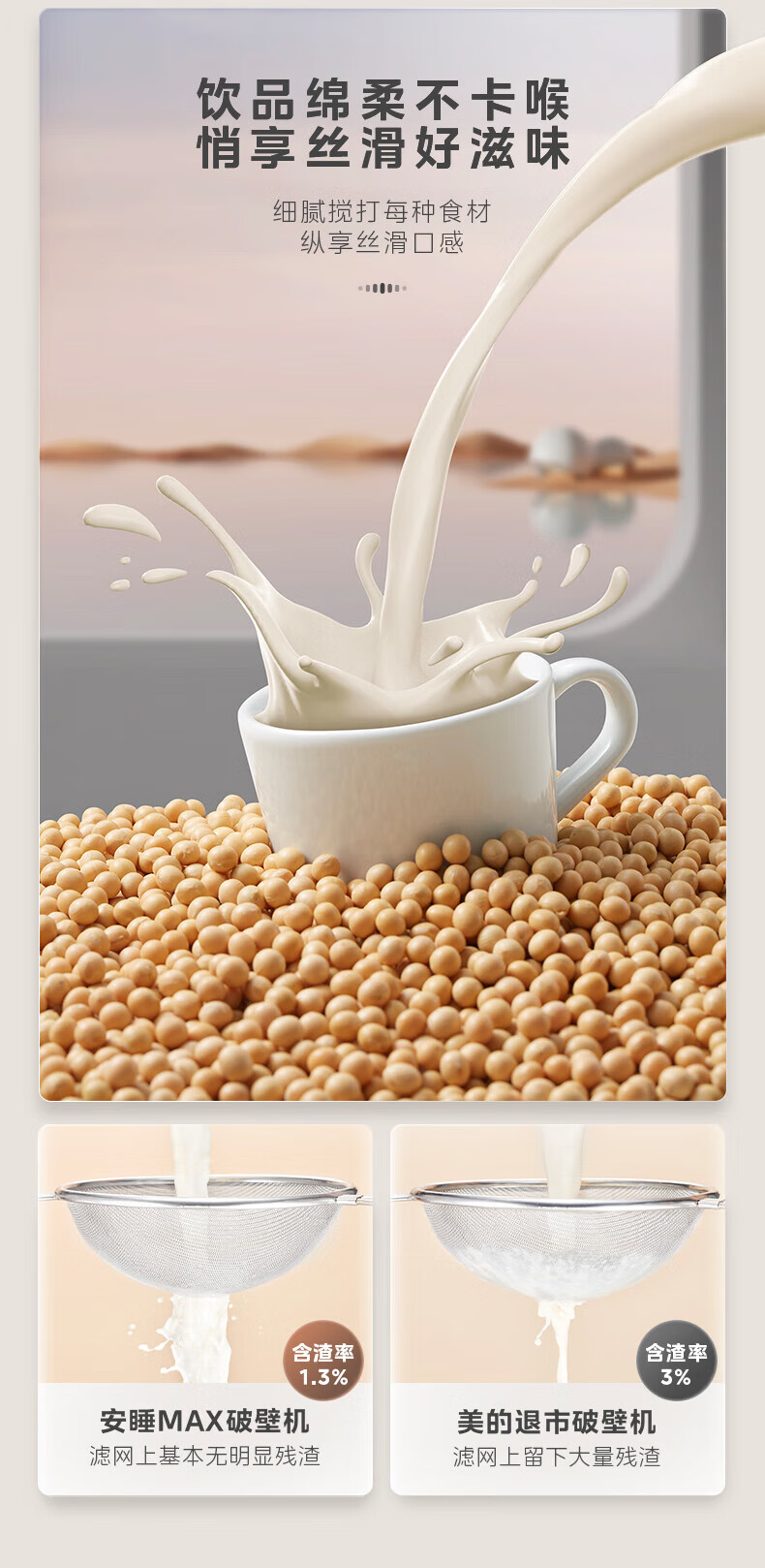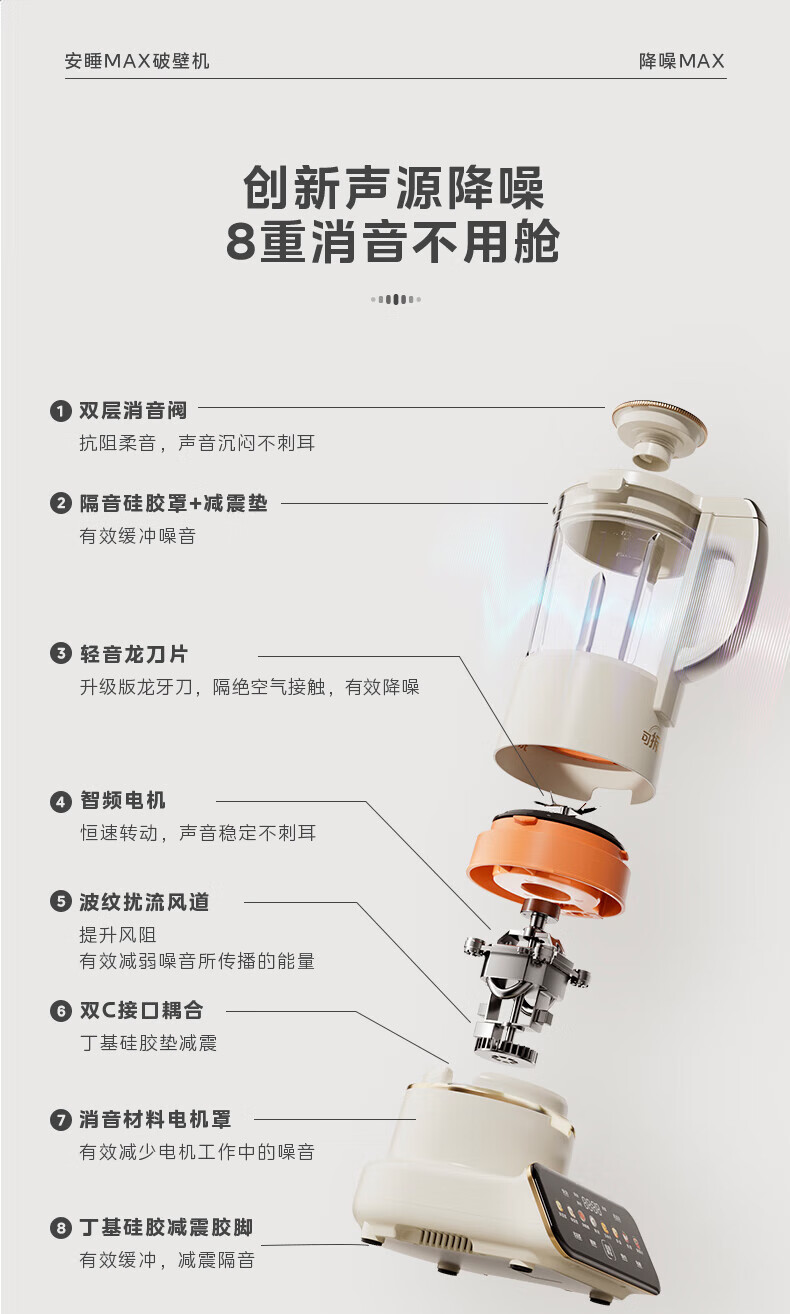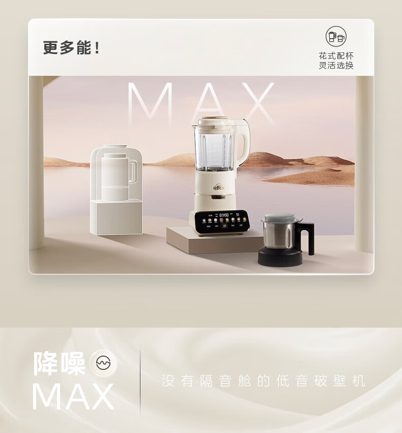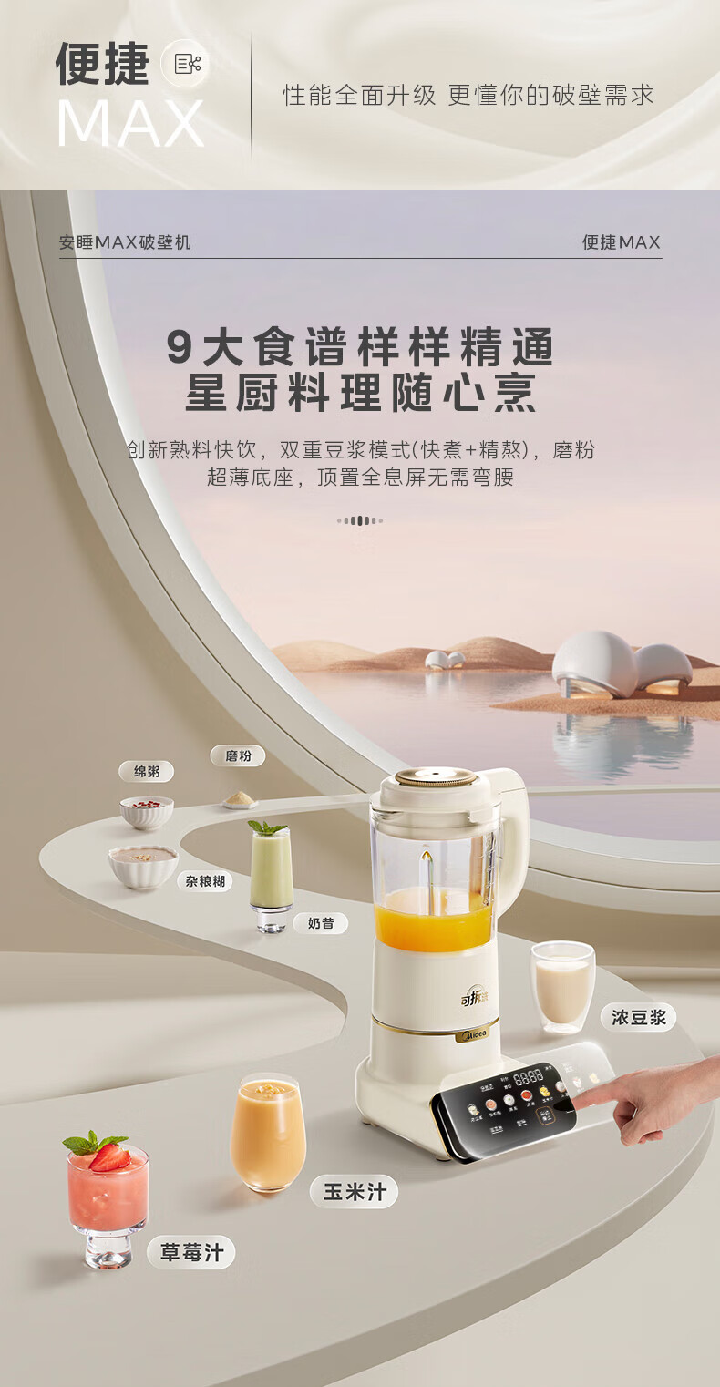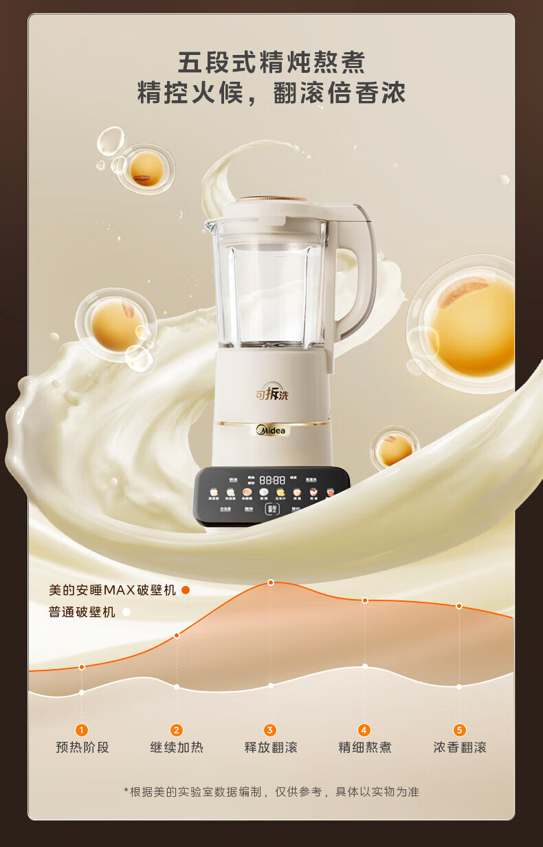 美的(Midea)破壁机豆浆机家用可拆洗1.75L大容量榨汁机安睡Max智能多功低音果汁玉米汁米糊料理机 MJ-PB1S1 【升级】可拆洗~智频电机无仓安睡