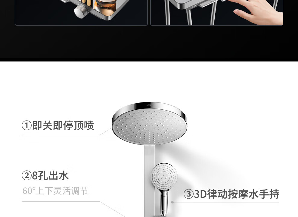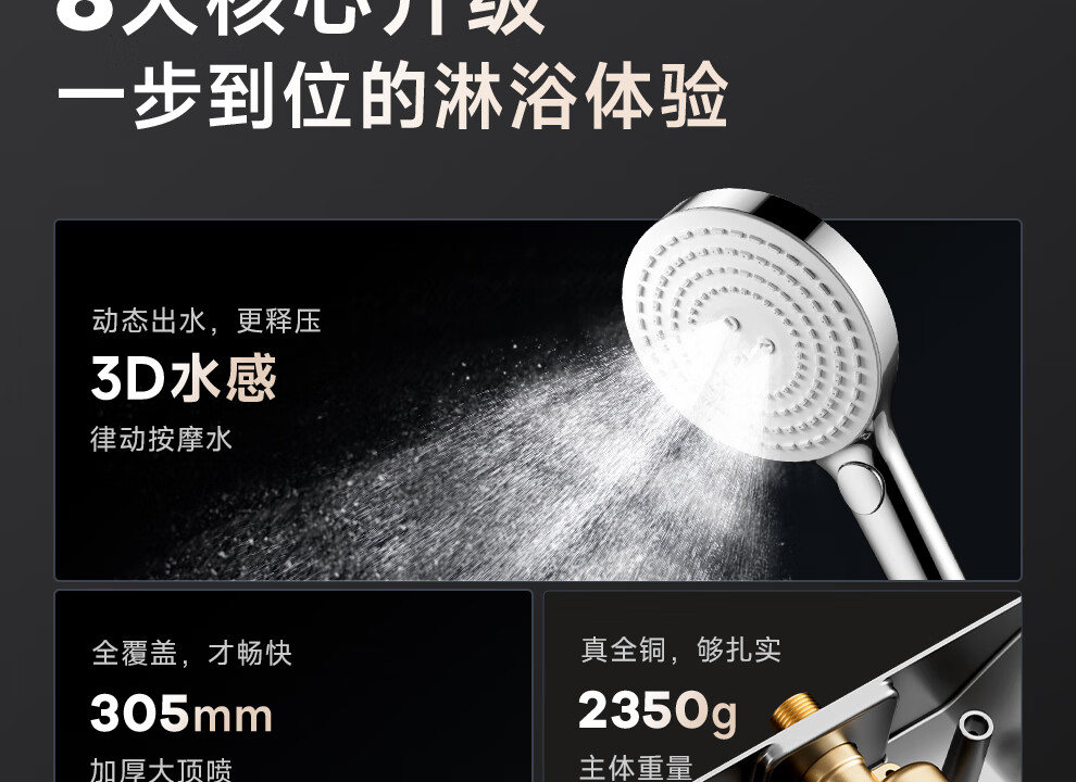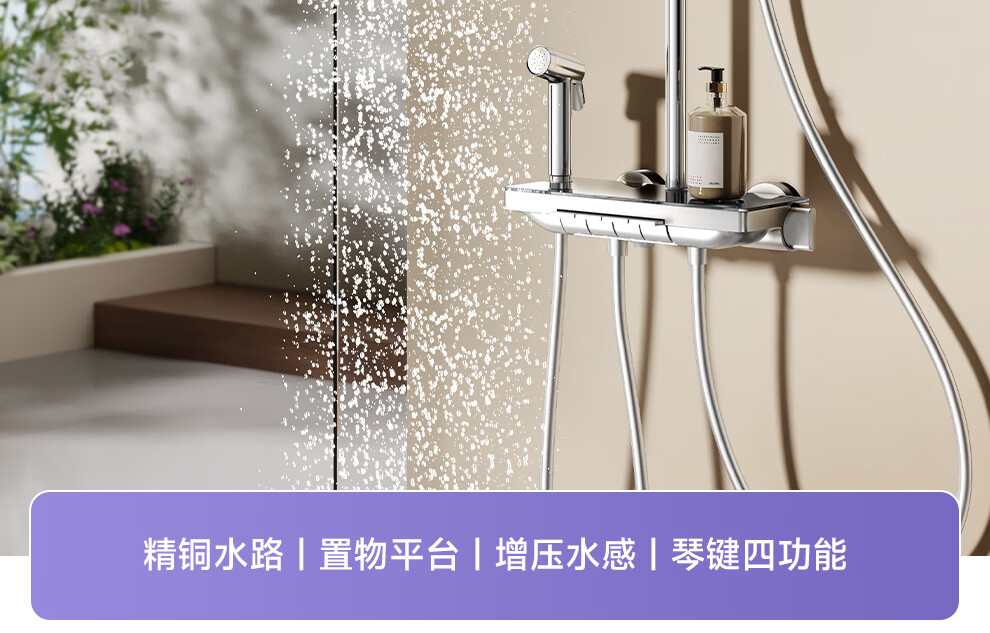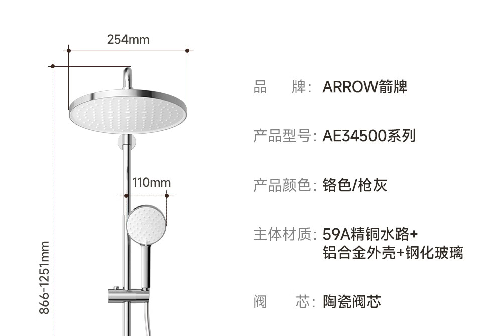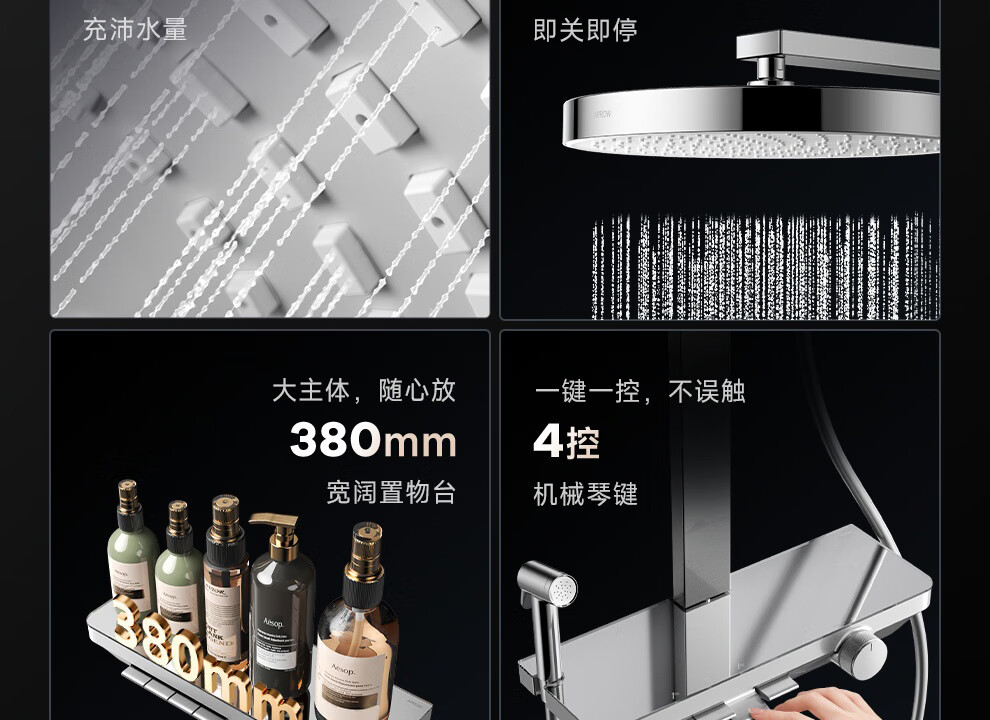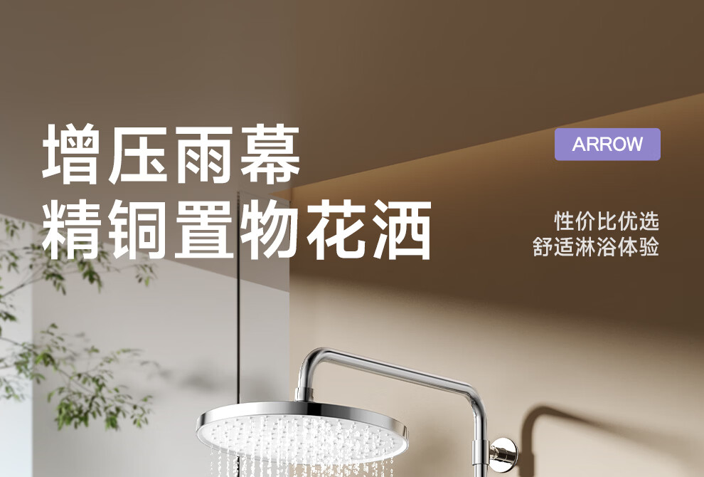 箭牌【焕新补贴】花洒家用淋浴套装卫浴洗澡浴室增压银色置物琴键花洒 34144铜水路|350mm大置物平台|钢琴按键