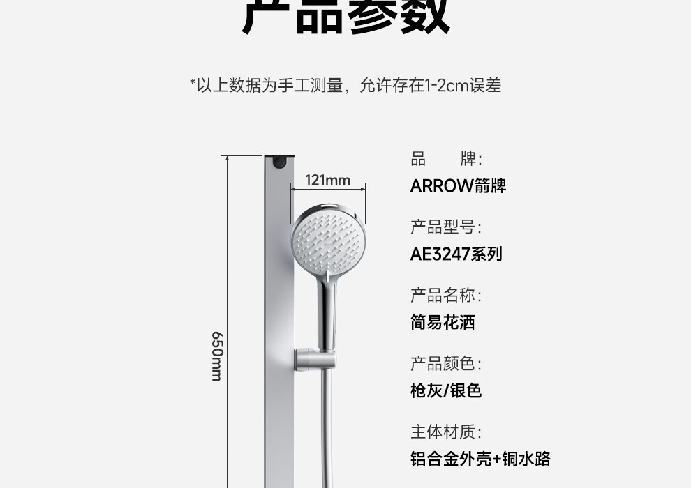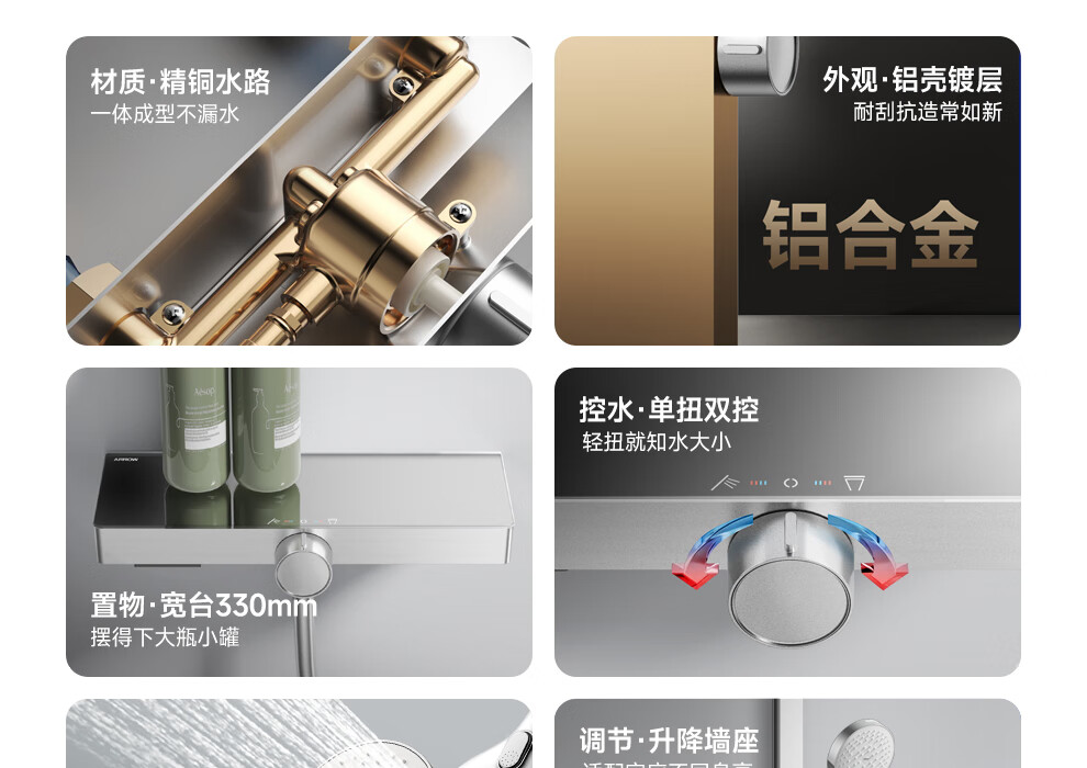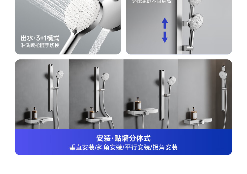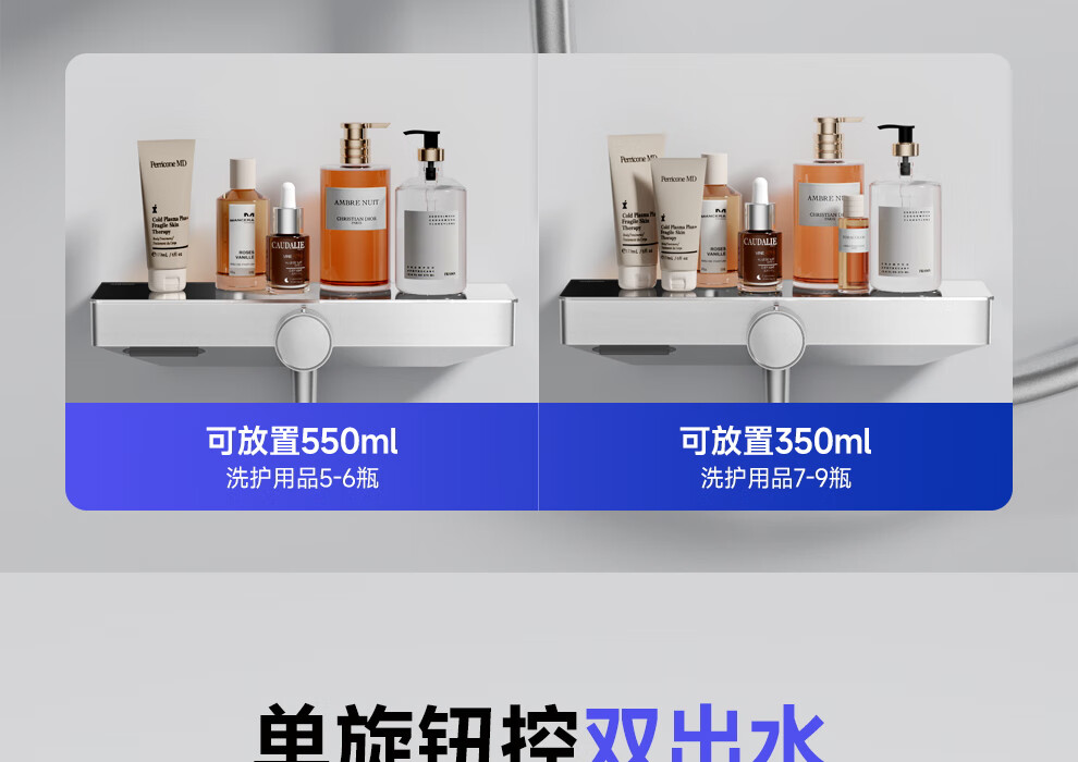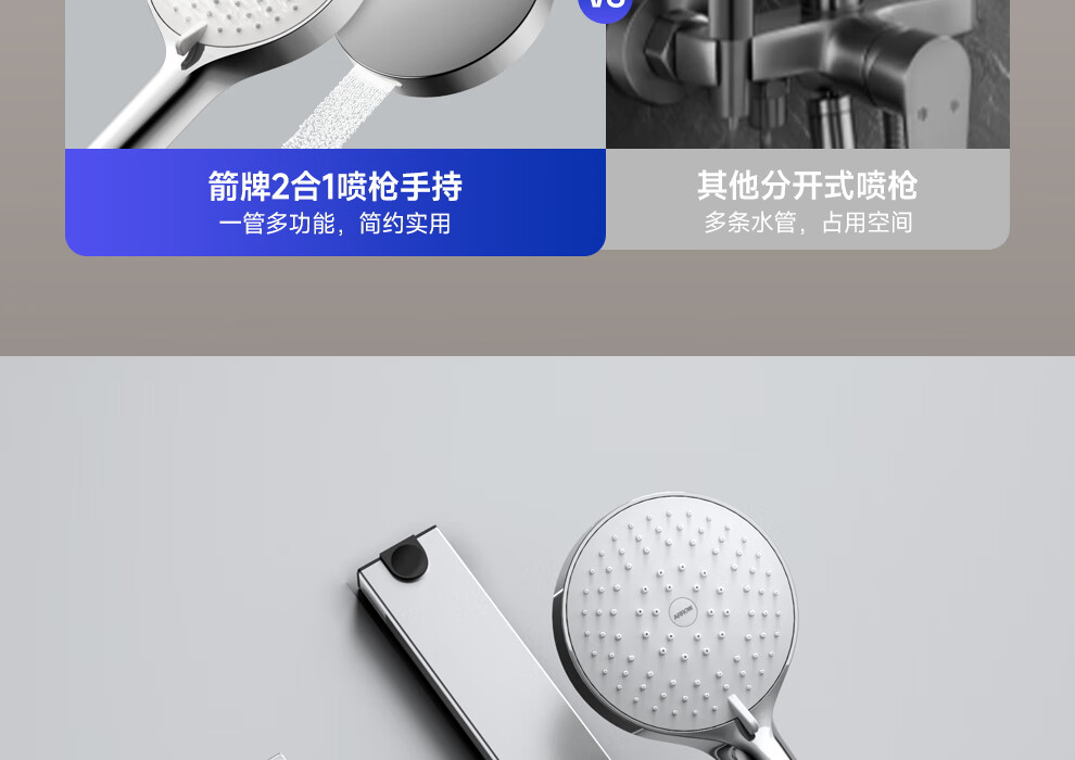 箭牌【焕新补贴】花洒家用淋浴套装卫浴洗澡浴室增压银色置物琴键花洒 34144铜水路|350mm大置物平台|钢琴按键