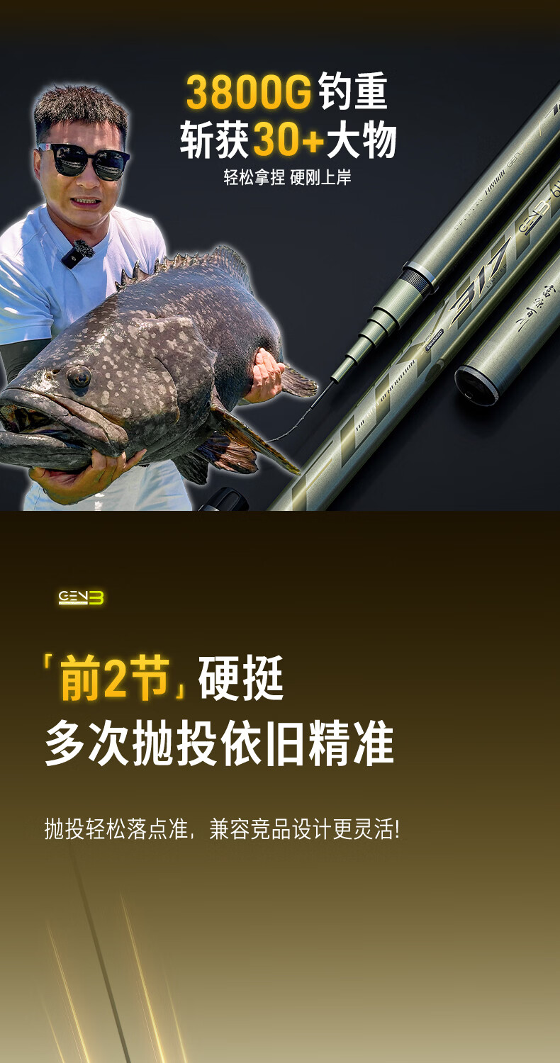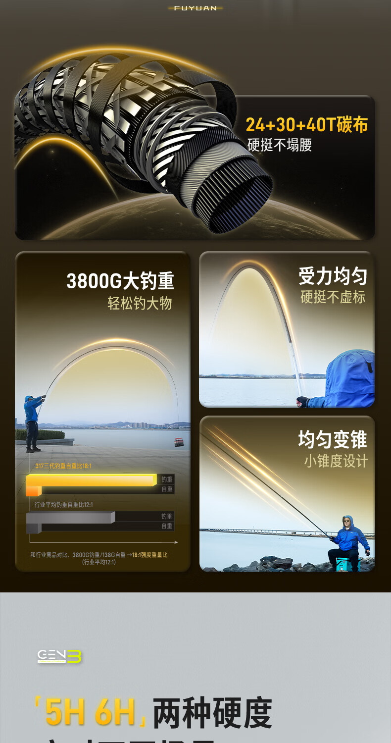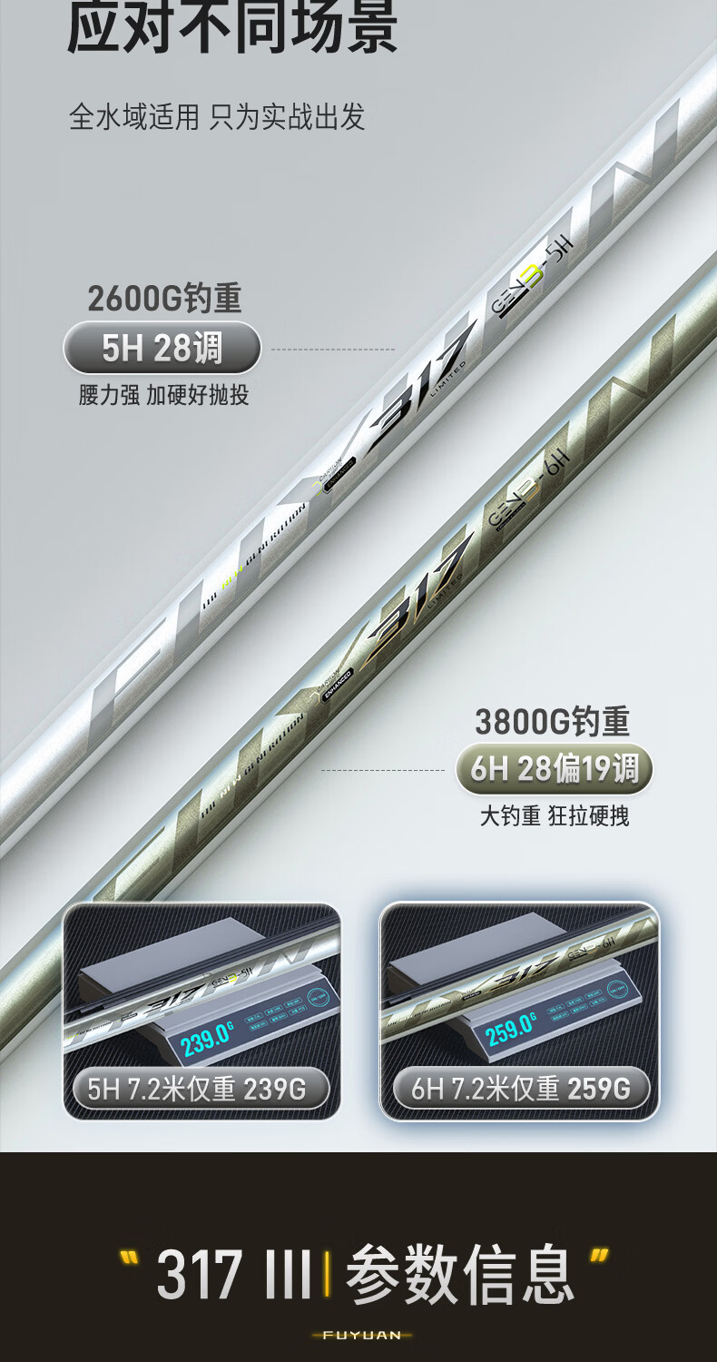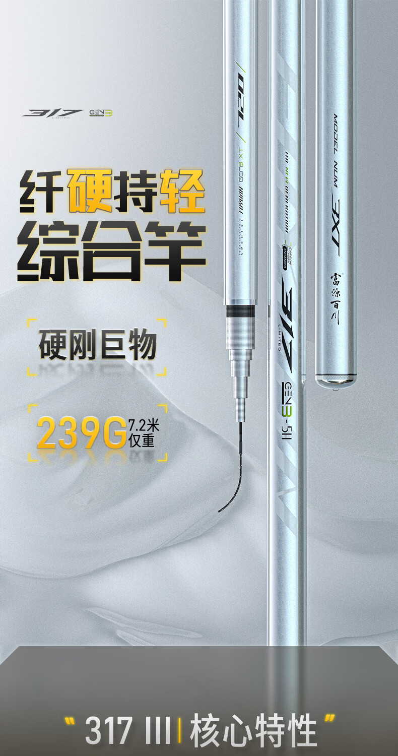 富源百川317三代综合鱼竿钓鱼竿超硬超轻台钓杆碳素鱼杆鲫鱼竿轻量手竿 6.3m 5H 综合竿