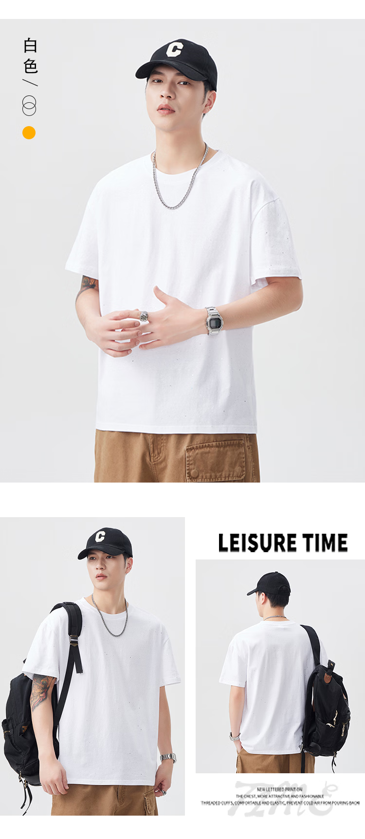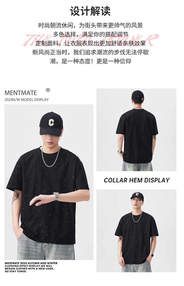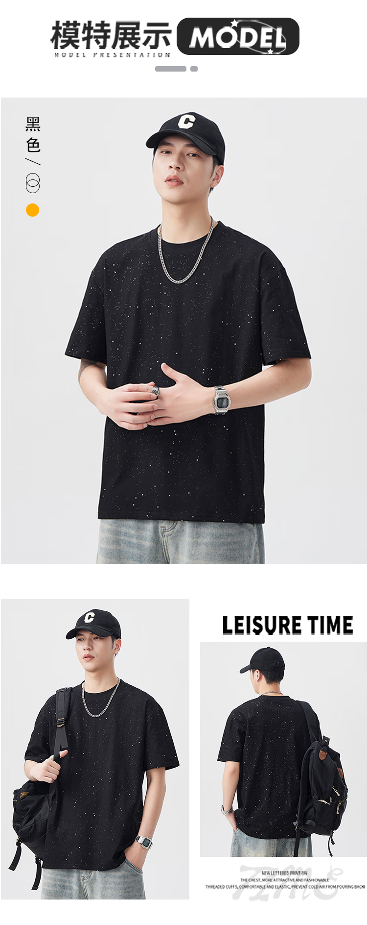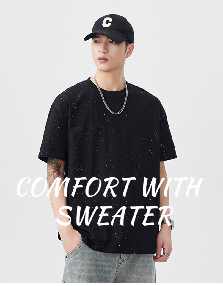 真维斯美式纯棉星空T恤男士夏季潮牌高街宽松休闲短袖 黑色 【官方正品】 M 【建议100-120斤】
