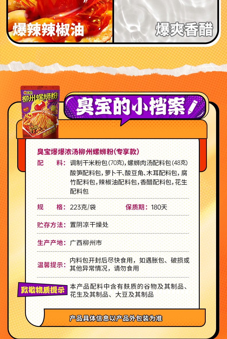 臭宝螺蛳粉(水煮型)广西柳州螺蛳粉方便速食米粉米线爆爆浓汤系列 【推荐】6袋组合装 共1465g