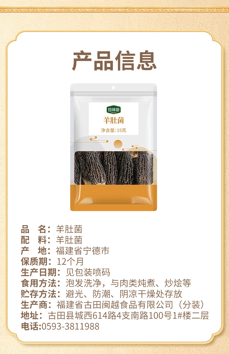 珍锦荟羊肚菌15g 山珍菌菇 干货云南特产炖煮煲汤炒菜火锅食材