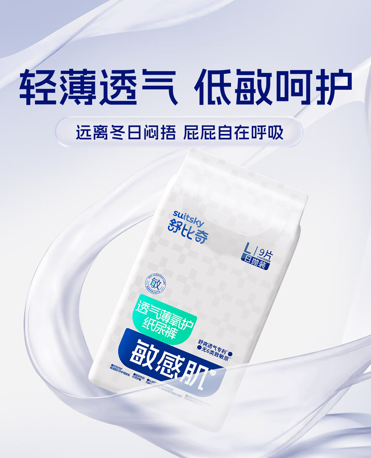 舒比奇透气薄氧护日抛装敏感肌纸尿裤L码9片体验装