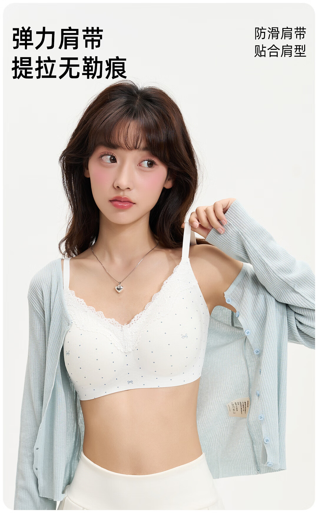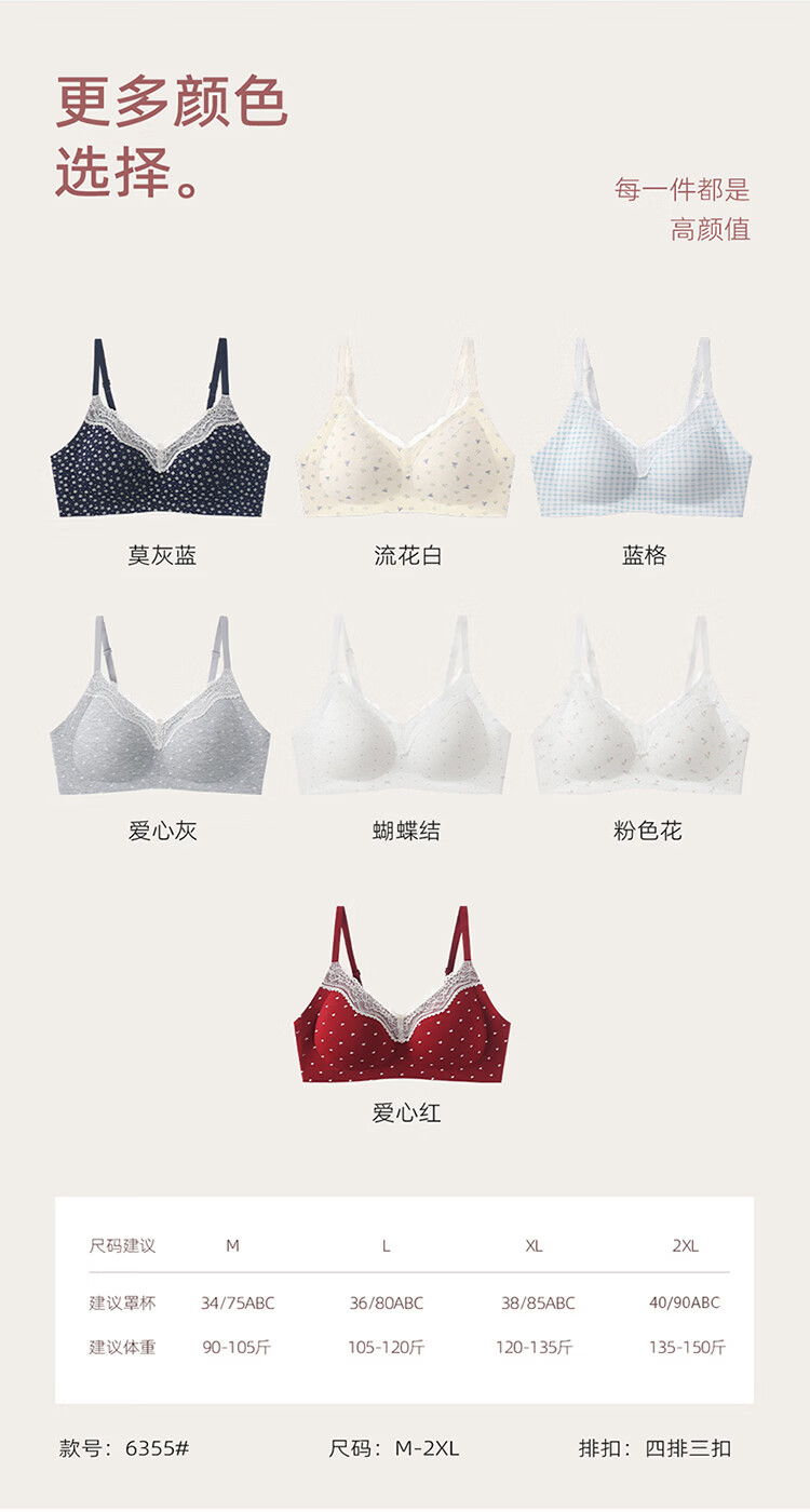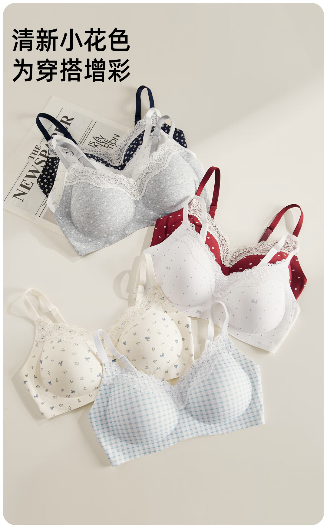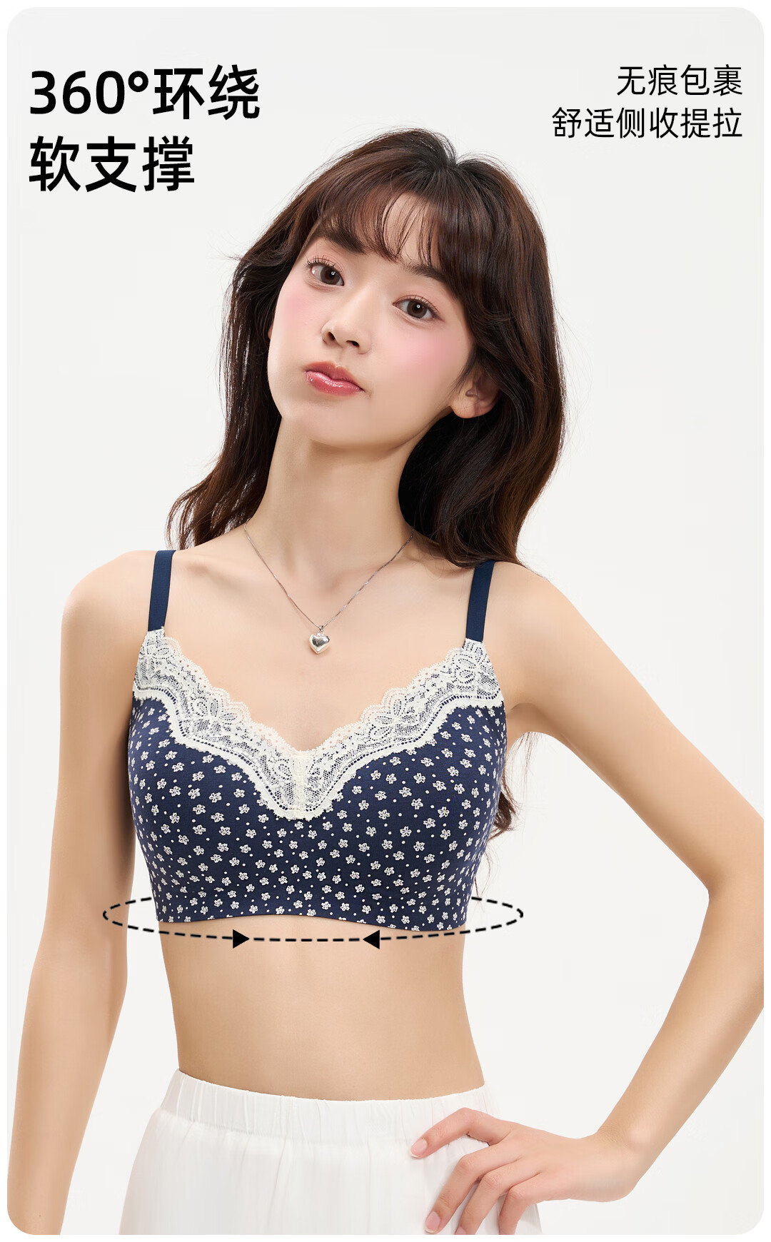 草本初色女士内衣女法式蕾丝性感深V细腻亲肤透气无痕柔软高弹少女文胸 莫灰蓝 2XL 建议【135-150斤】