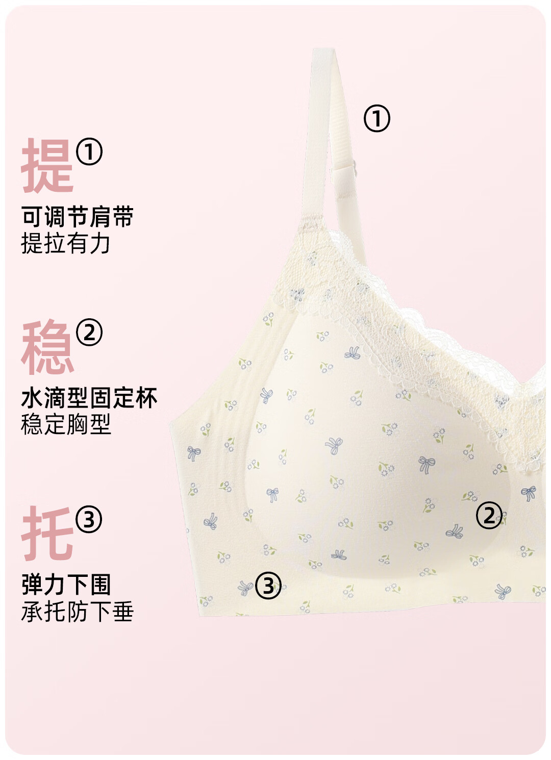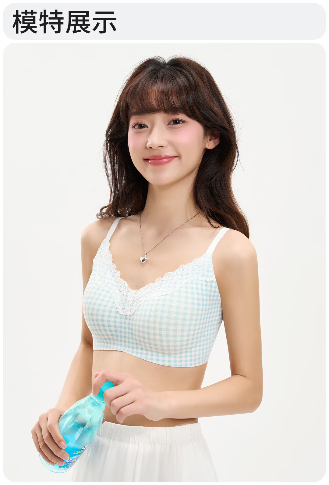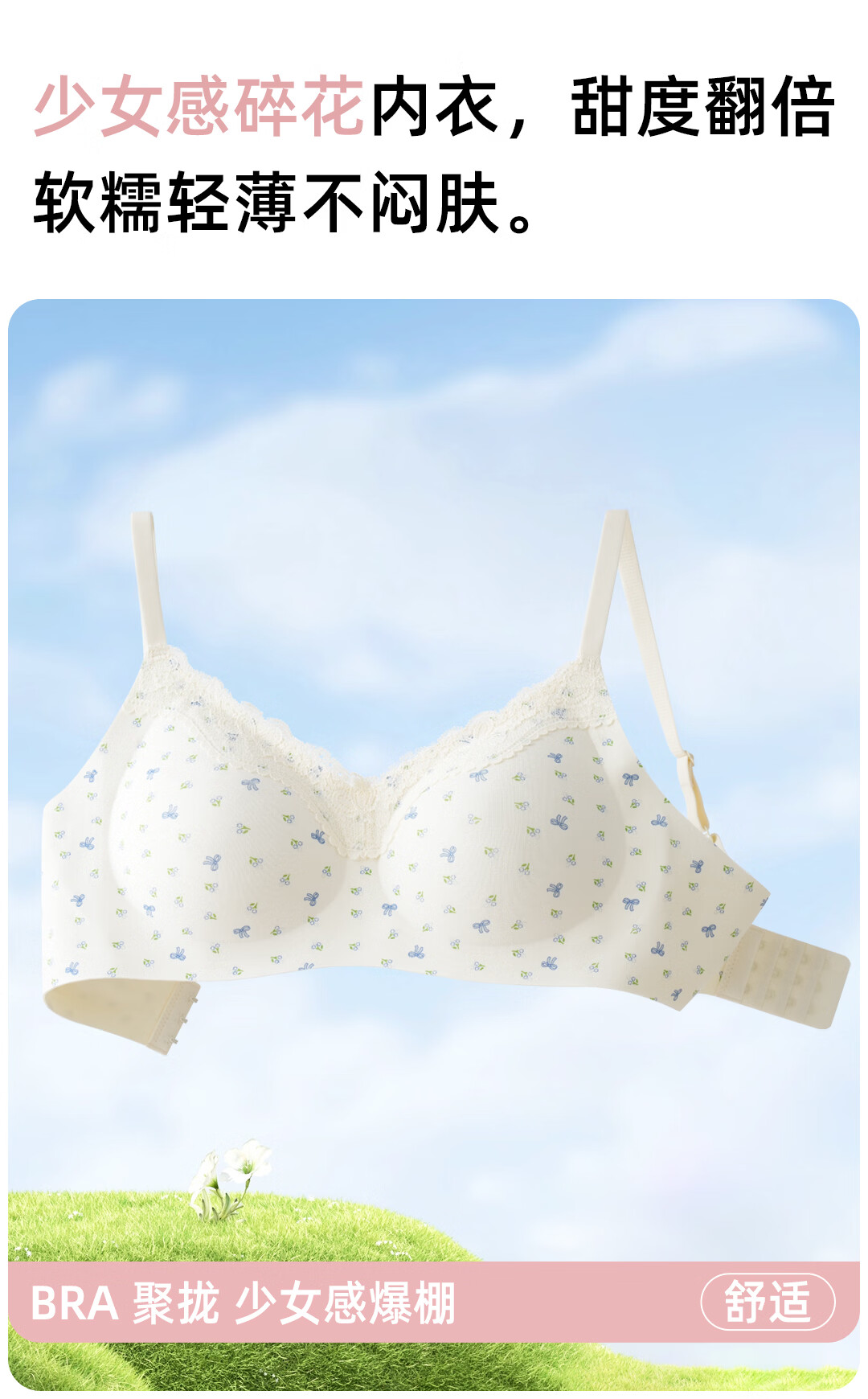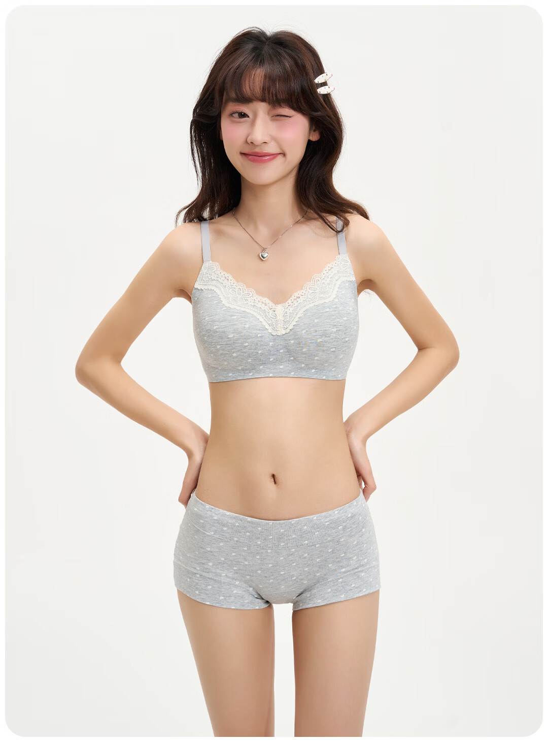 草本初色女士内衣女法式蕾丝性感深V细腻亲肤透气无痕柔软高弹少女文胸 莫灰蓝 2XL 建议【135-150斤】