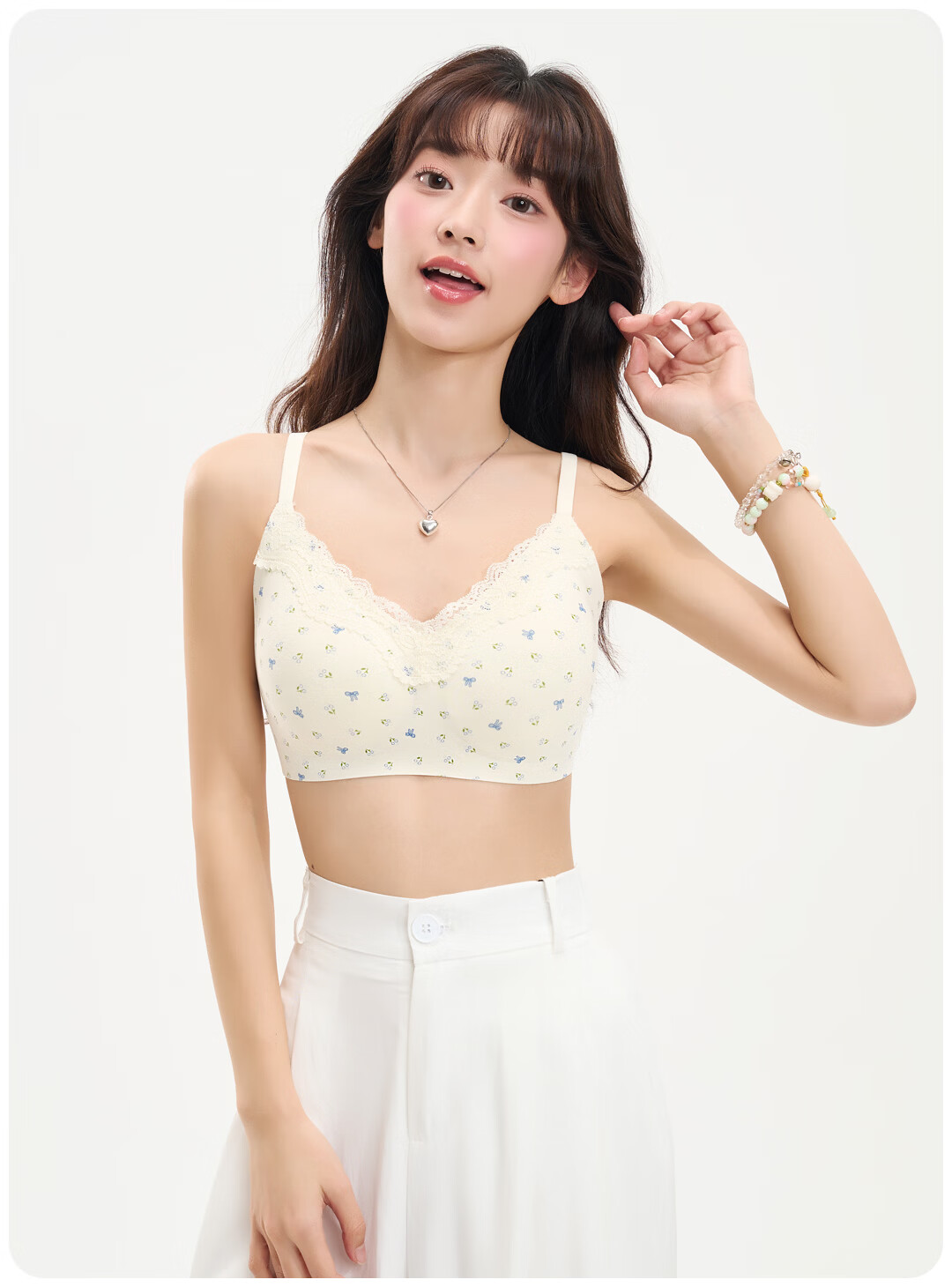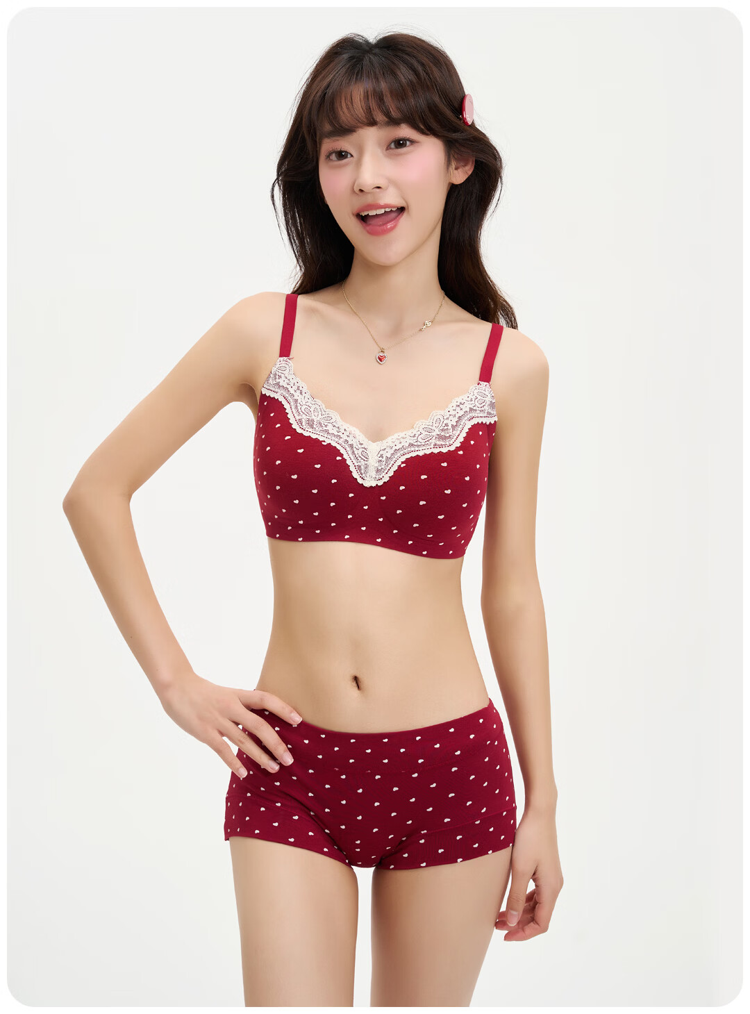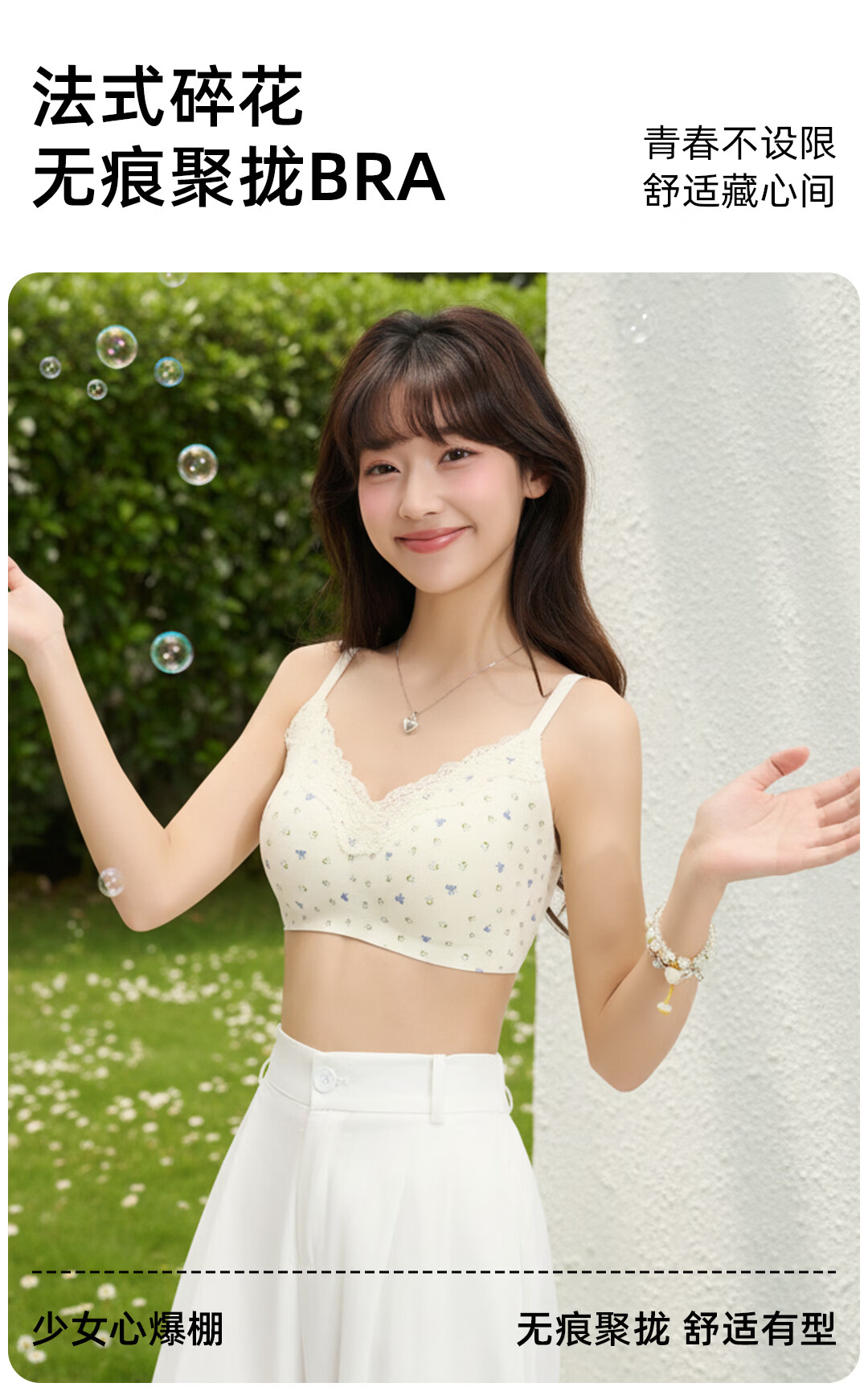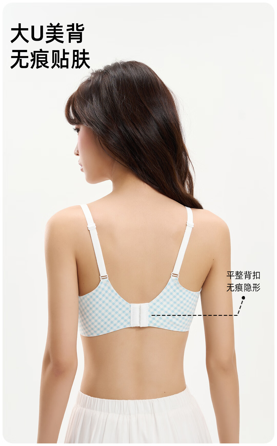 草本初色女士内衣女法式蕾丝性感深V细腻亲肤透气无痕柔软高弹少女文胸 莫灰蓝 2XL 建议【135-150斤】
