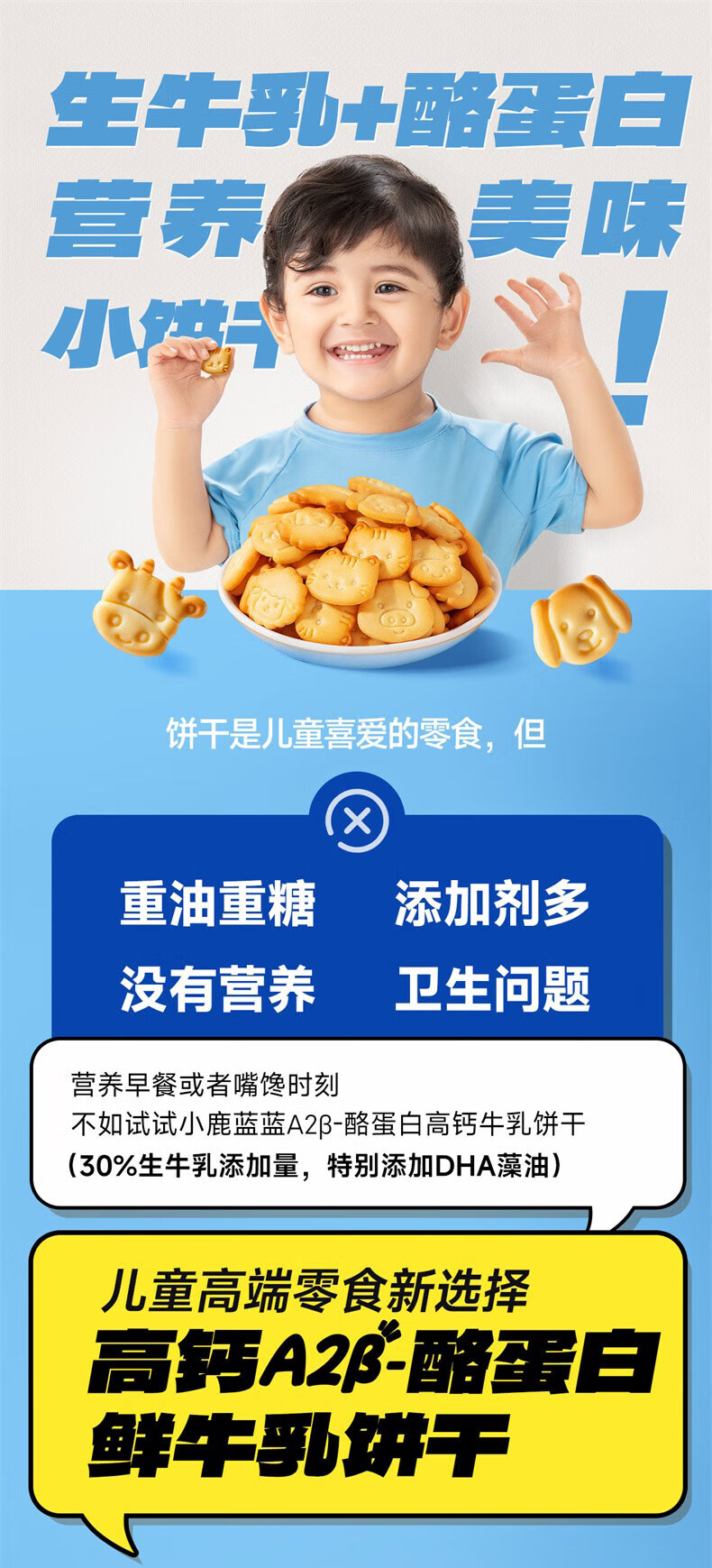 小鹿蓝蓝儿童零食牛奶饼干宝宝小饼干营养早餐休闲食品 鲜牛乳饼干1箱300g