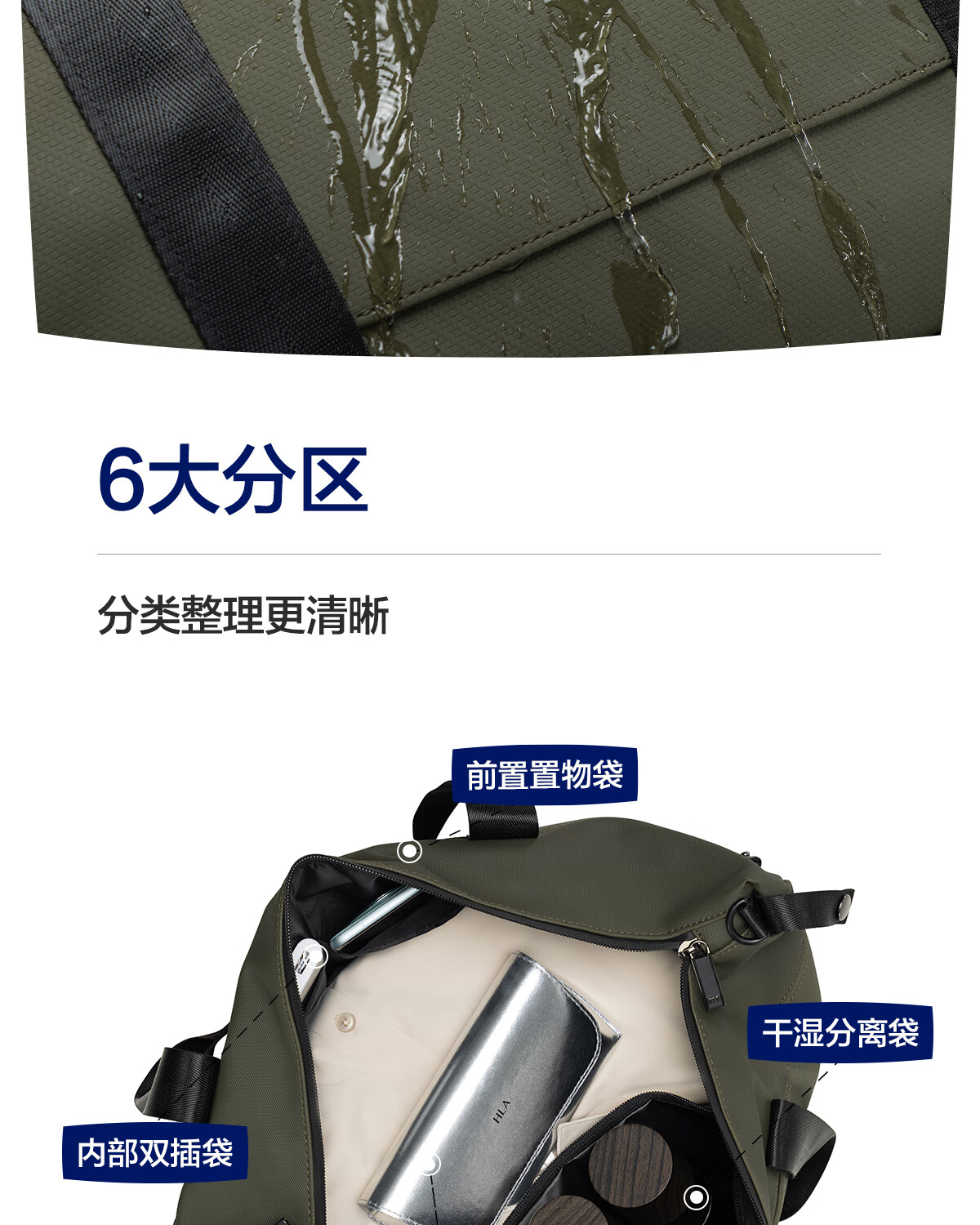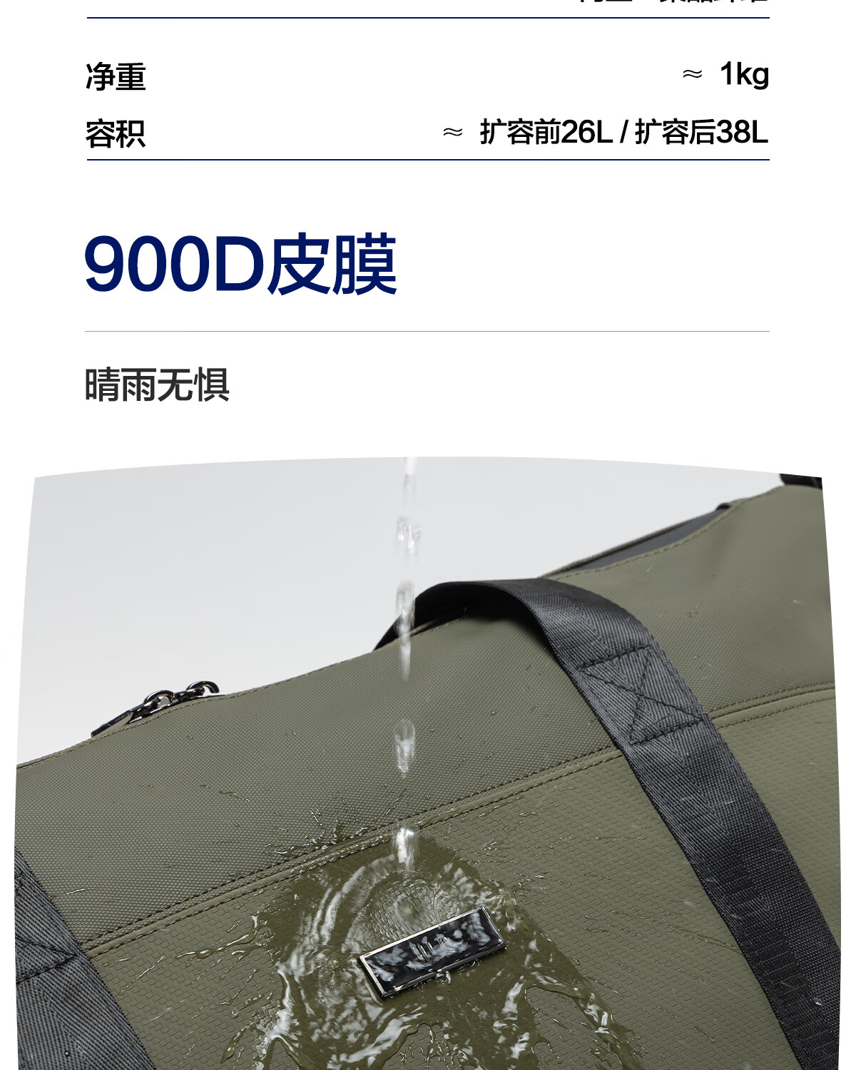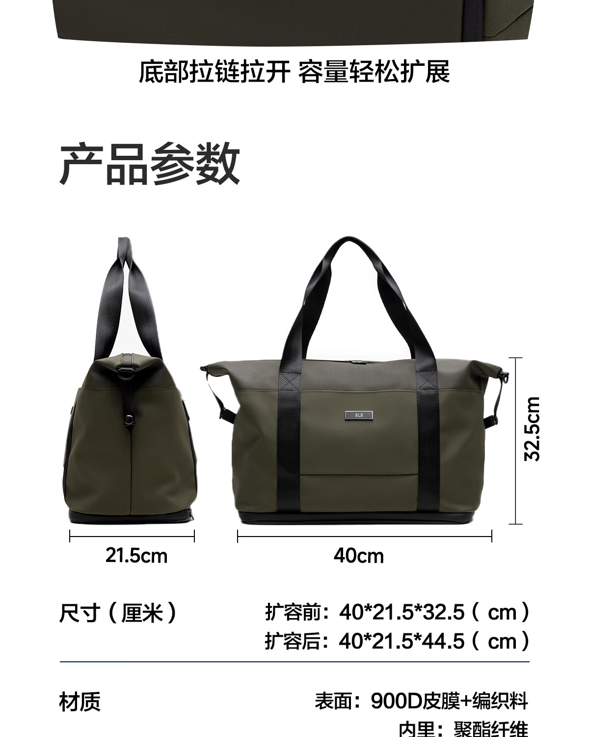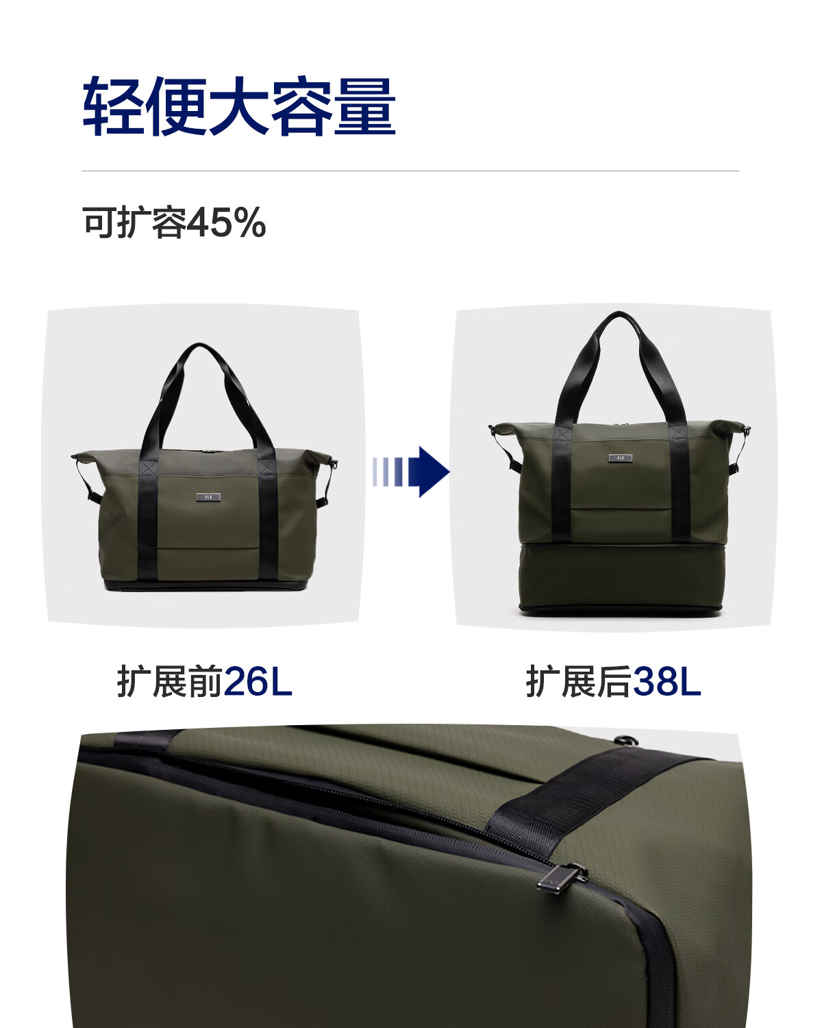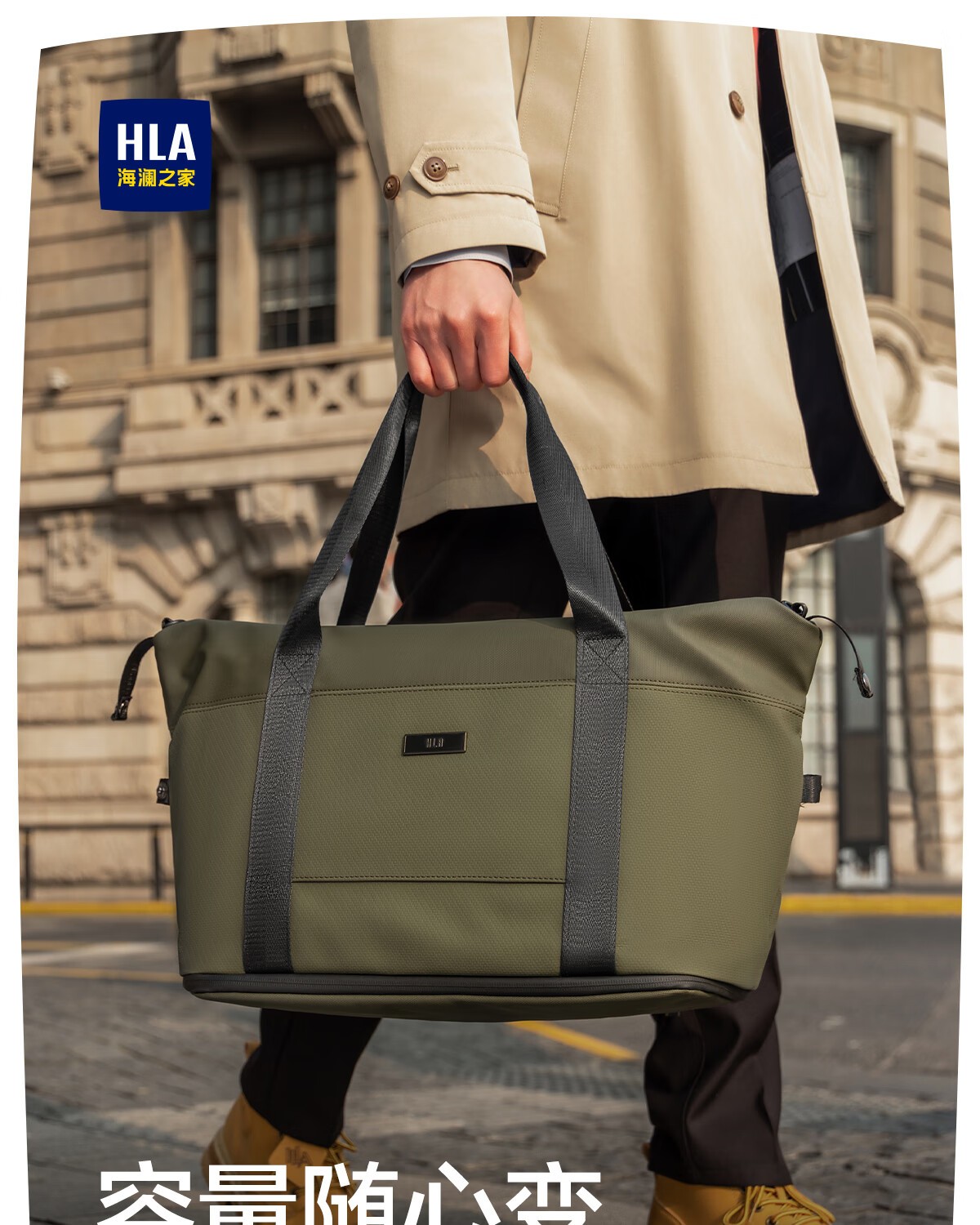 海澜之家大容量旅行包男女短途商务出差手提单肩包行李包运动轻便健身包 绿色【扩容38L大容量】