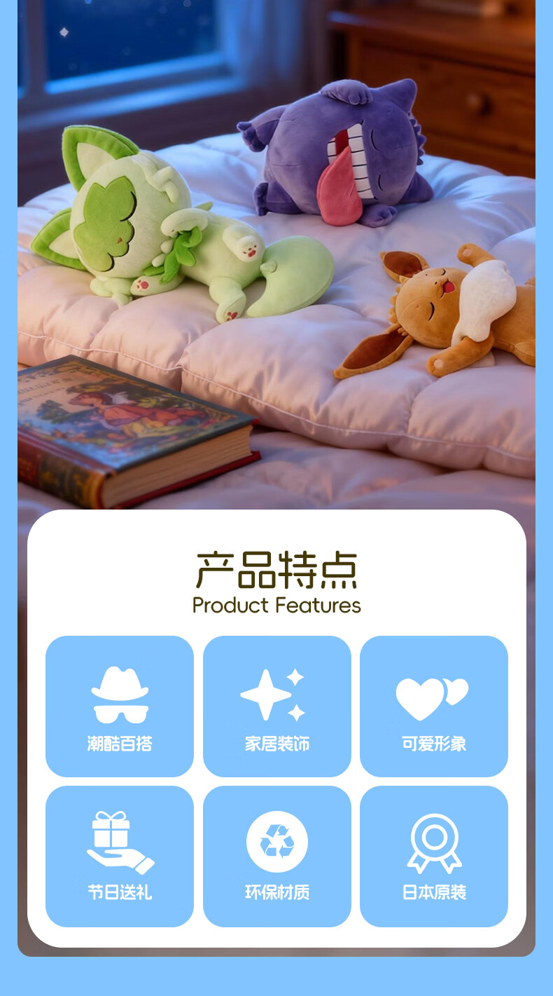 宝可梦【礼物】正版pokemon毛绒玩偶玩具公仔皮卡丘新叶喵潮玩周边娃娃 新叶喵 22×14×37cm 现货 【拍下48小时内发货】(日版彩牌-原装原版)