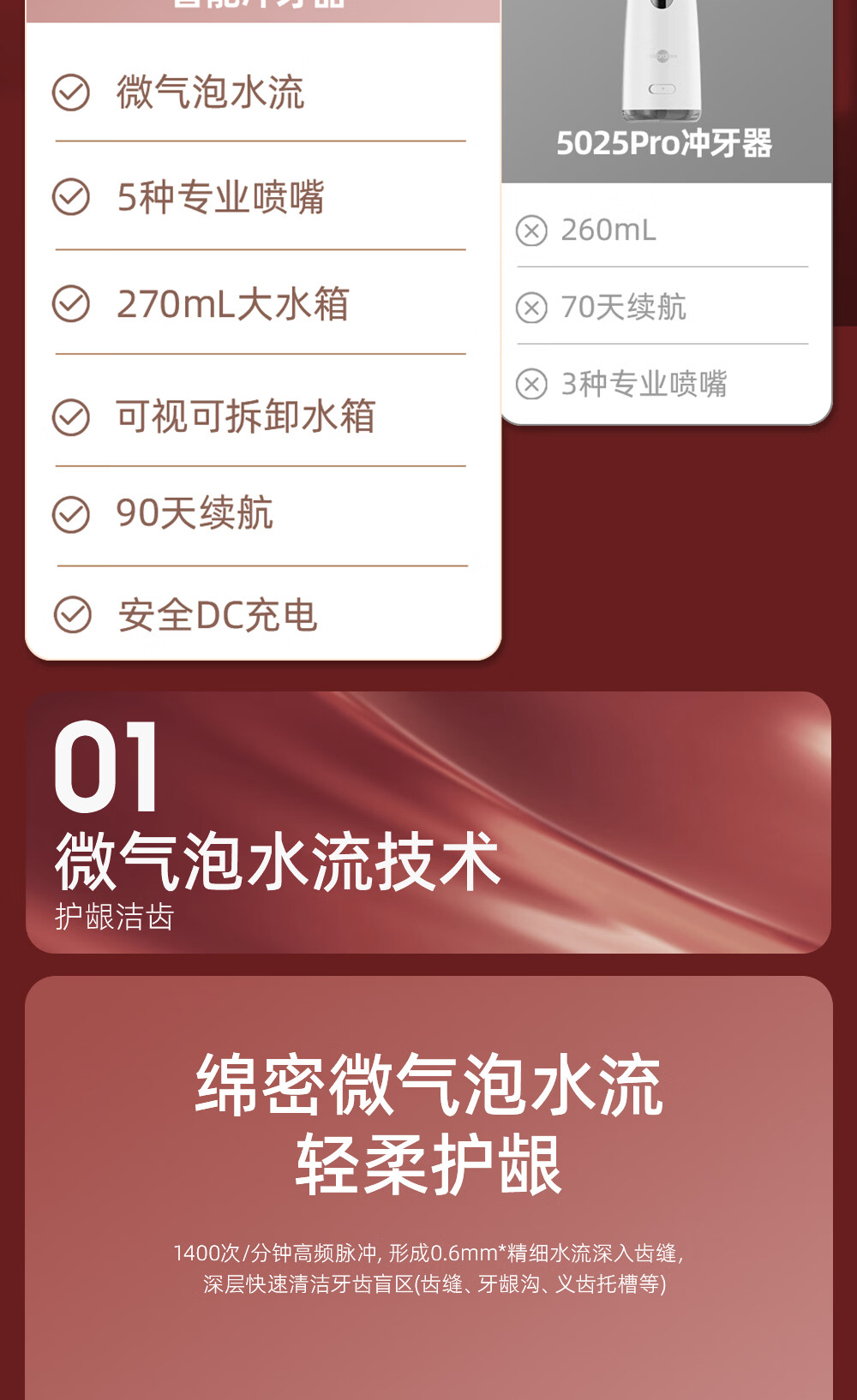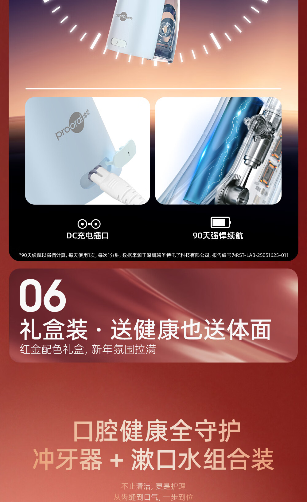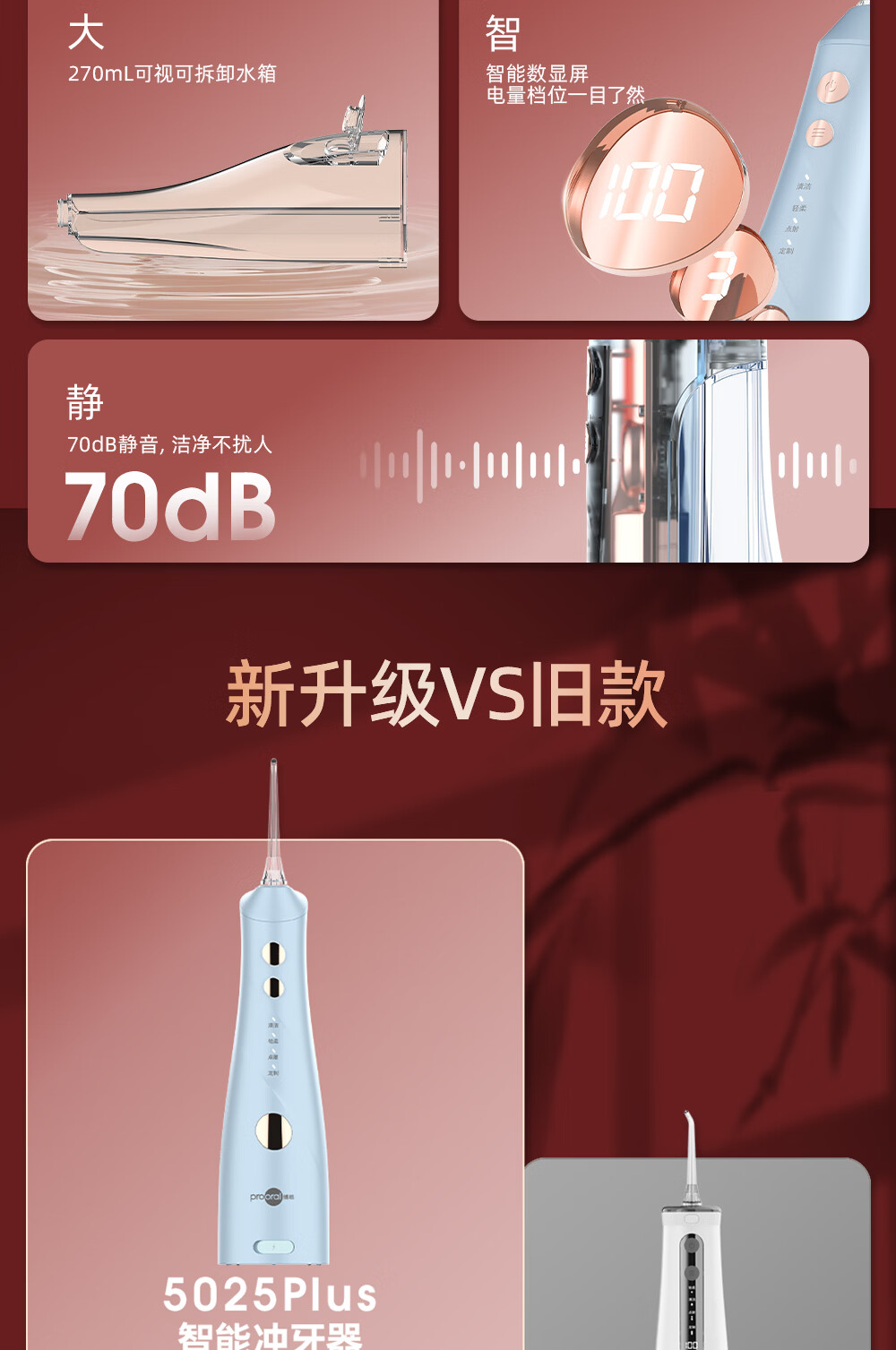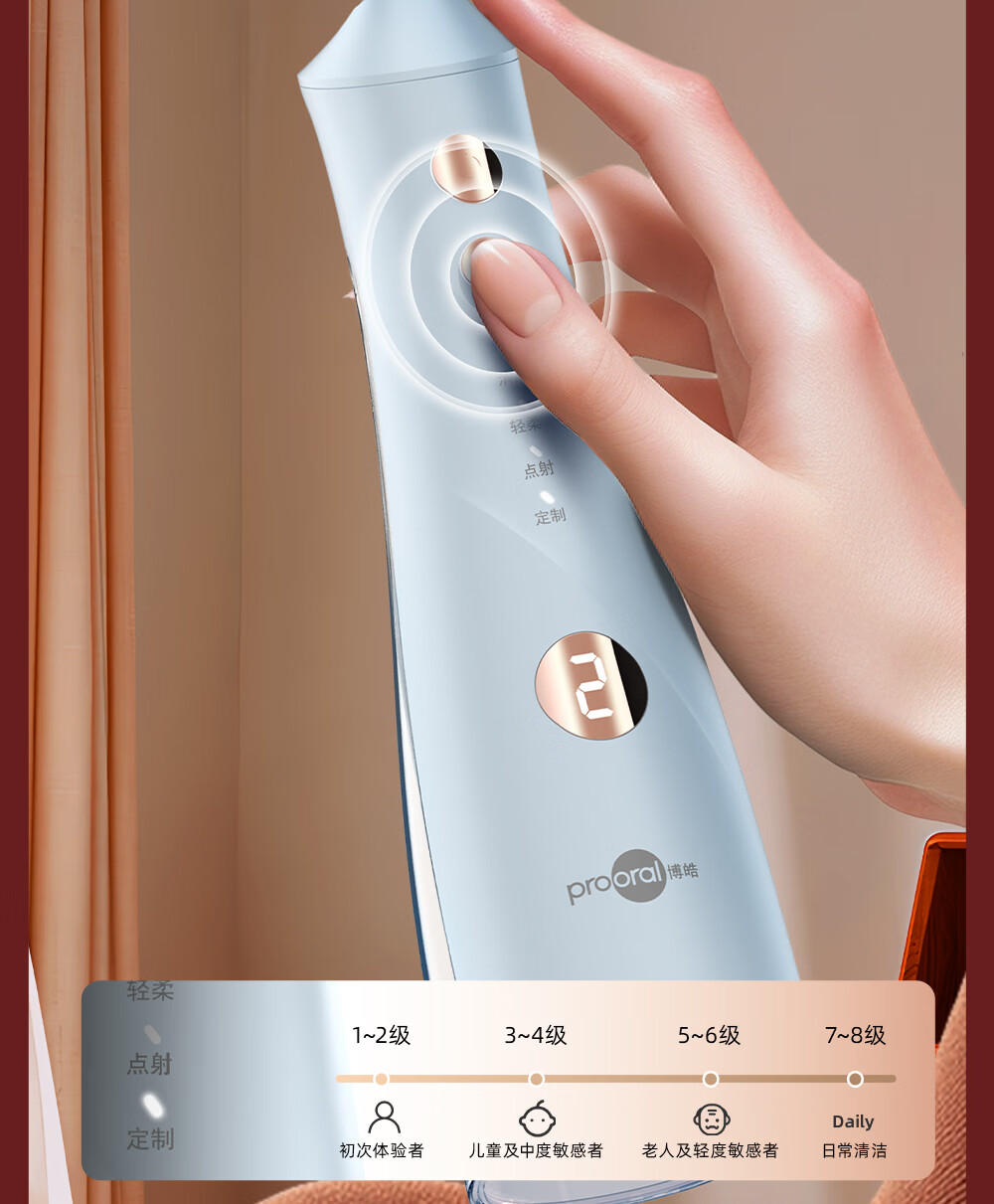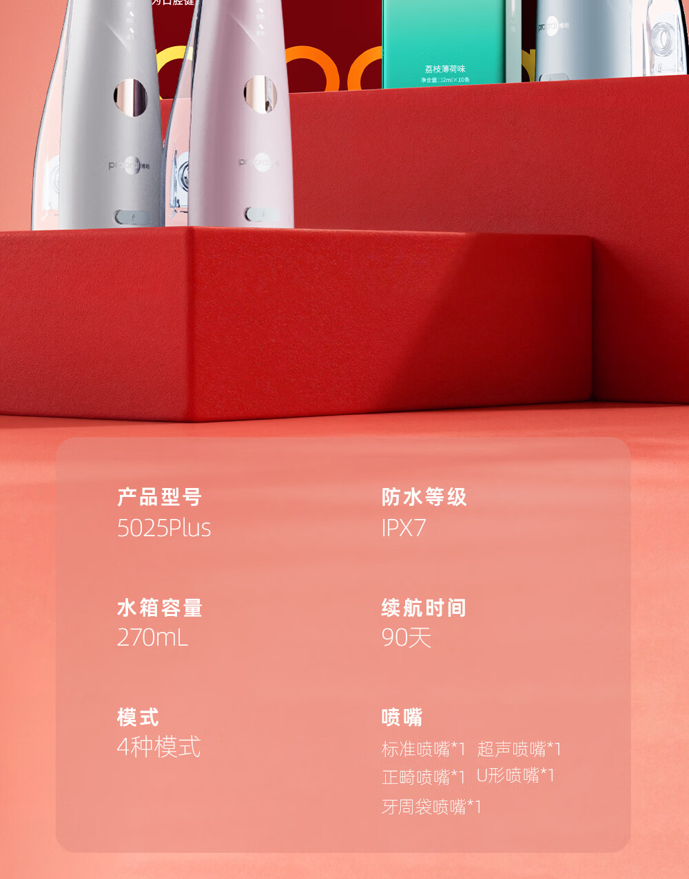 博皓(prooral) 冲牙器便携家用洗牙器冲洗器正畸洁牙器水牙线牙齿清洁器 送父母朋友生日情人节礼物 5025plus 象牙白