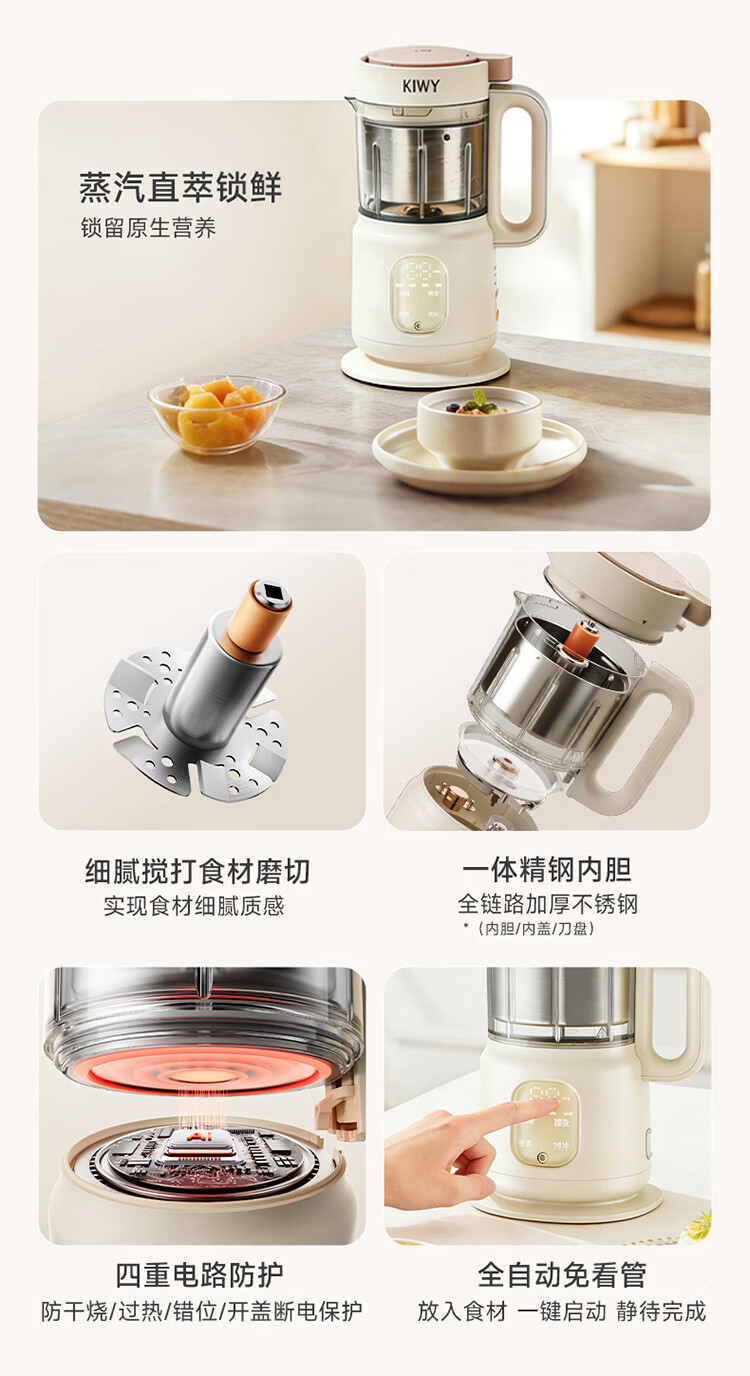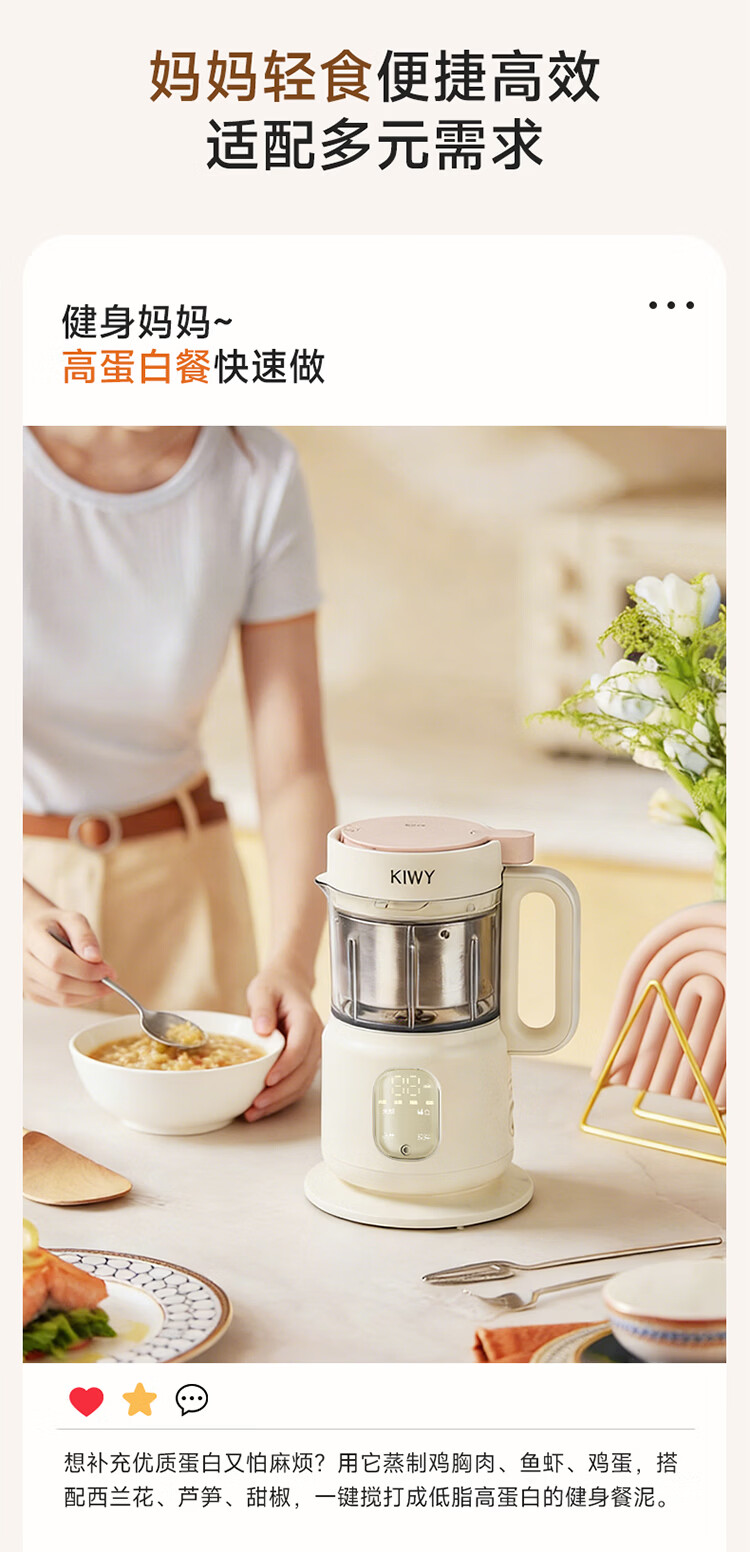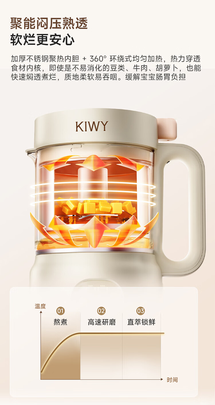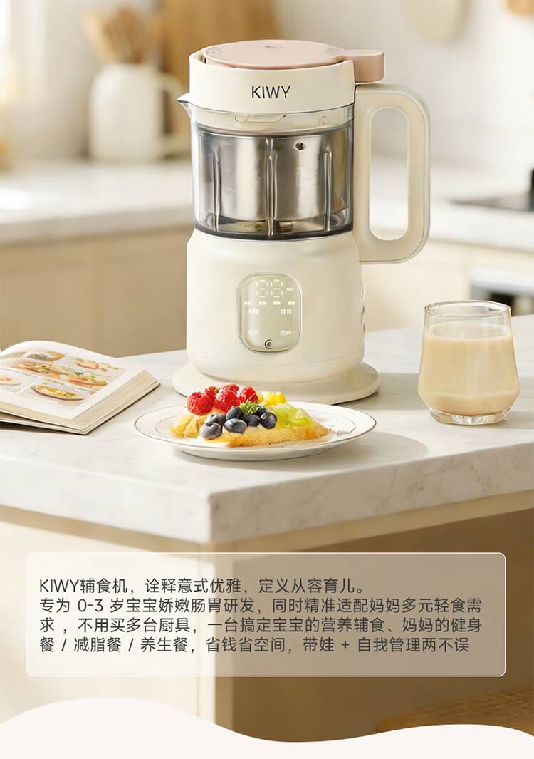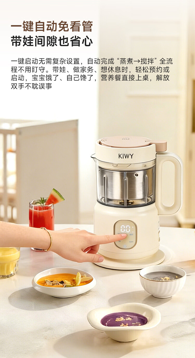 kiwy辅食机婴儿蒸煮搅拌一体机多功能料理机家用全自动打泥宝宝辅食锅 专利6叶刀头 升级高温蒸汽锁鲜 智能蒸/煮/搅
