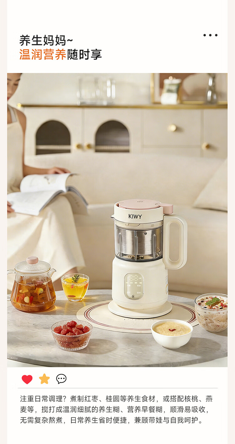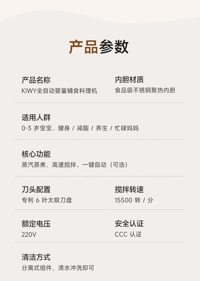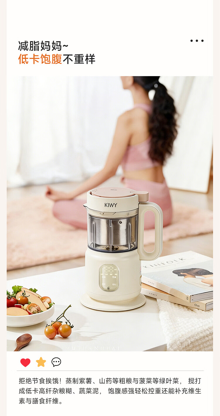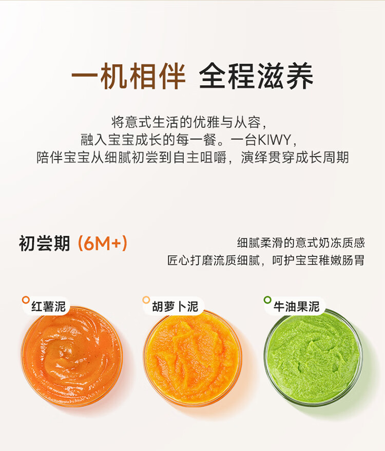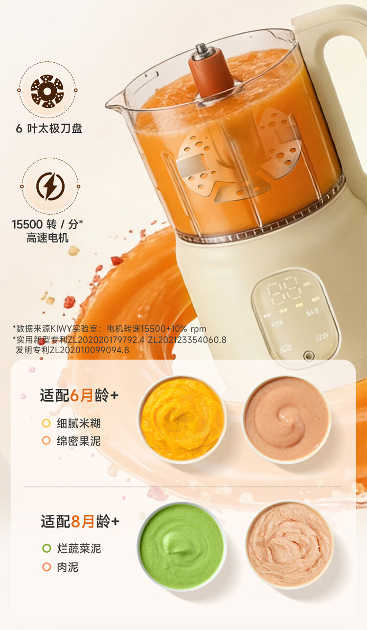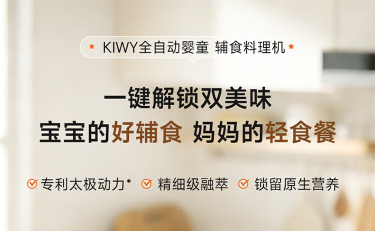 kiwy辅食机婴儿蒸煮搅拌一体机多功能料理机家用全自动打泥宝宝辅食锅 专利6叶刀头 升级高温蒸汽锁鲜 智能蒸/煮/搅