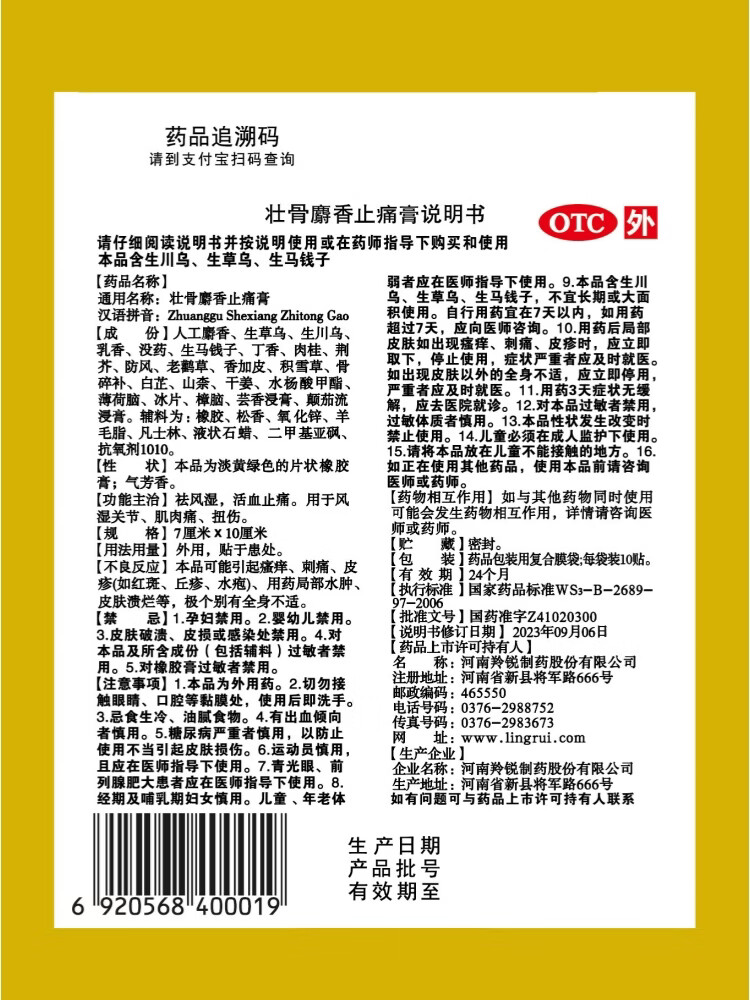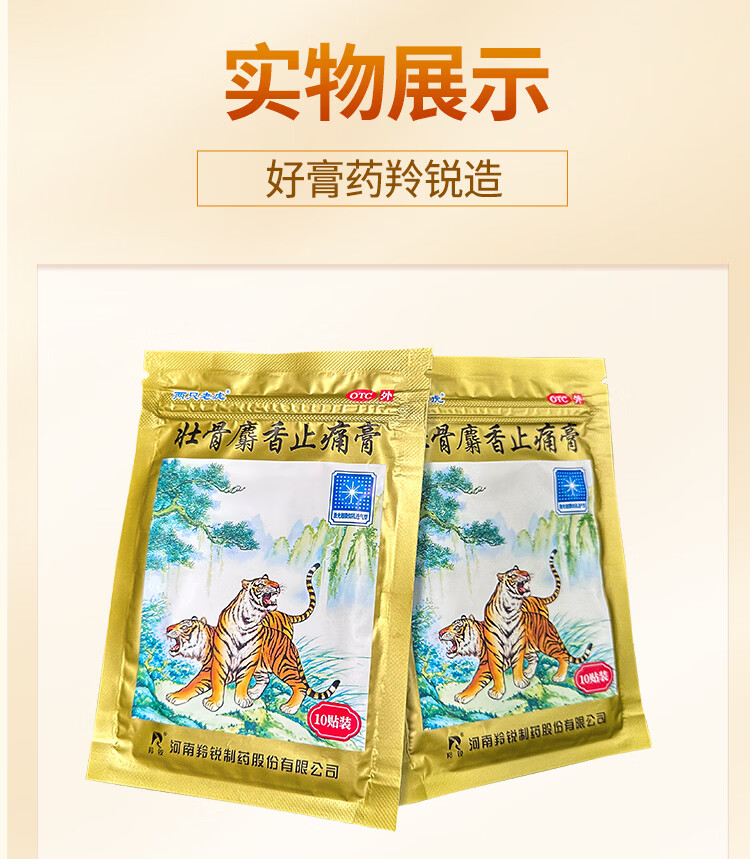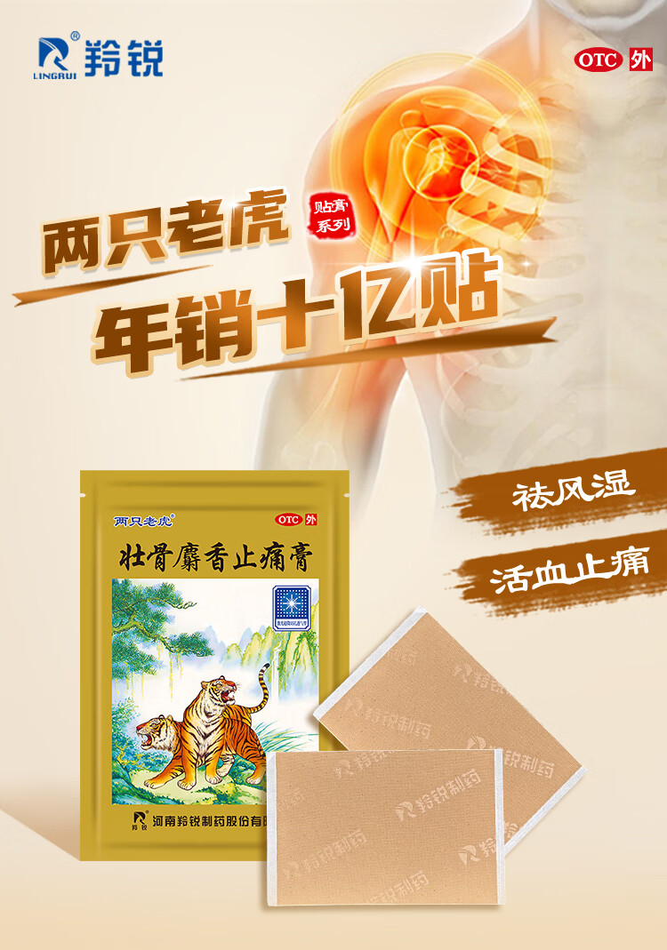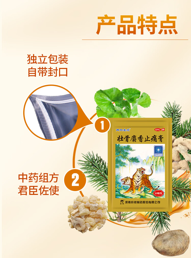 [两只老虎]壮骨麝香止痛膏 7cm*10cm*10贴 10袋装 祛风湿 活血止痛 用于风湿关节痛 肌肉痛 扭伤