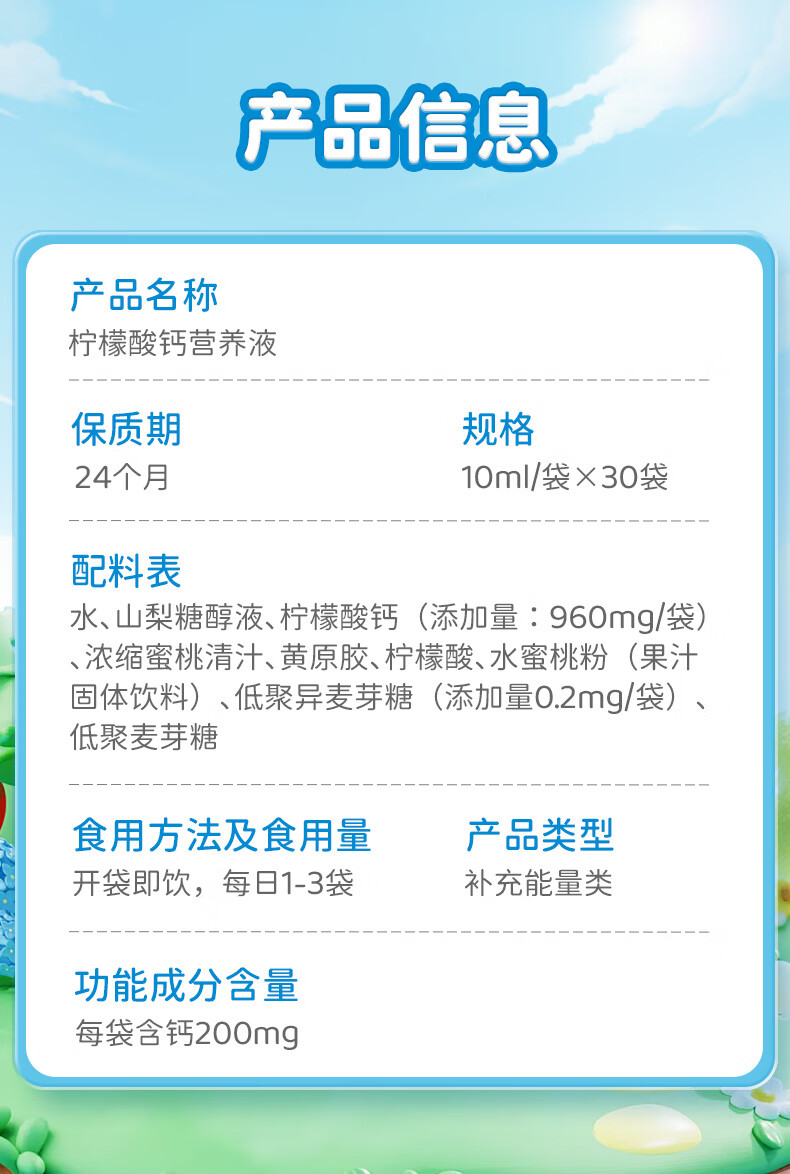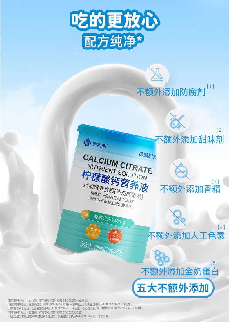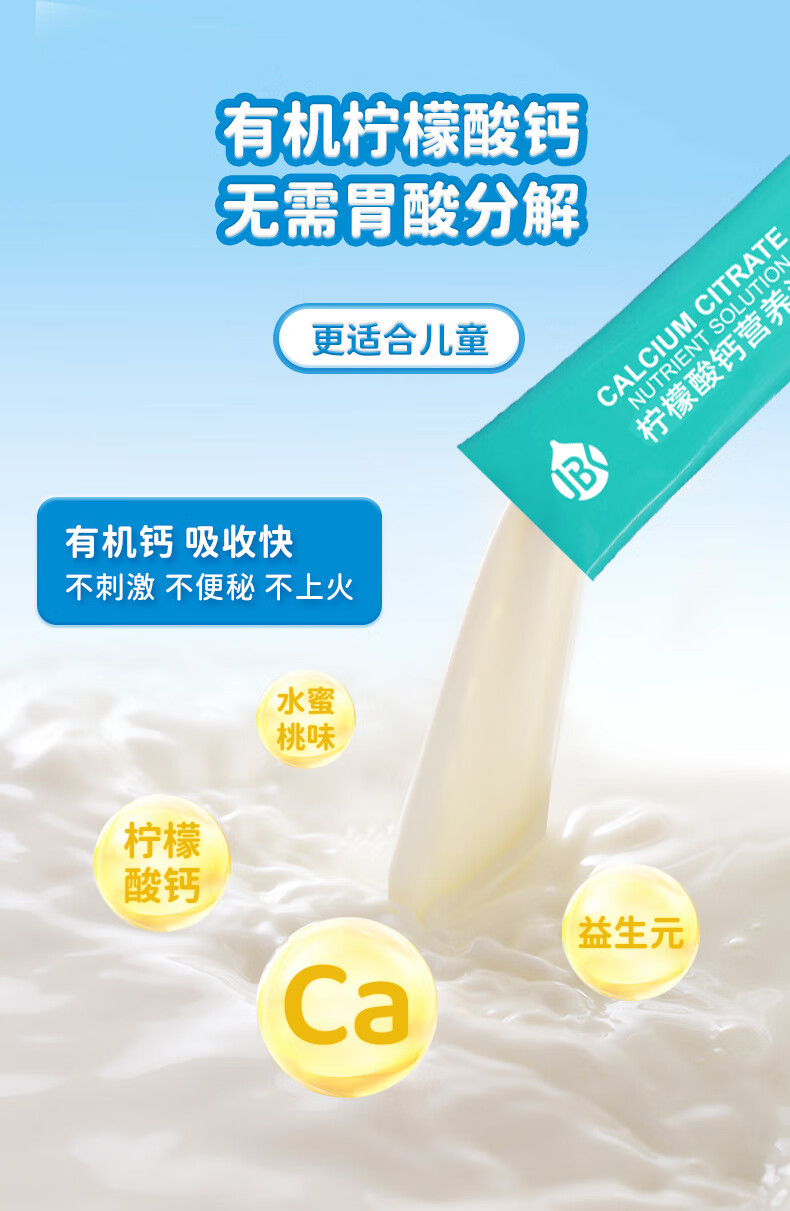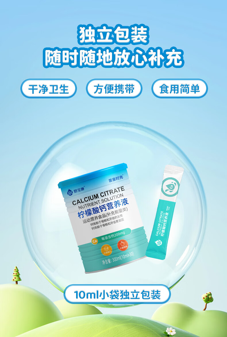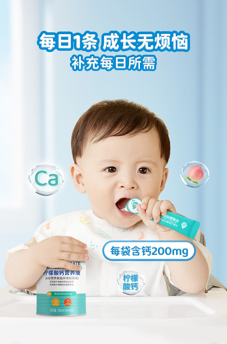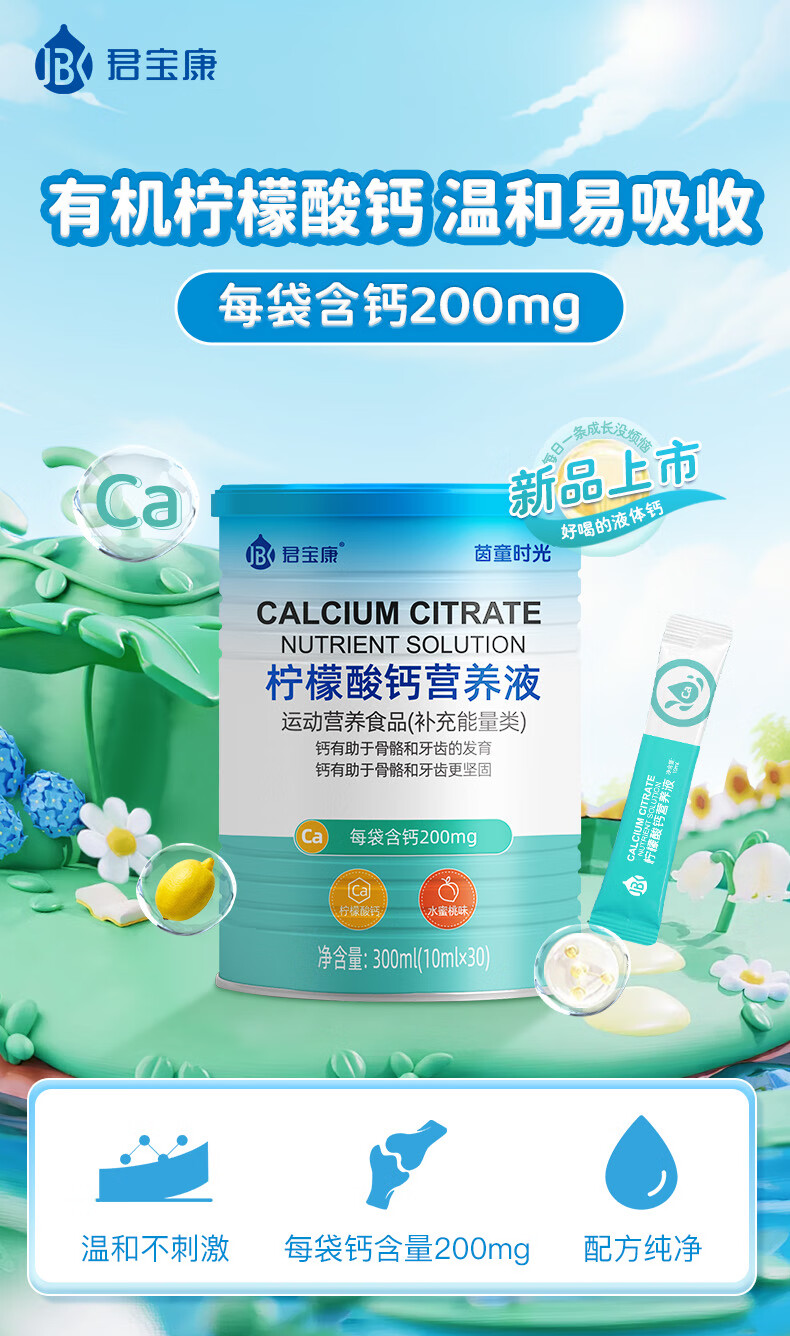 君宝康宝宝液体钙儿童钙柠檬酸钙营养液青少年成人钙宝宝钙30袋装 【买3更划算】 30条*1罐