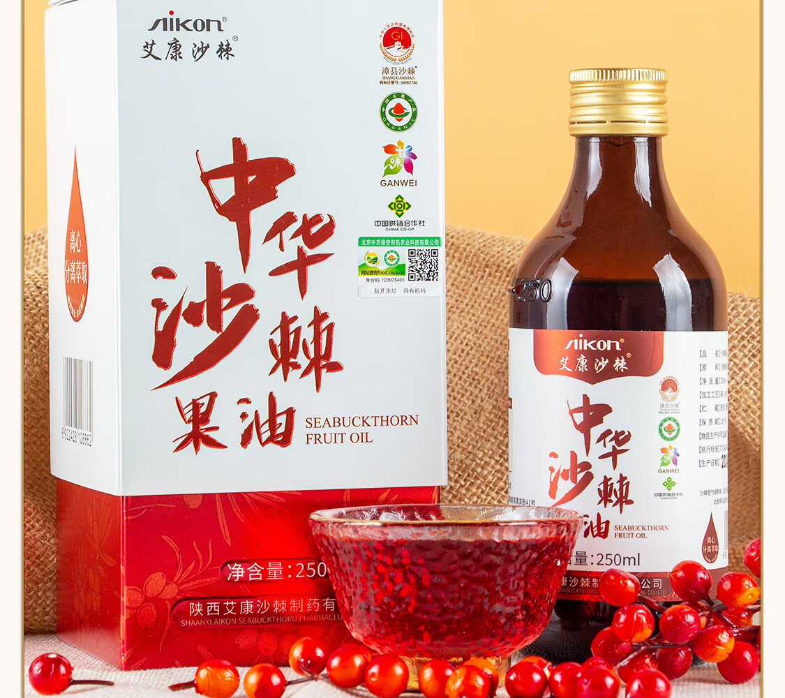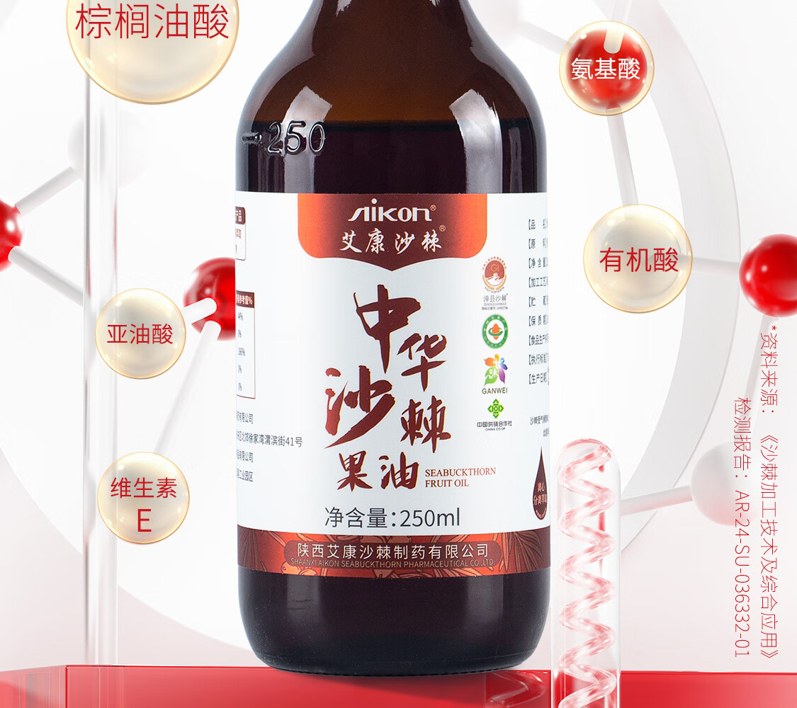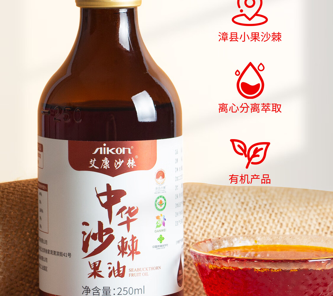 艾康沙棘养生沙棘果油沙棘油甘肃小果沙棘萃取大瓶装250ml