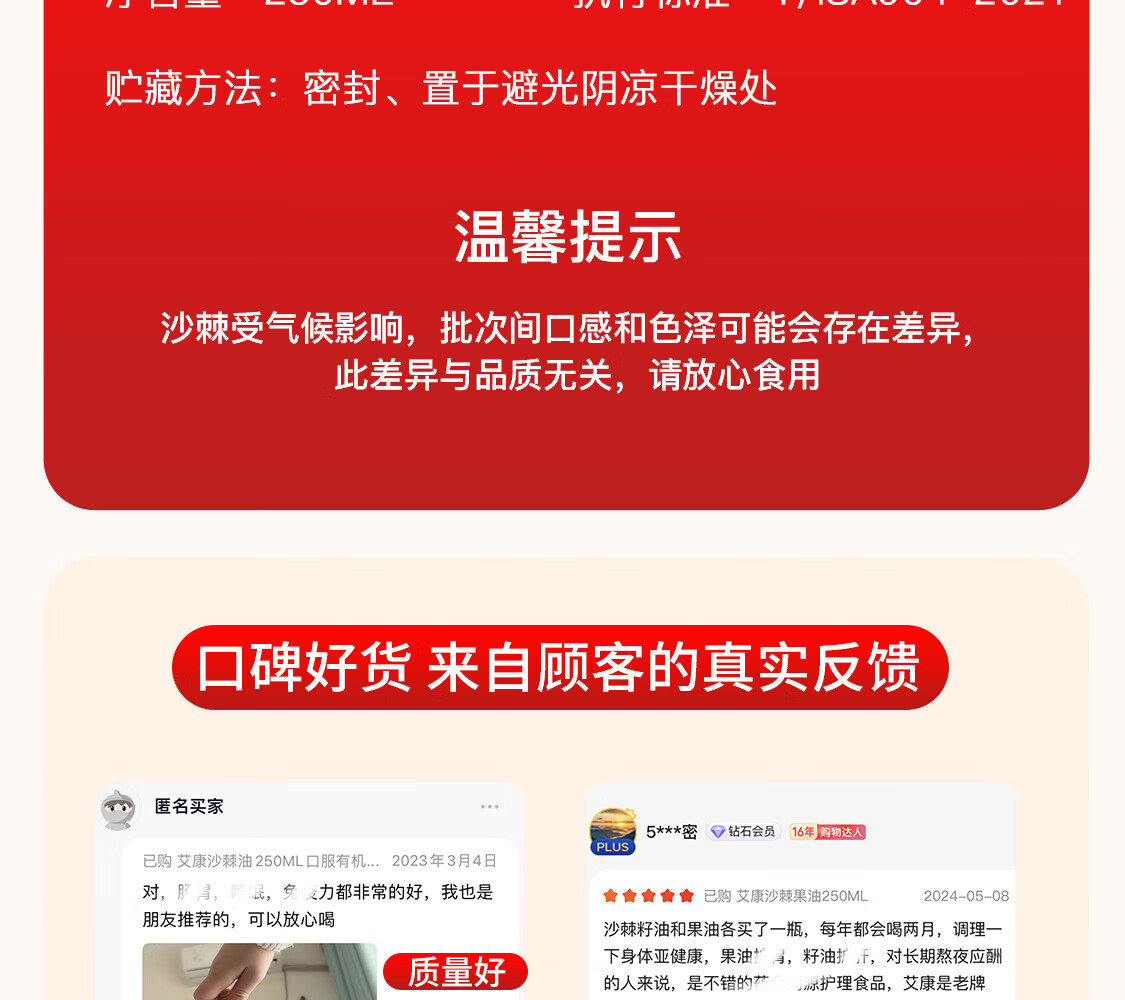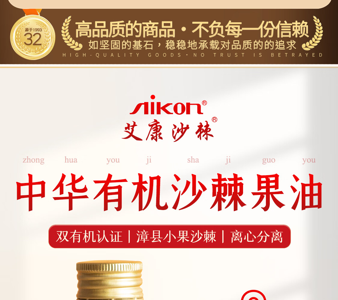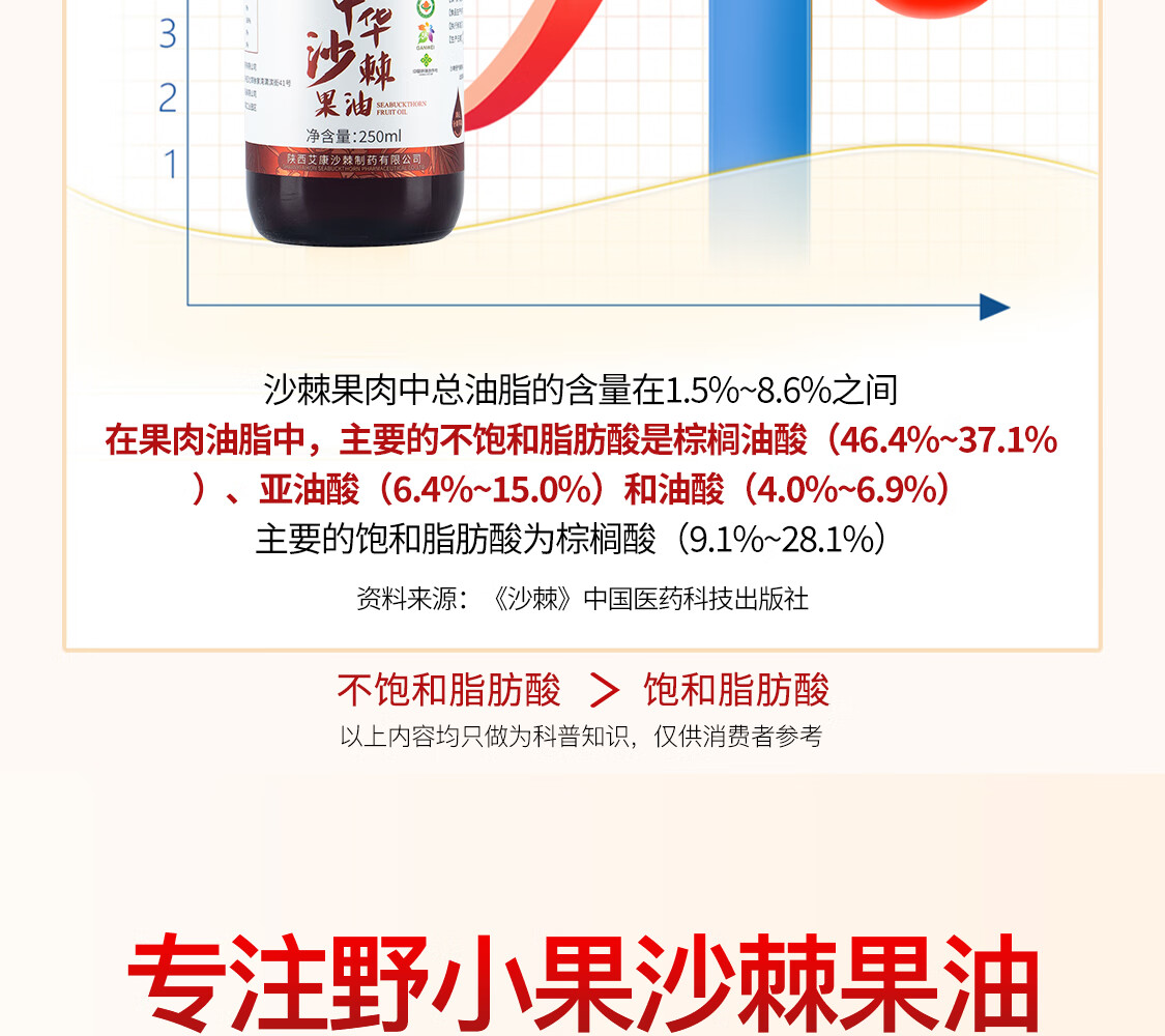 艾康沙棘养生沙棘果油沙棘油甘肃小果沙棘萃取大瓶装250ml