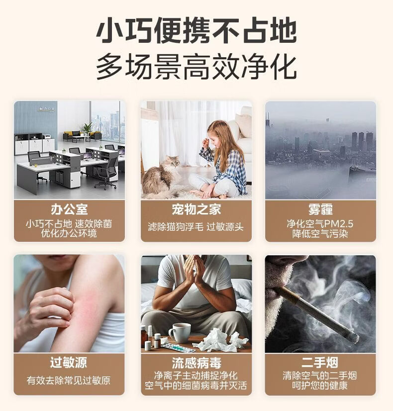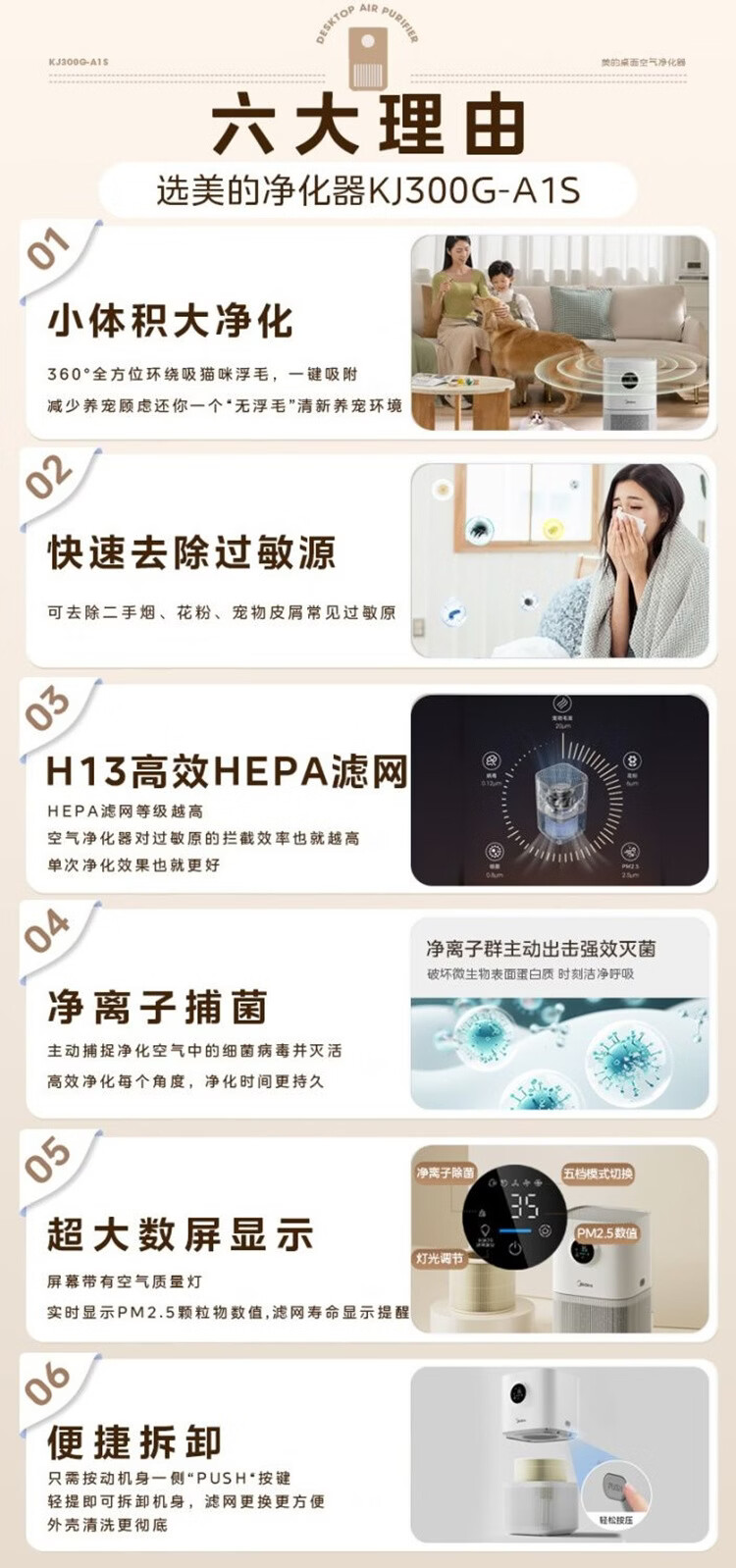 美的(Midea)小尺寸桌面空气净化器 除敏除烟味异味过敏源 除尘除菌 除PM2.5 家用新风换气室内便携KJ300G-A1S