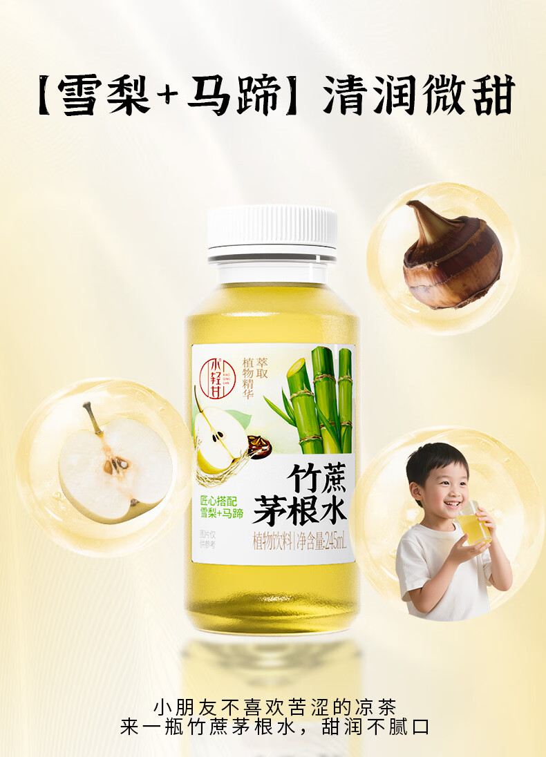 轻上竹蔗茅根水 0脂肪甘蔗汁马蹄水儿童清润解渴植物饮料 竹蔗茅根水245ml*10瓶