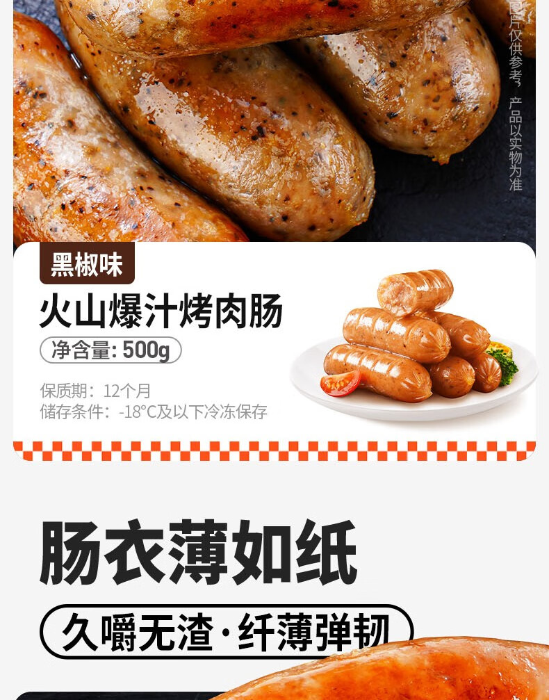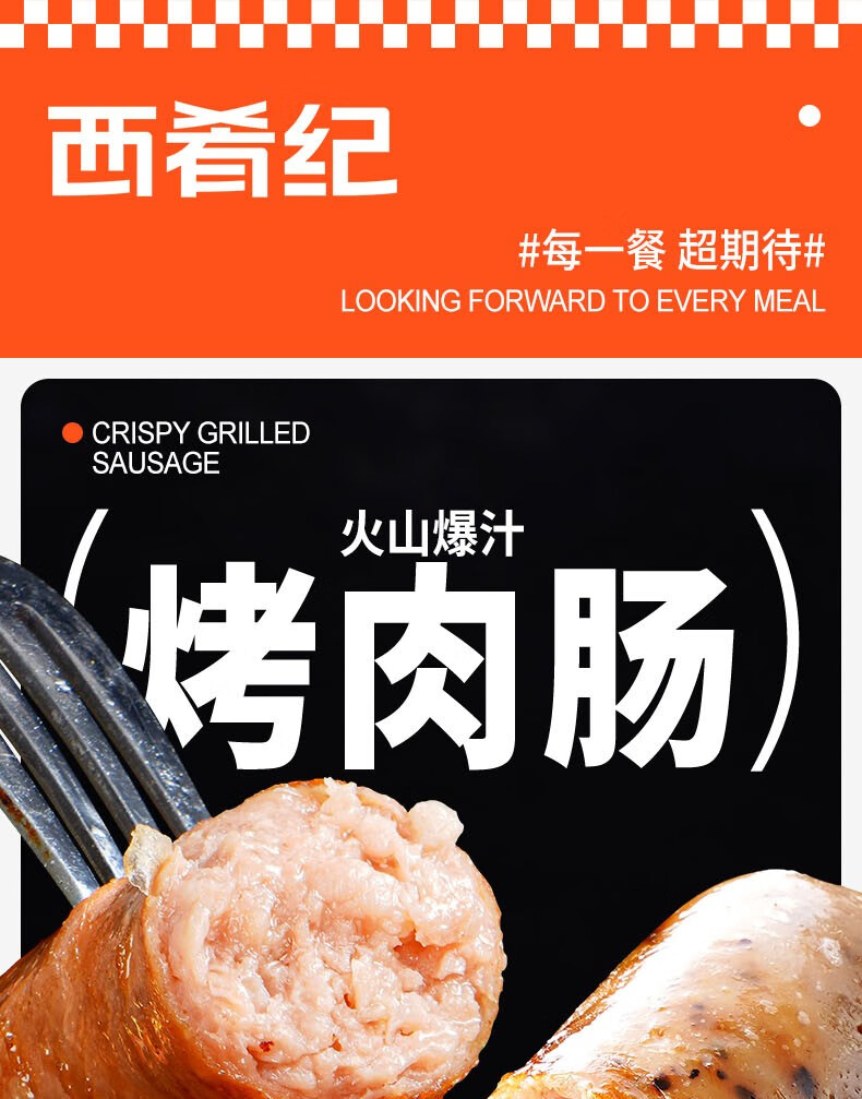 西肴纪火山石烤肠4斤/40根 原味+黑椒各20根 早餐火腿肠脆皮春节也送货