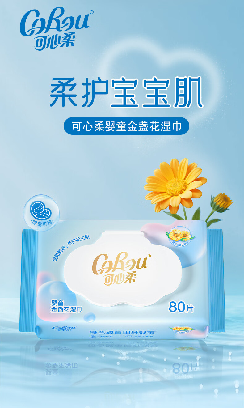 可心柔(COROU) 湿巾婴幼儿手口湿纸巾新生儿专用80抽4大包