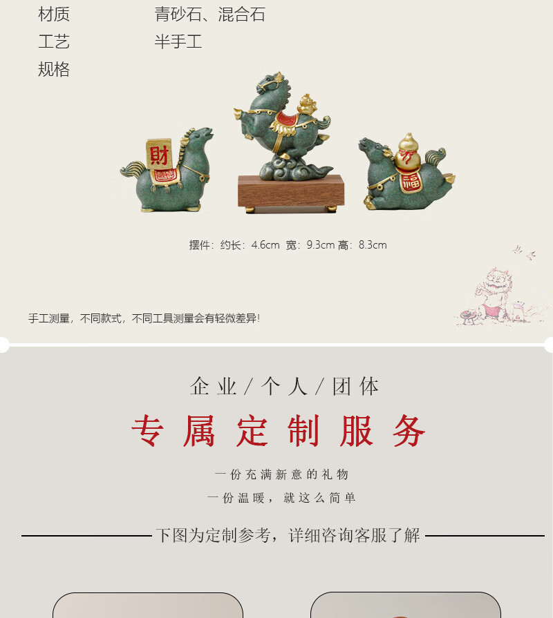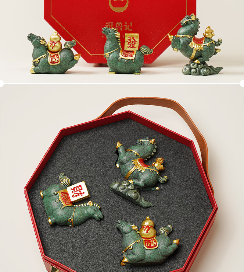 逗兽记2026马年生肖文创桌面茶宠摆件乔迁生日公司年会礼品定制新年礼物 三足鼎立(八方来財礼盒装)