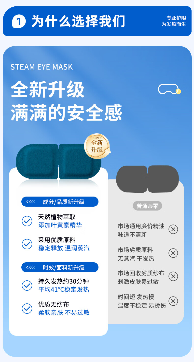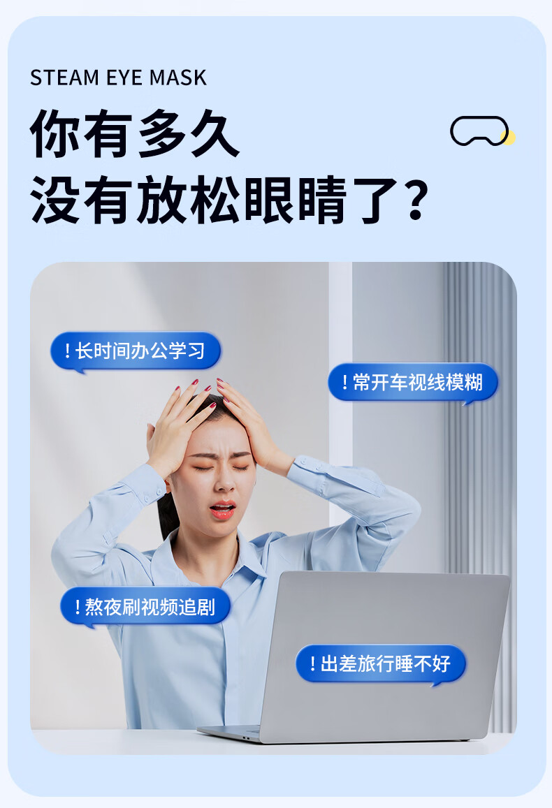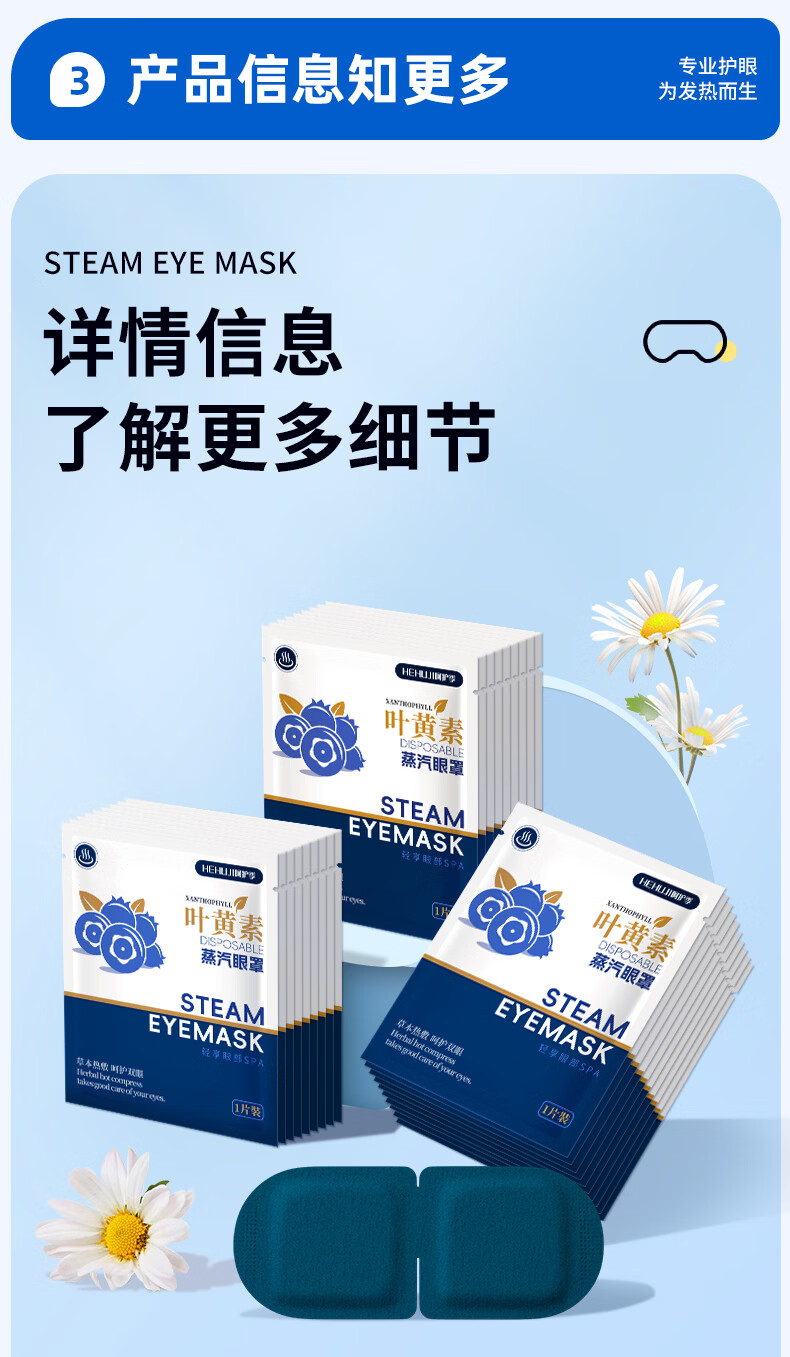 蒸汽眼罩叶黄素热敷加热缓解眼疲劳遮光睡眠眼罩成人学生通用 5片装