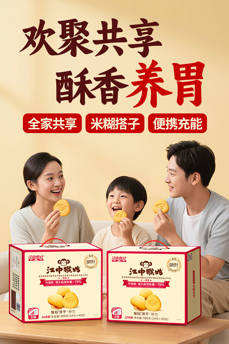 江中猴姑【侯明昊同款】养胃有糖酥性猴头菇饼干送礼礼盒960g营养早餐零食