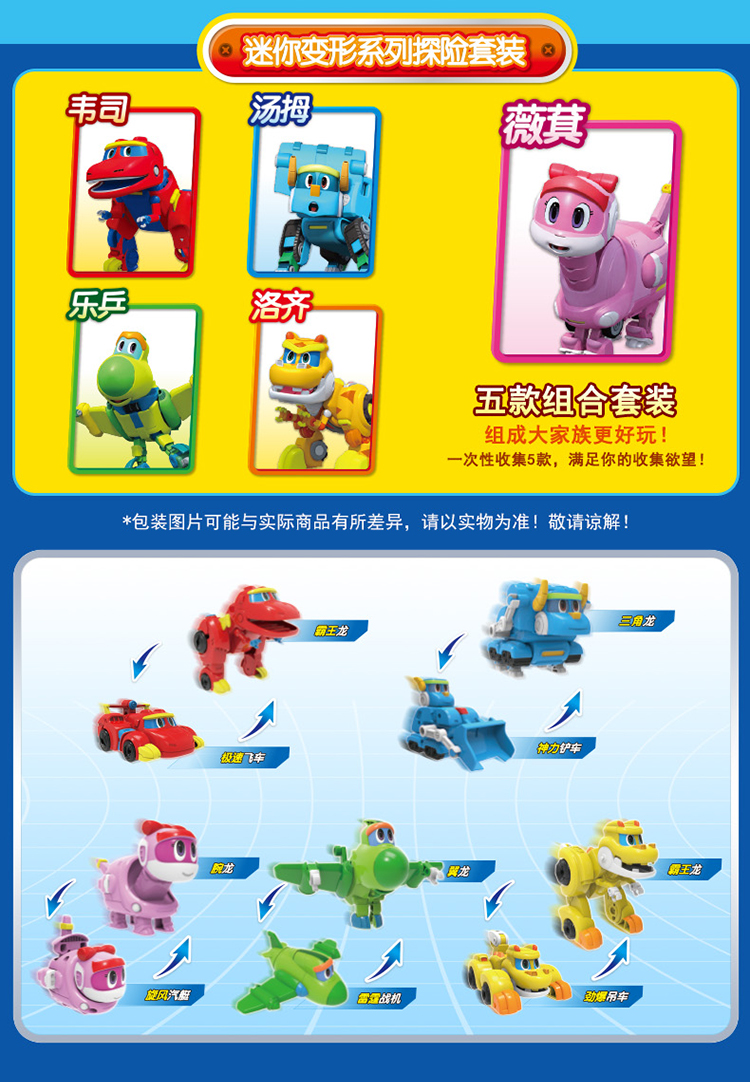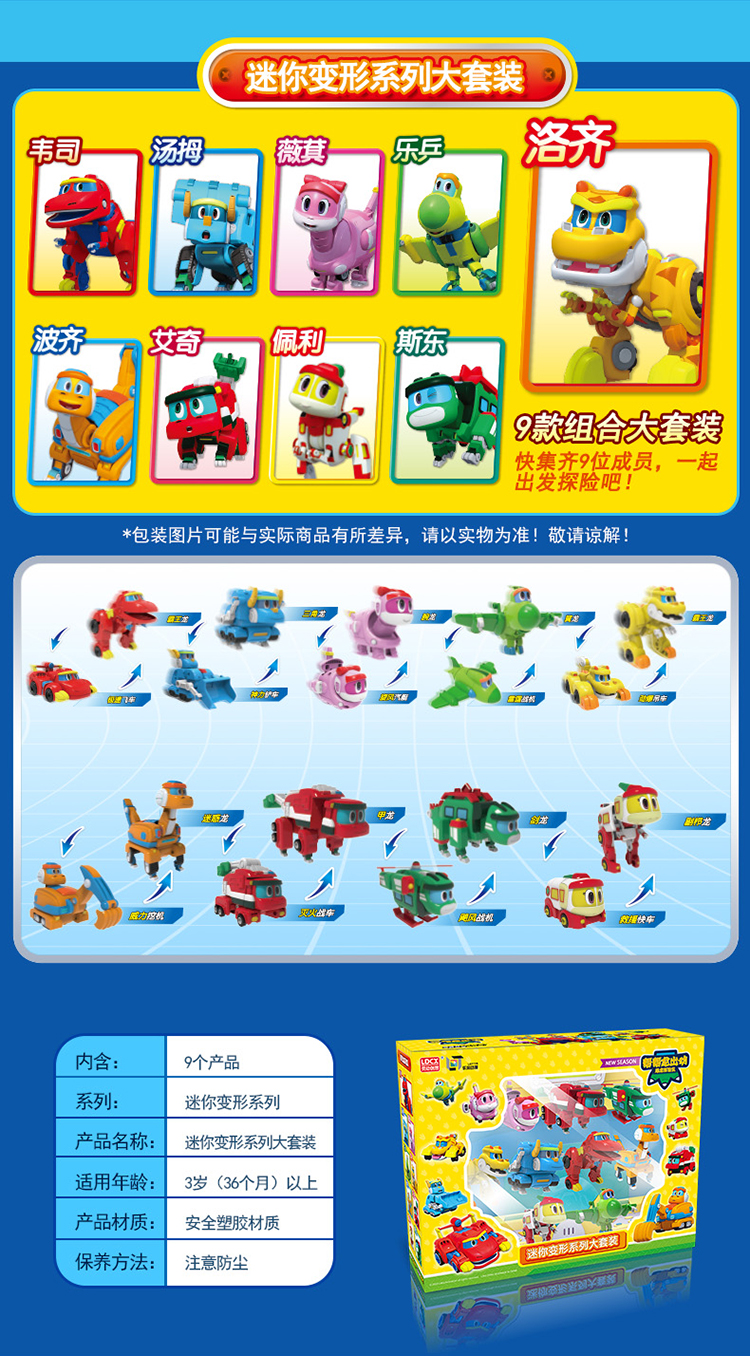 灵动创想帮帮龙迷你变形9只套装礼盒恐龙玩具男孩儿童3-6岁生日新年礼物