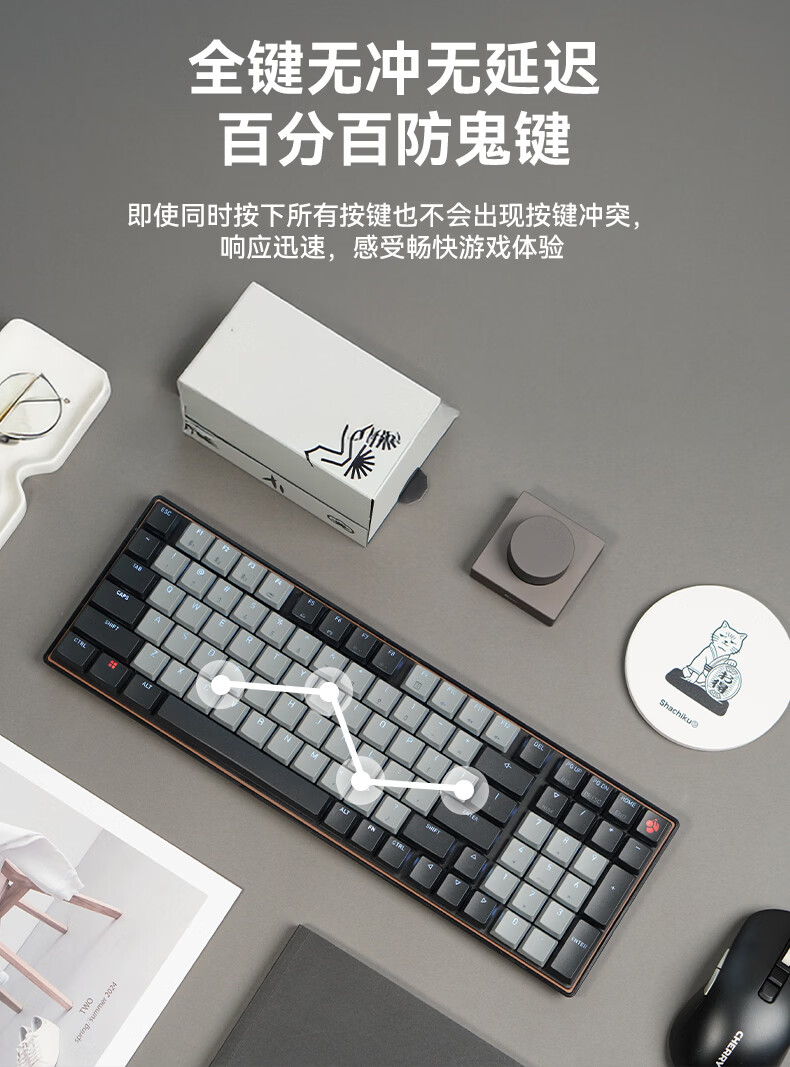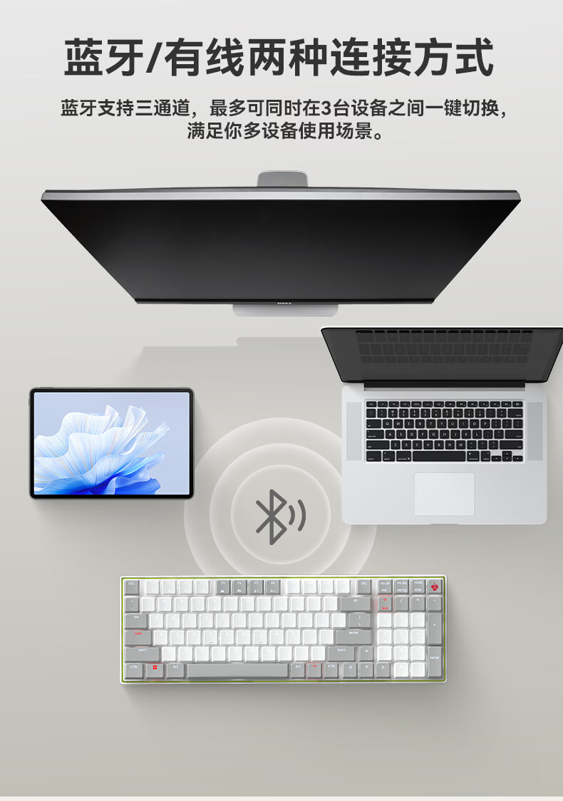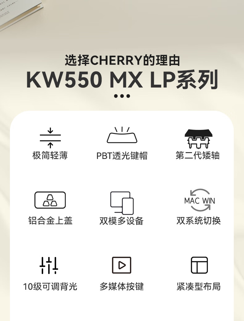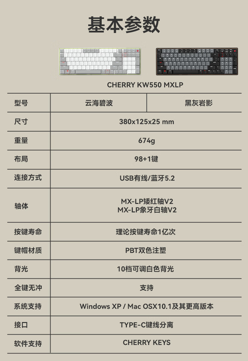 CHERRY樱桃kw550MX LP矮轴机械键盘无线蓝牙键盘双模充电款办公98键mac键盘苹果专用WF13B KW550白色白光矮红轴