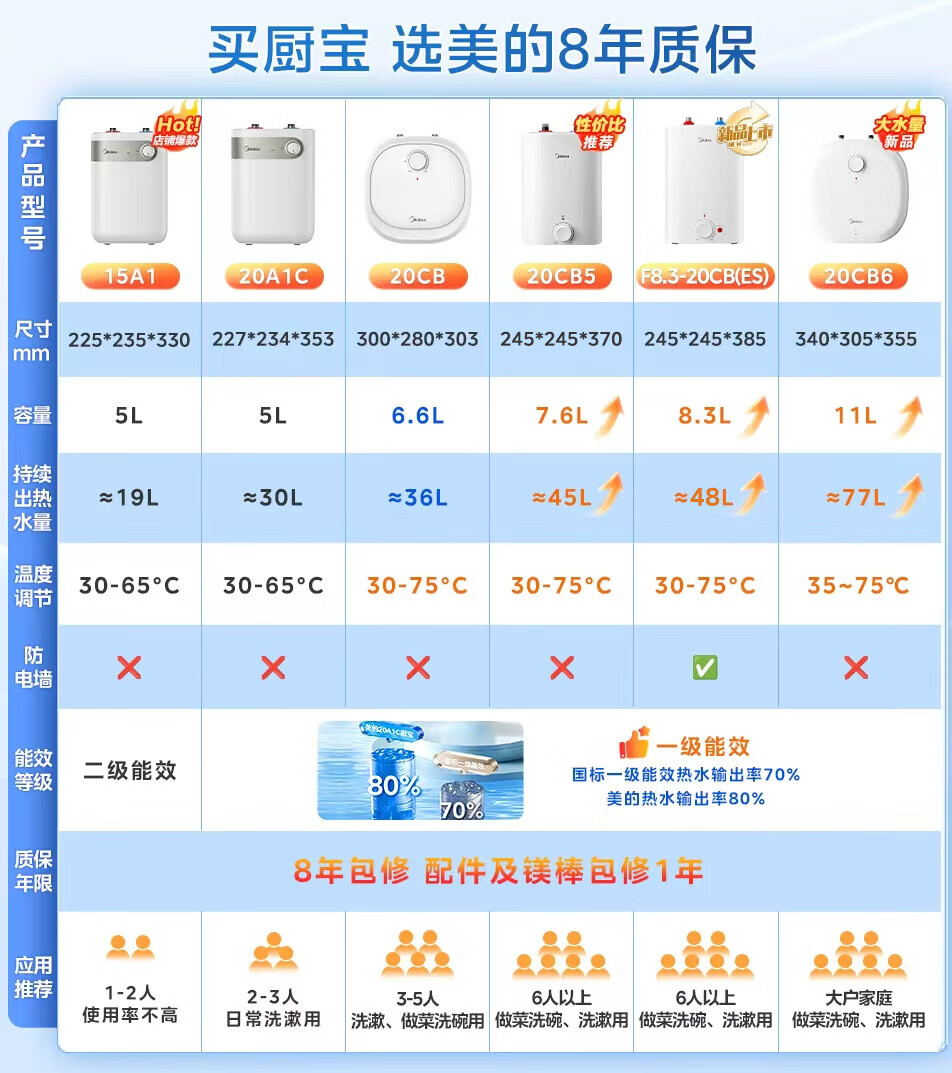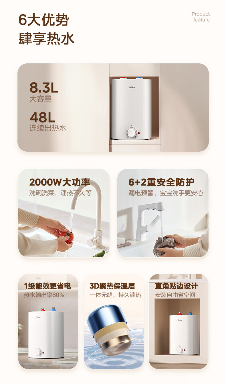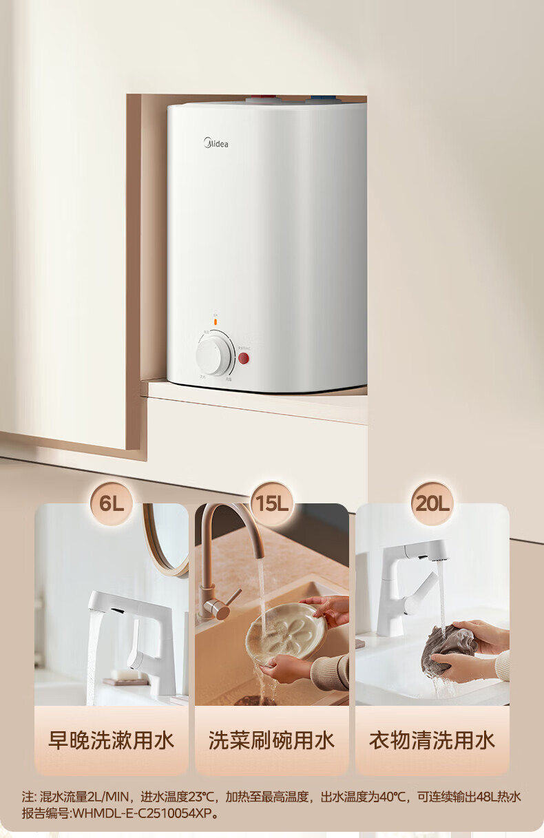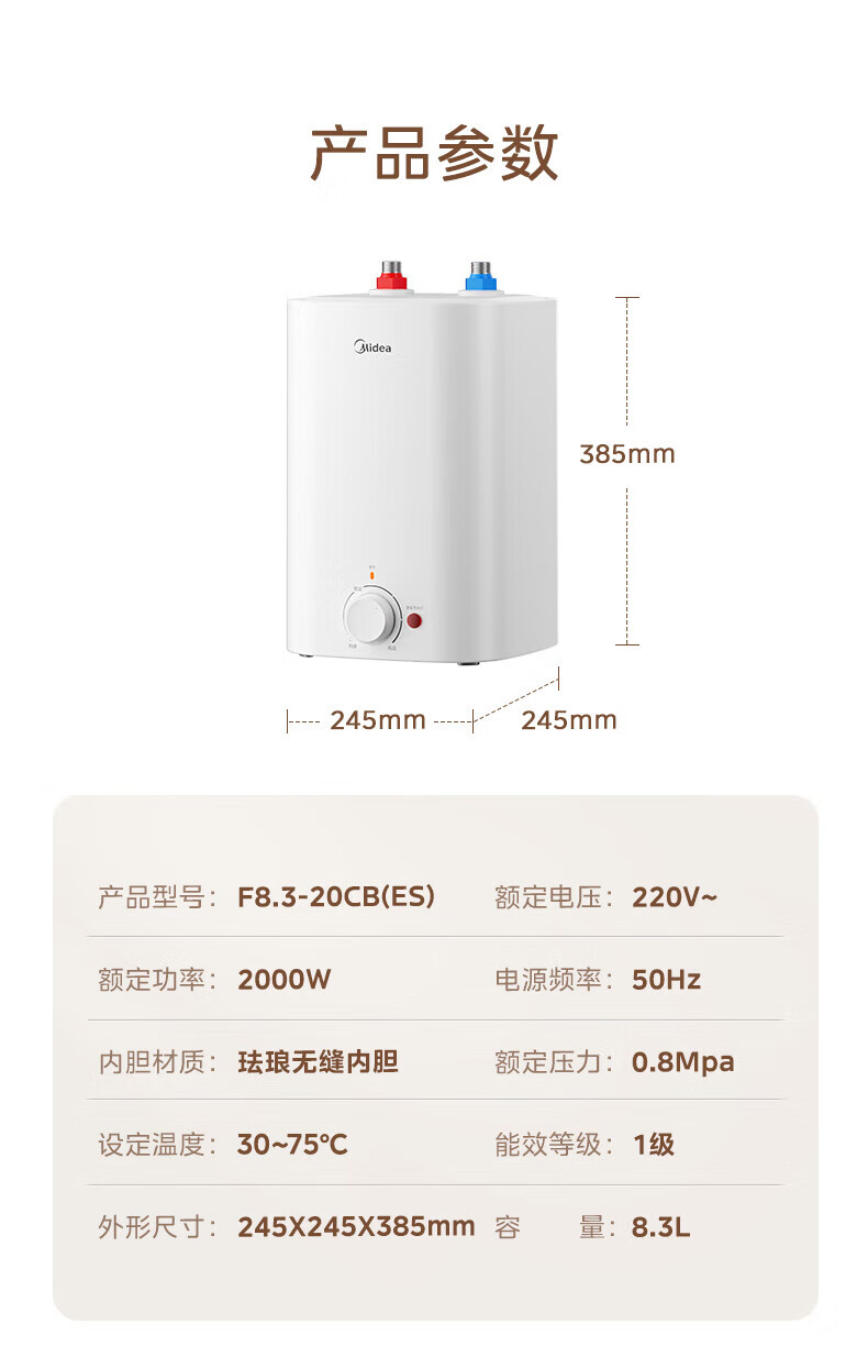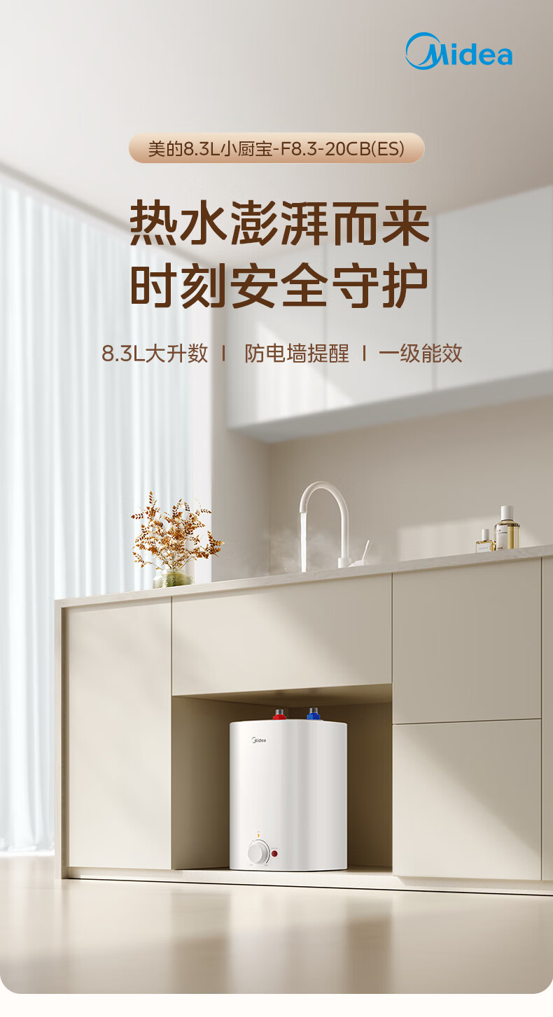 美的(Midea)新品8.3升储水式小厨宝家用48升一级能效2000W电热水器 防电墙 厨房热水宝 国家补贴F8.3-20CB(ES)