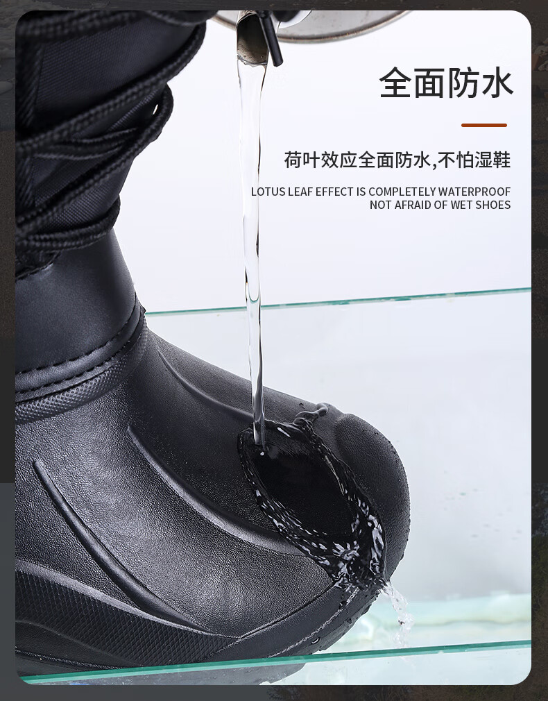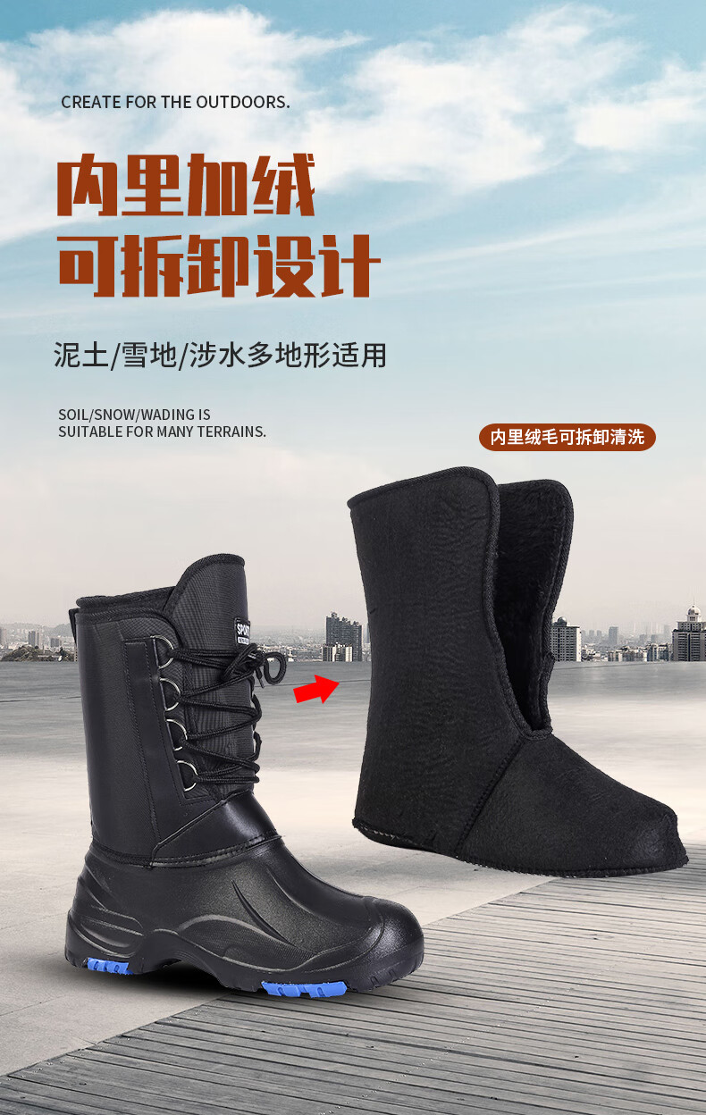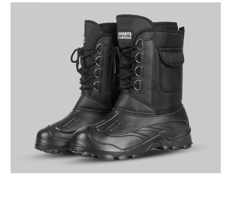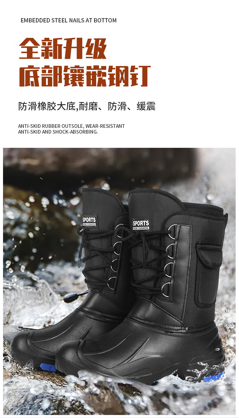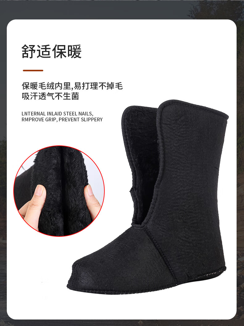 稻草人(MEXICAN)防水加棉加绒保暖靴冬季户外防滑矶钓防寒靴雪地冰钓冬钓男钓鱼鞋 黑色带钉+内胆一双加2号拍 42