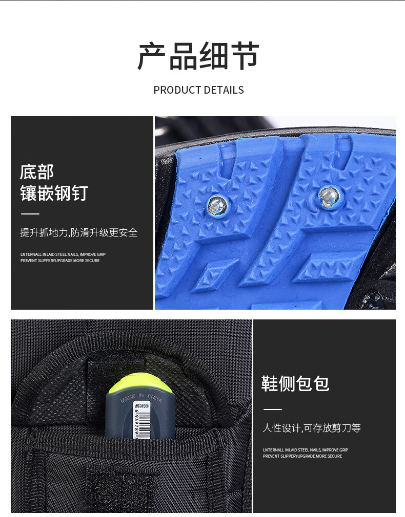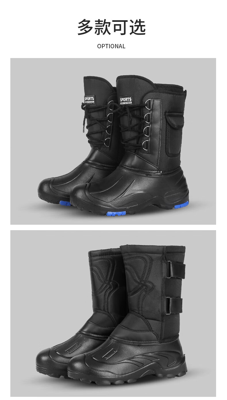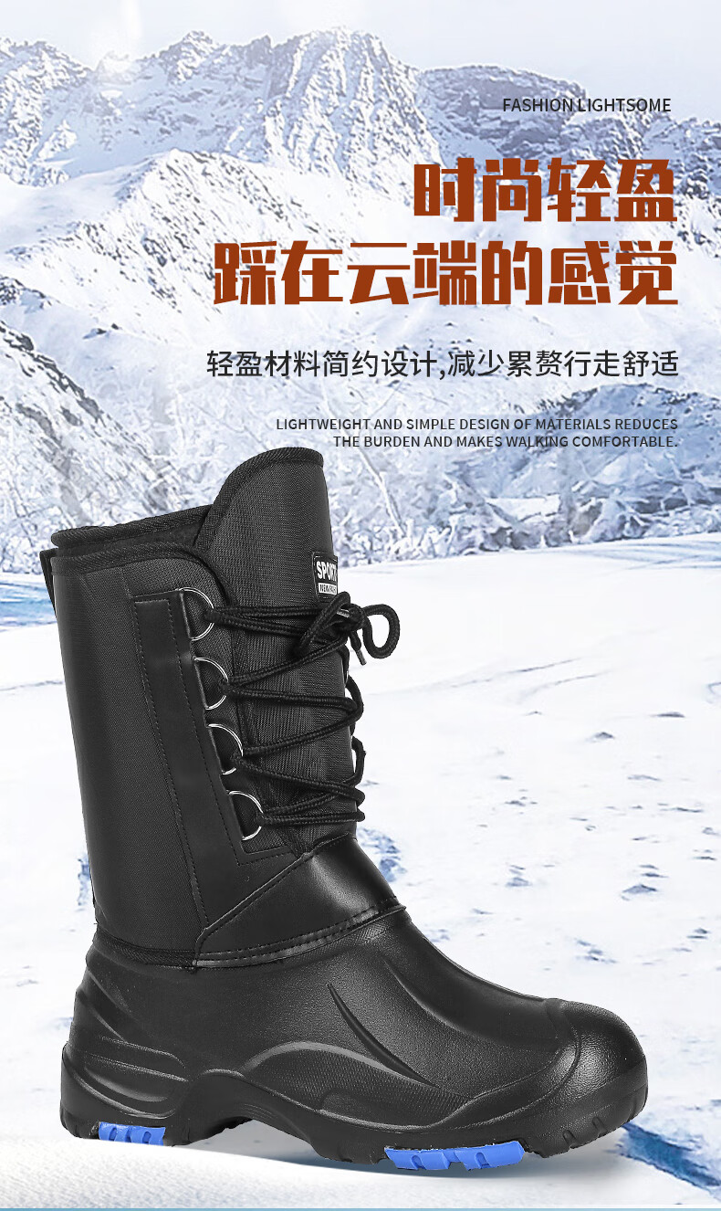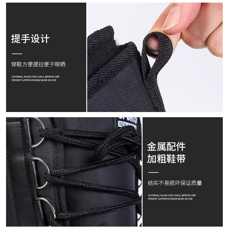 稻草人(MEXICAN)防水加棉加绒保暖靴冬季户外防滑矶钓防寒靴雪地冰钓冬钓男钓鱼鞋 黑色带钉+内胆一双加2号拍 42
