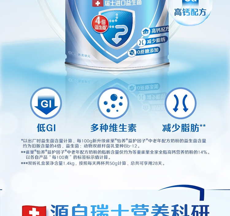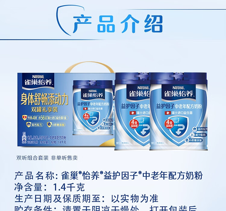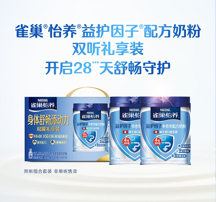 雀巢(Nestle)【侯明昊推荐】怡养益护因子中老年奶粉 礼盒700g*2 成人奶粉