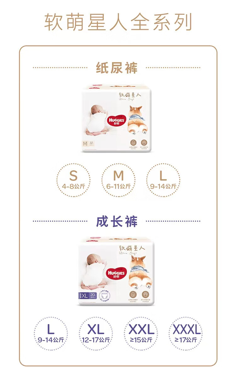 好奇(Huggies)软萌星人柯基裤拉拉裤XXL26片(15kg以上)尿不湿【软糯贴贴】