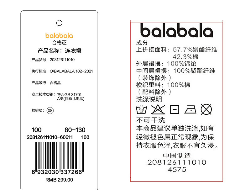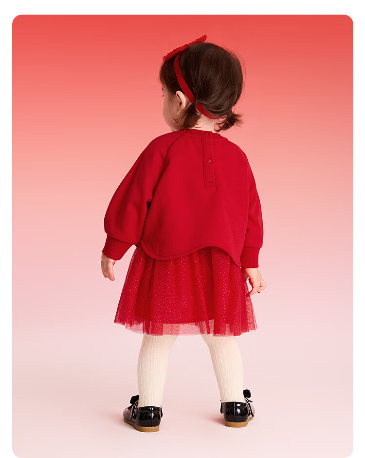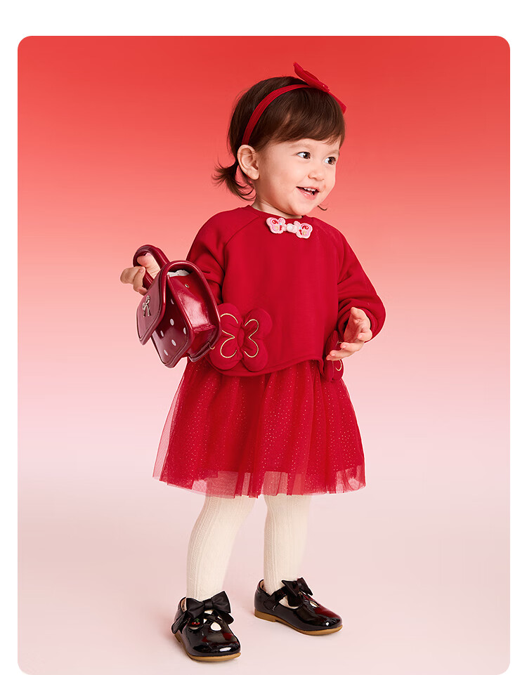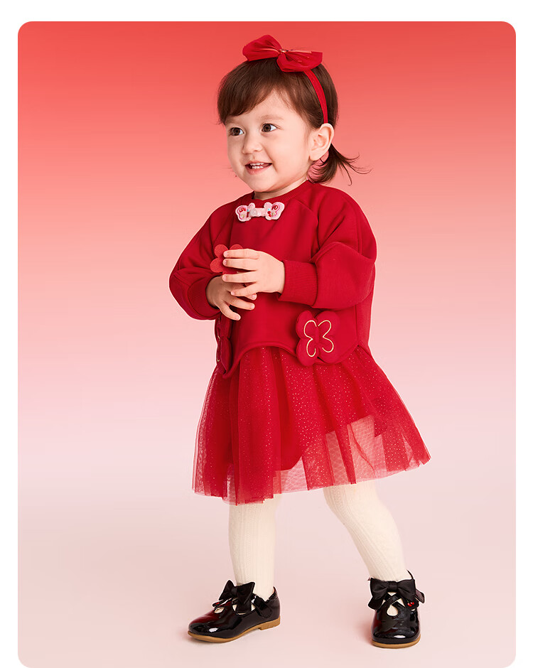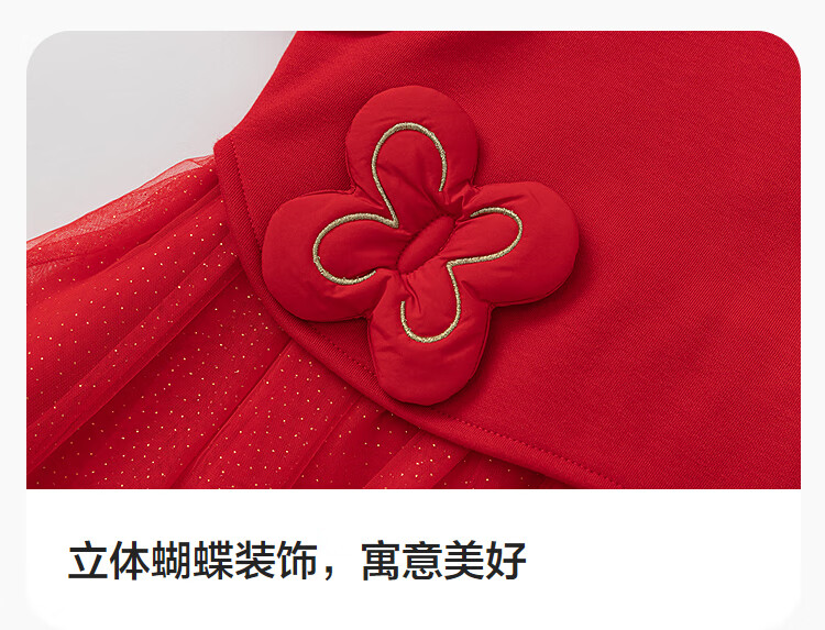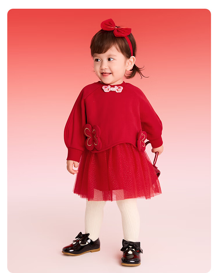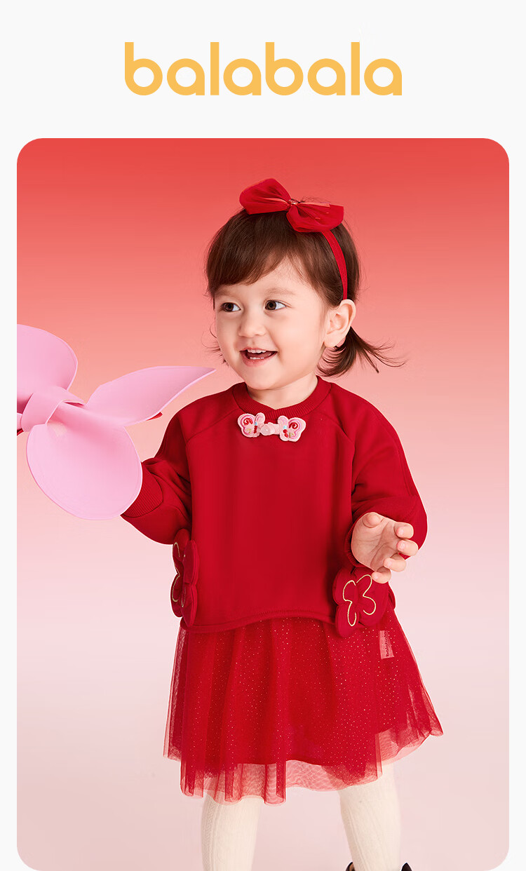 巴拉巴拉【balaOne】童装女童新中式网纱裙拼接红色新年拜年服裙子