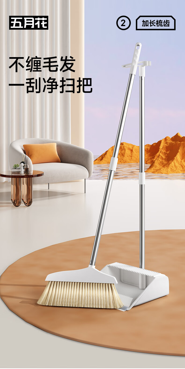 五月花扫把簸箕两件套不粘头笤帚带梳齿扫把簸箕套装扫帚大扫除
