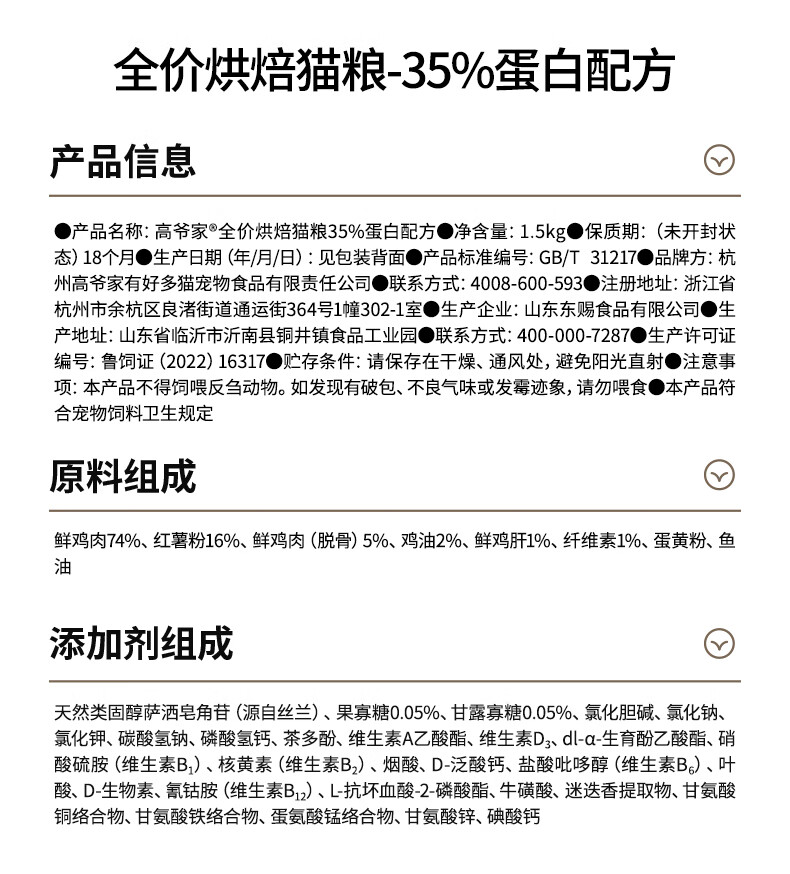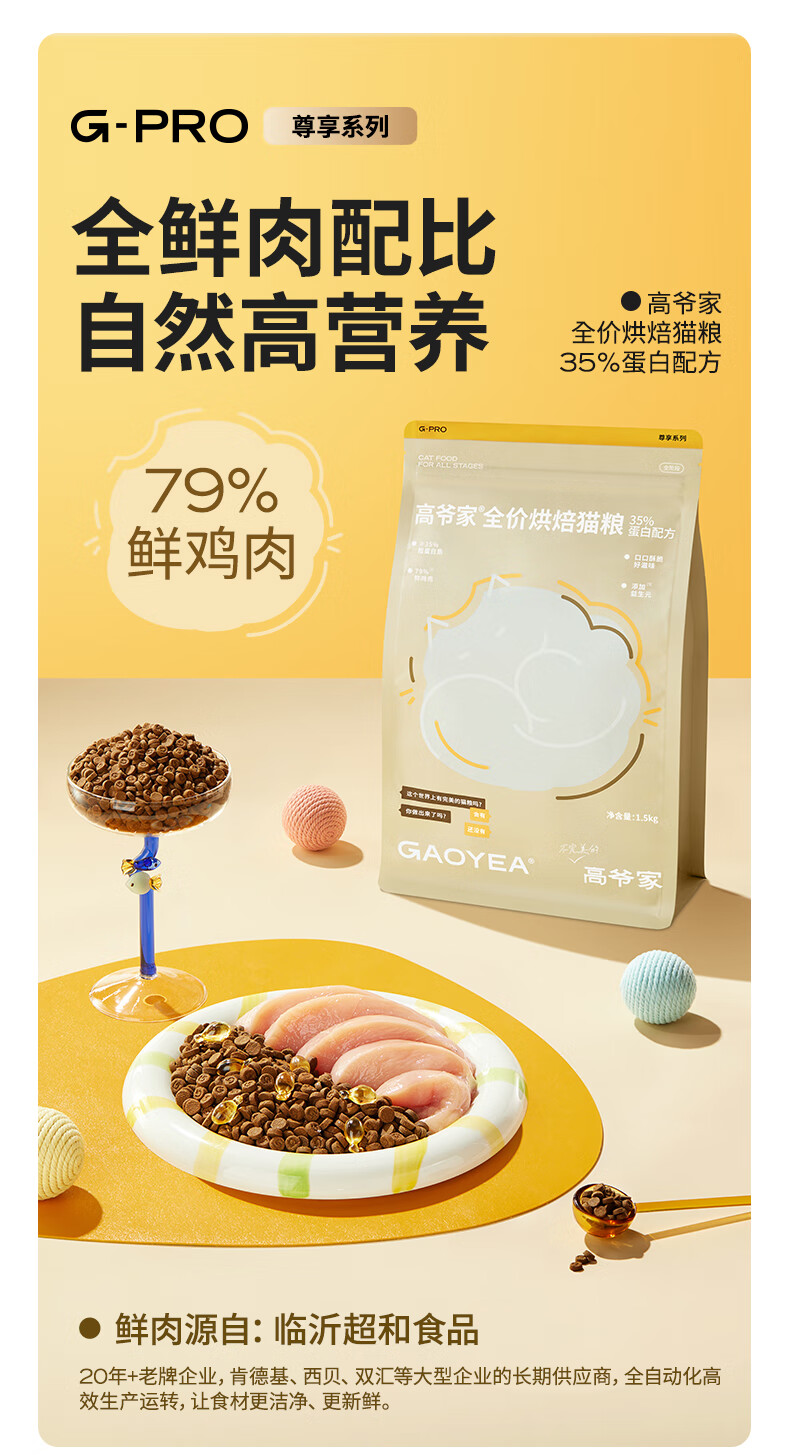 高爷家全价烘焙猫粮79%鲜鸡肉 双重益生元 鱼油猫饭干粮(临期26年9月) 烘焙粮1.5kg-临期26年9月-不退换