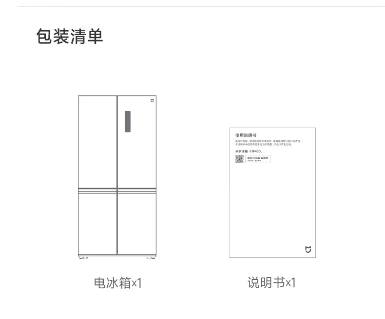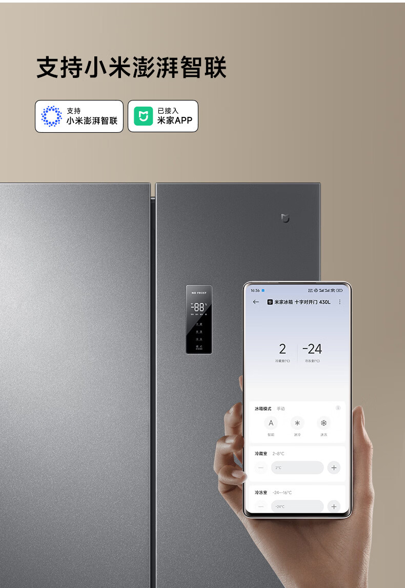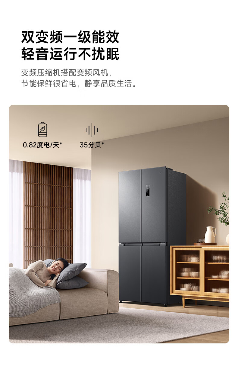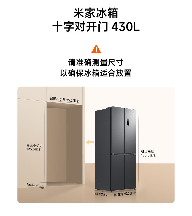 米家小米430L十字门冰箱一级能效变频家用超薄抗菌净味60cm超薄机身京东自营BCD-430WSMP国家补贴