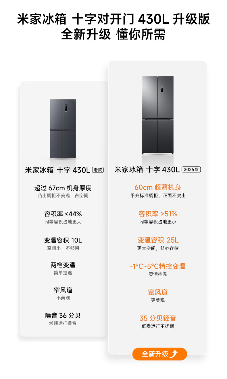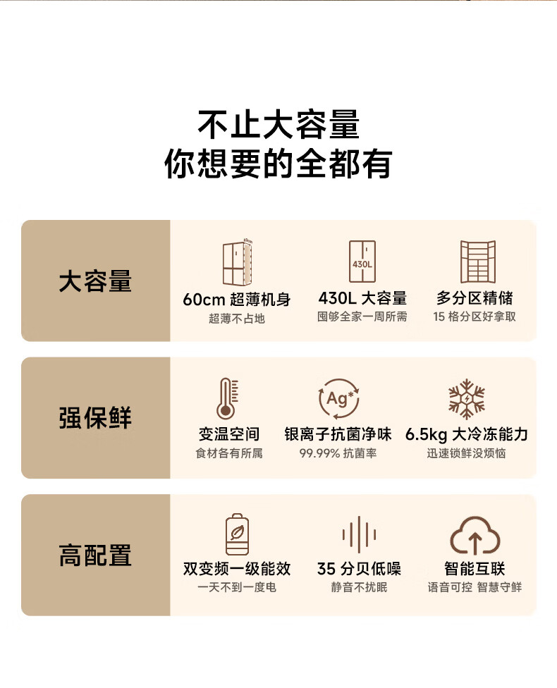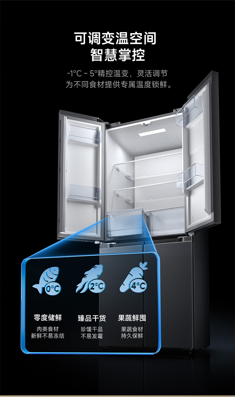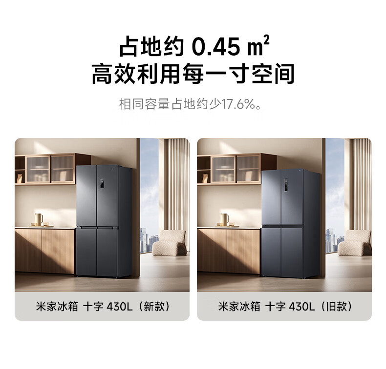 米家小米430L十字门冰箱一级能效变频家用超薄抗菌净味60cm超薄机身京东自营BCD-430WSMP国家补贴