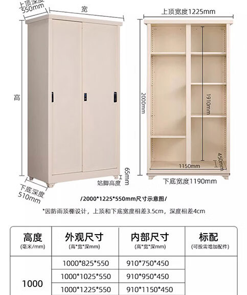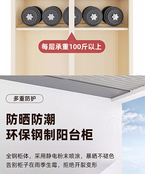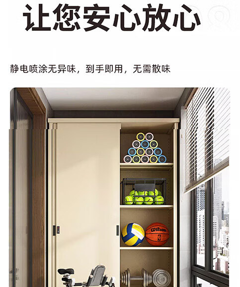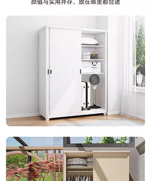 菲利特家用阳台储物柜防晒置物柜推拉门铁皮衣柜户外防水杂物收纳柜定制 十年质保 超强承重 售后无忧