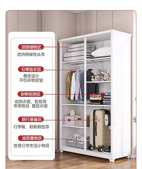 简易衣柜衣服置物柜家用多层移动收纳架客厅折叠储物柜租房储物柜 随机色·1层【不带轮】 48.5面宽