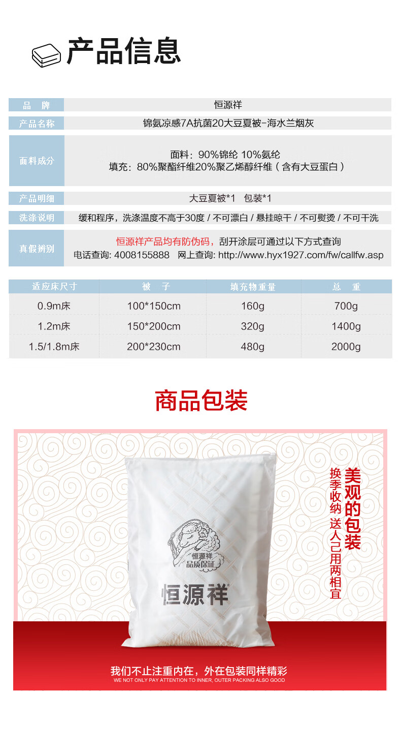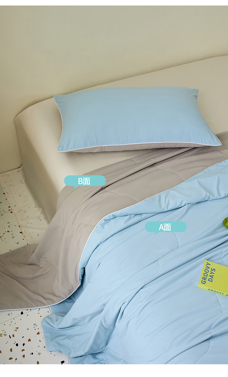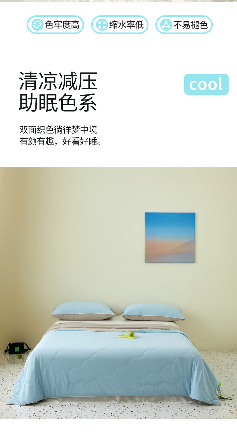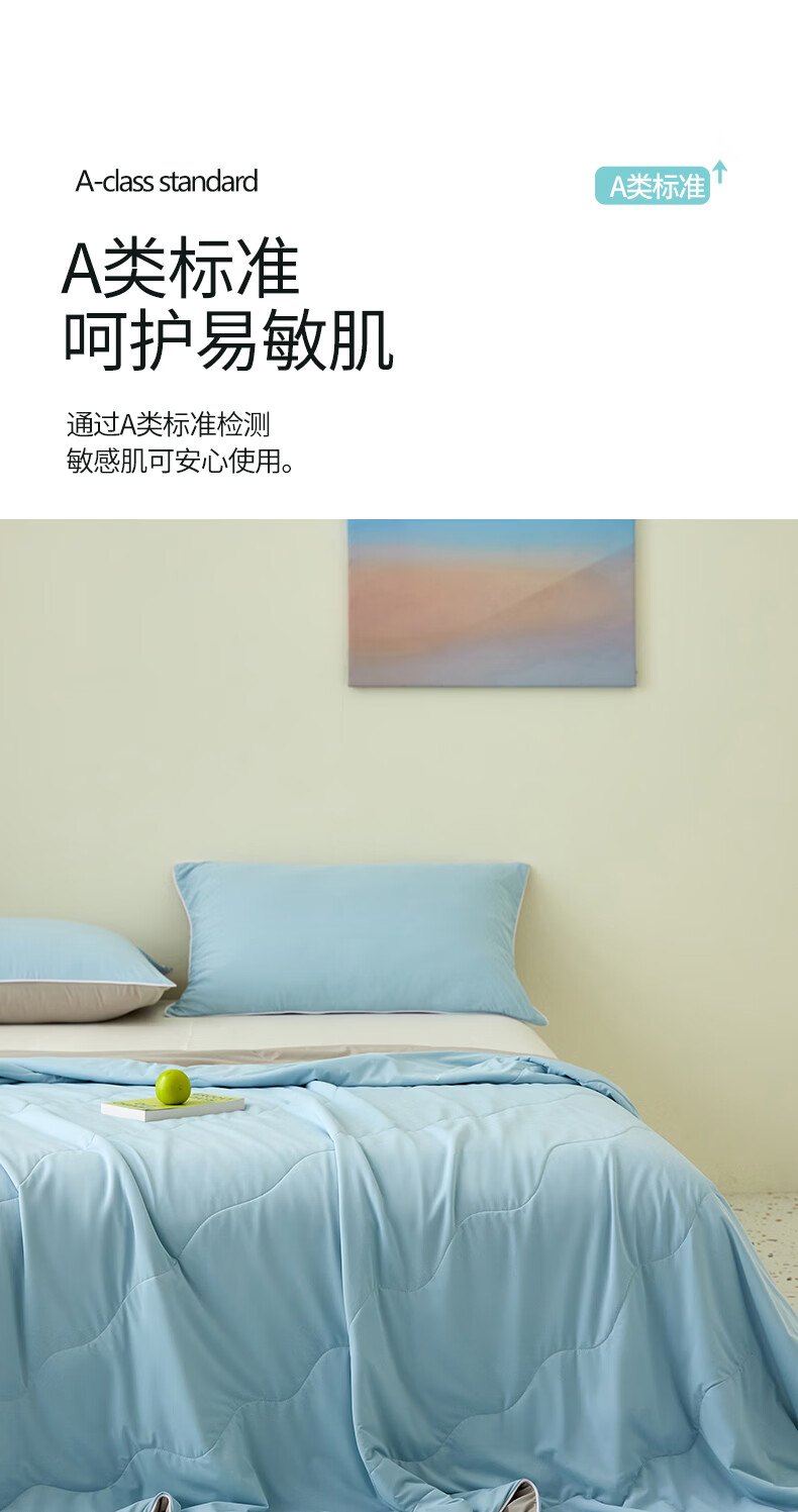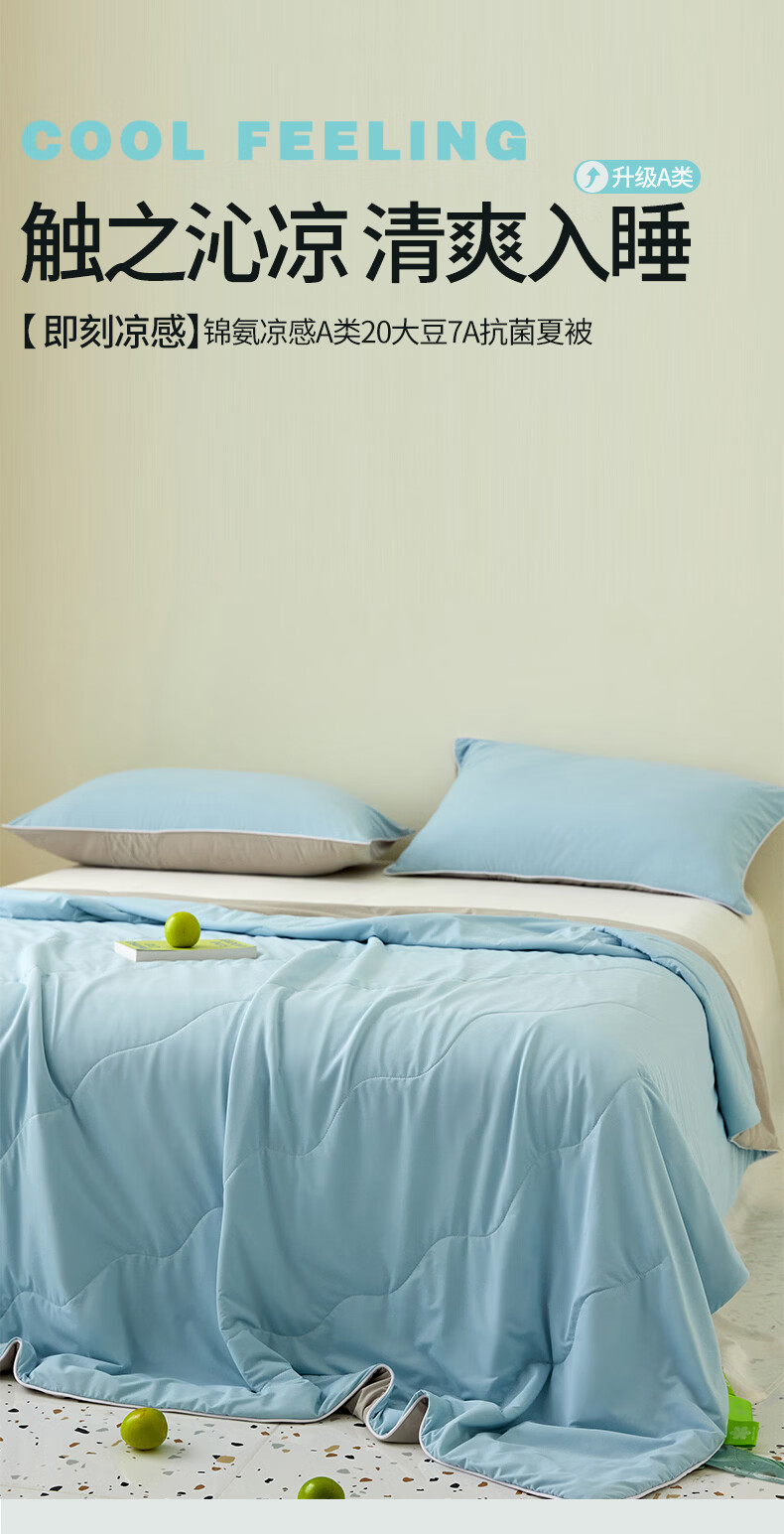 恒源祥空调被 凉感A类20%大豆7A抗菌夏凉被吸湿透气可机洗宿舍居家单被 海水蓝【7A抗菌+20大豆纤维】 100cm*150cm