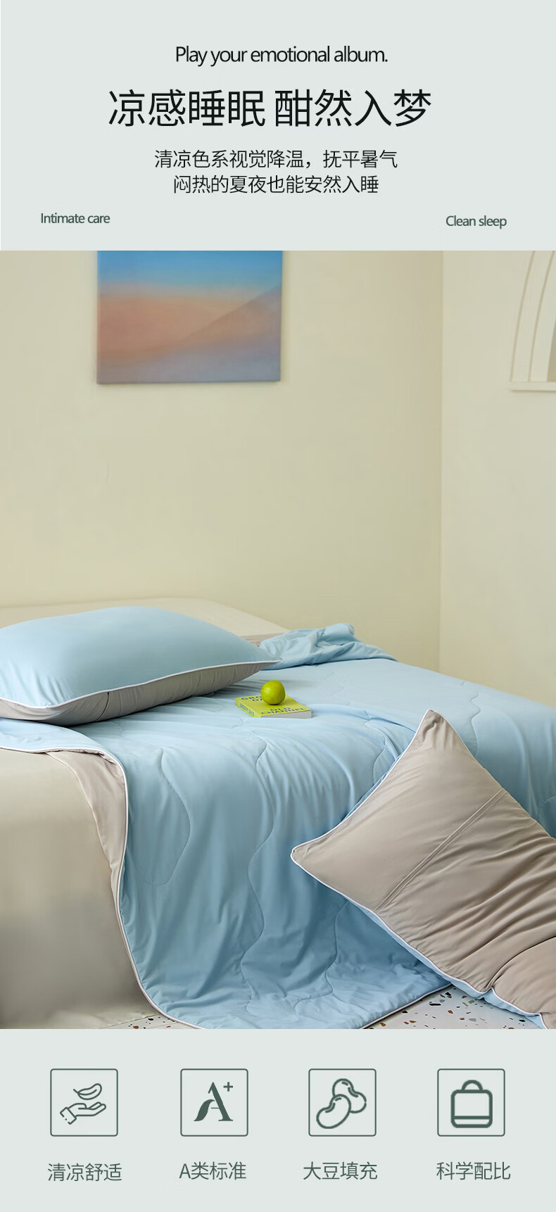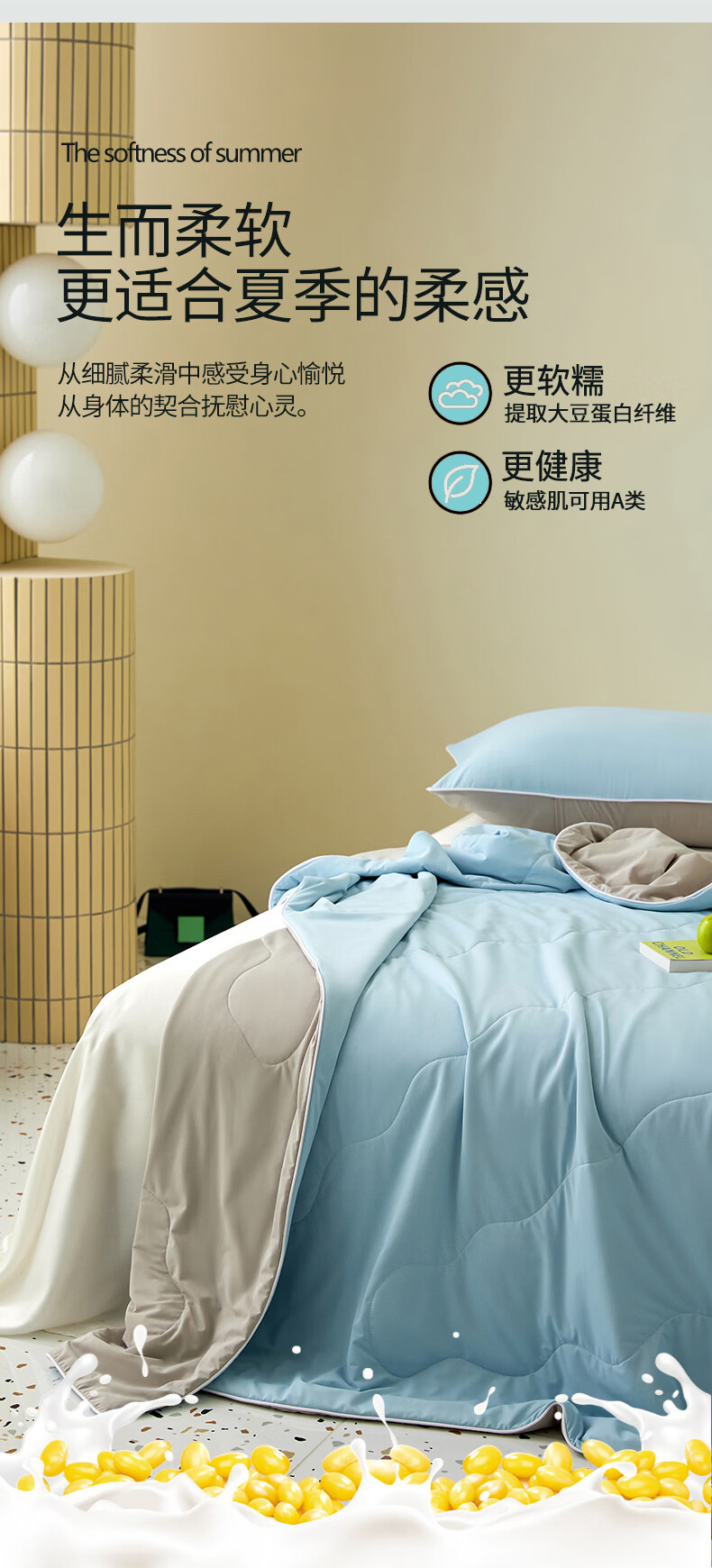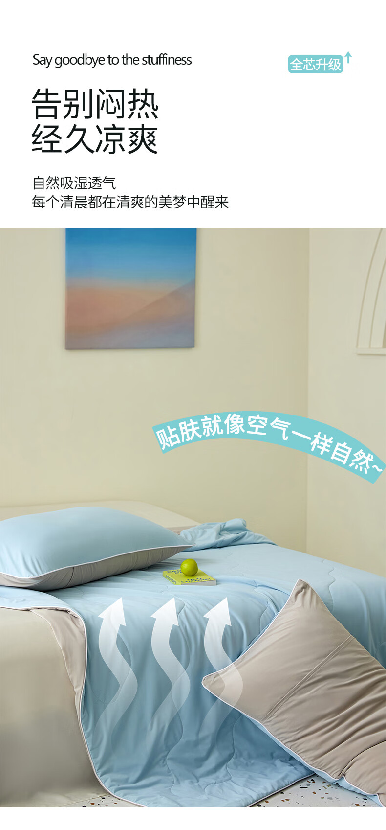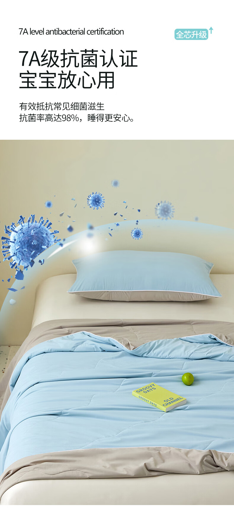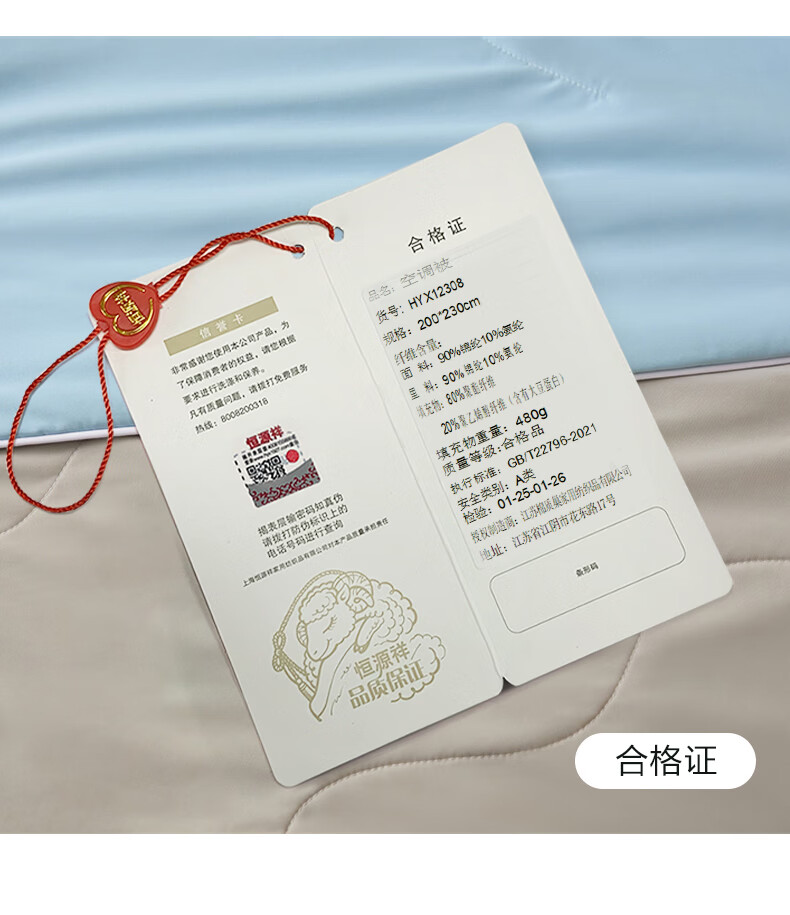 恒源祥空调被 凉感A类20%大豆7A抗菌夏凉被吸湿透气可机洗宿舍居家单被 海水蓝【7A抗菌+20大豆纤维】 100cm*150cm