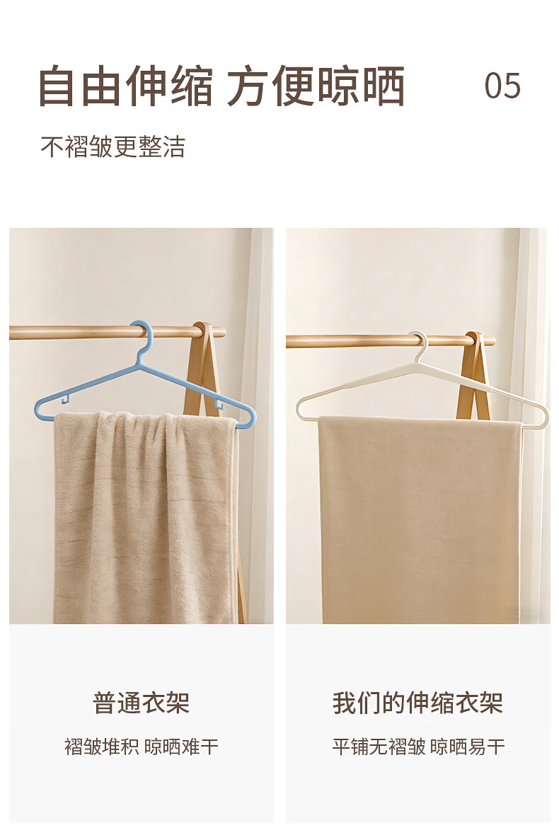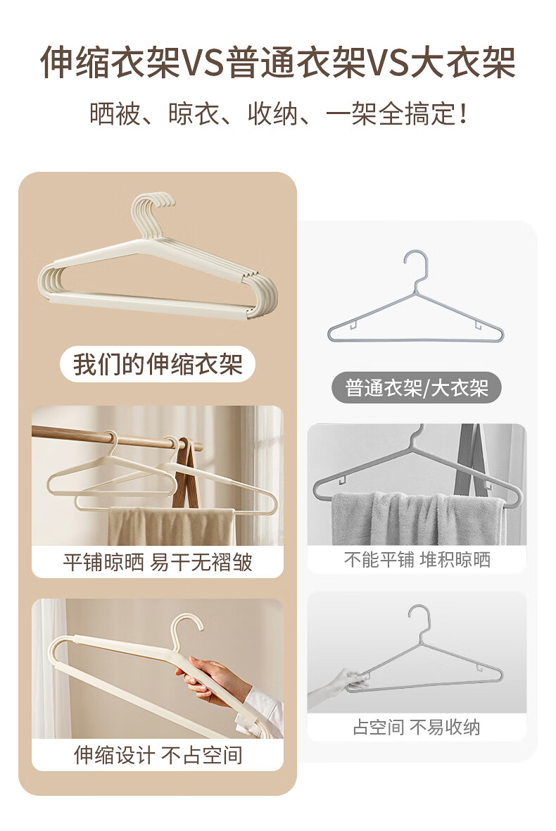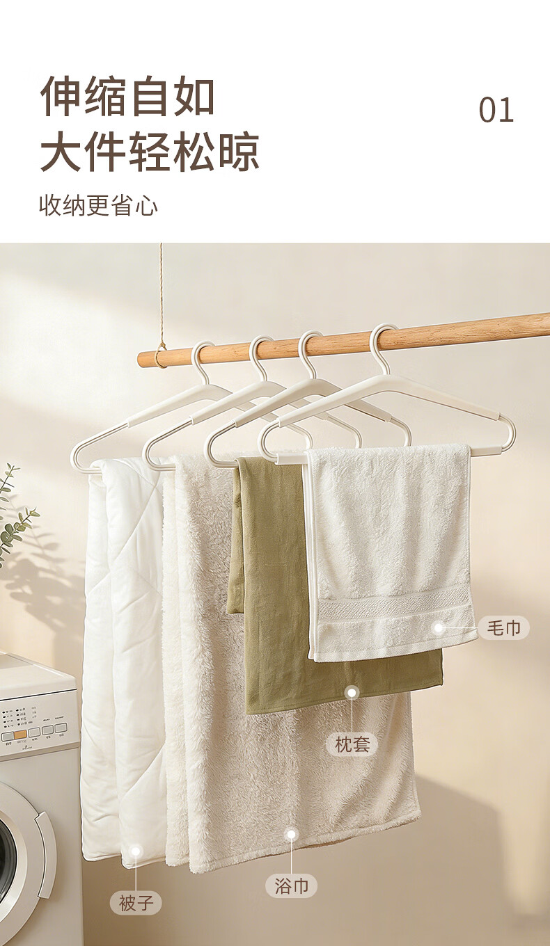 稻草熊可伸缩被单架子大衣架家用晾晒床单神器阳台晾晒被套架子专用挂架 伸缩衣架二个装(奶油白)
