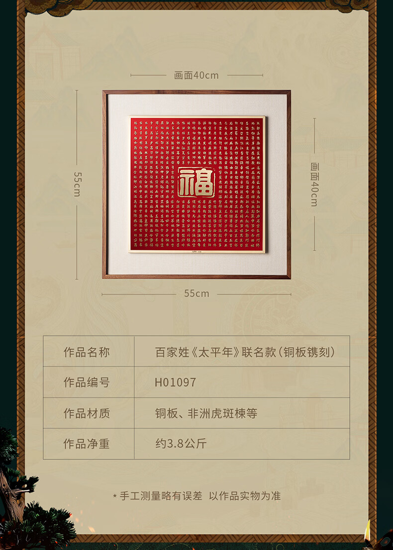 铜师傅手工錾刻 铜雕画 百家姓《太平年》联名款铜板镌刻