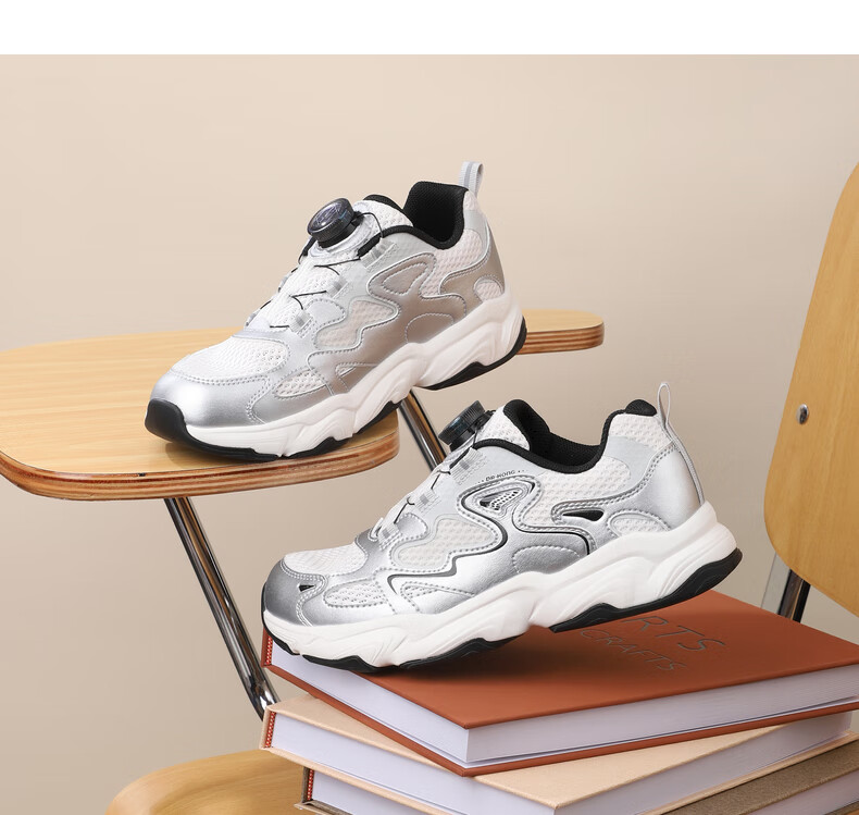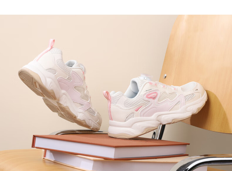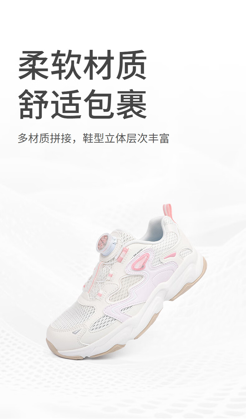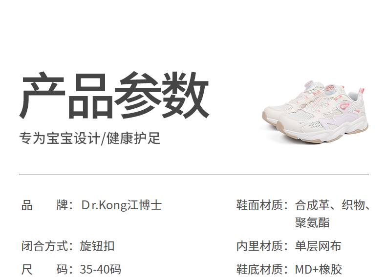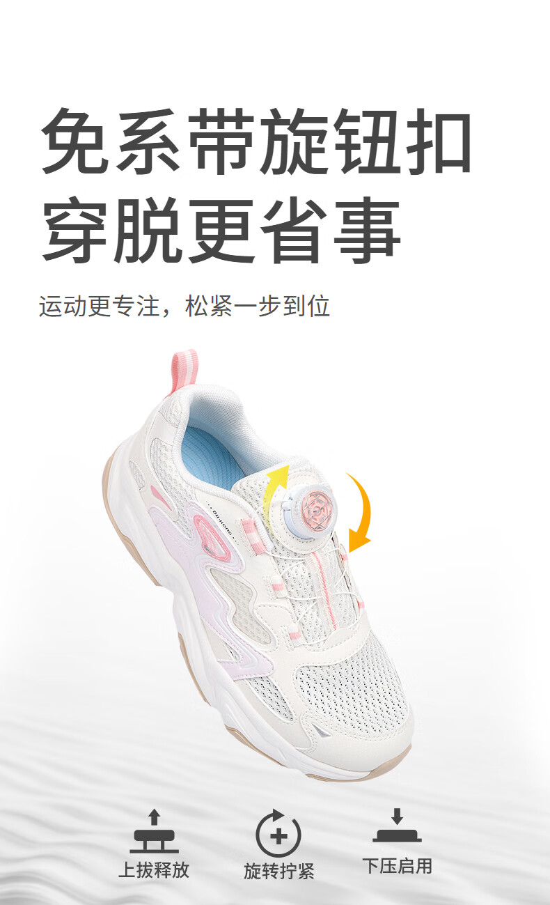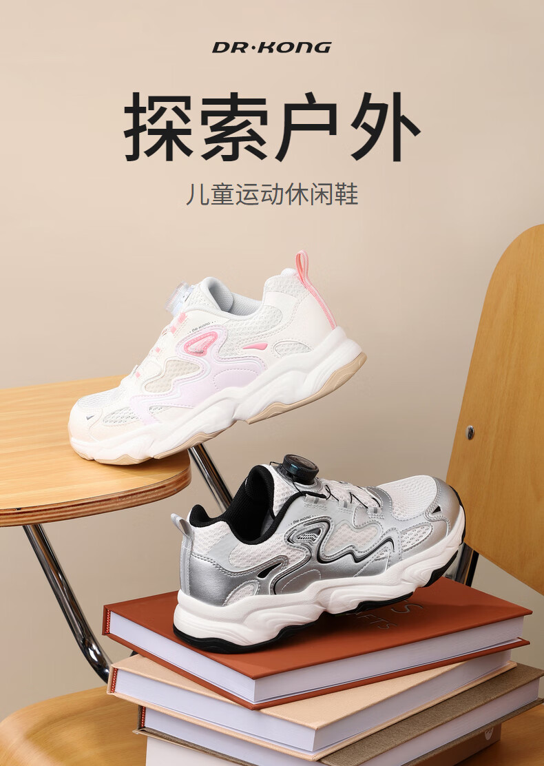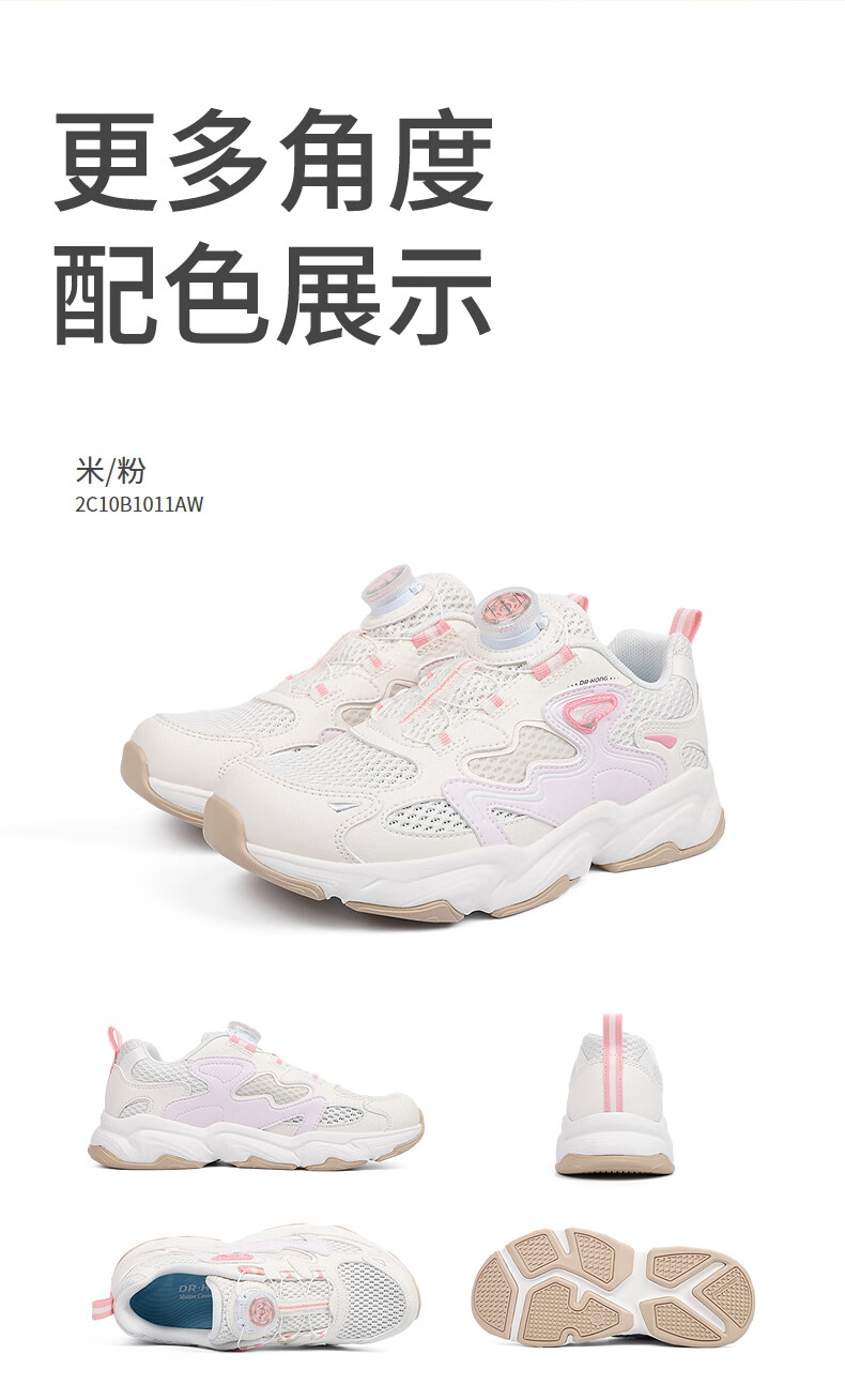江博士(DR·KONG)春季男女中大童防滑耐磨运动鞋 免系旋钮扣儿童鞋 米/粉 38 脚长约23.6-24.2
