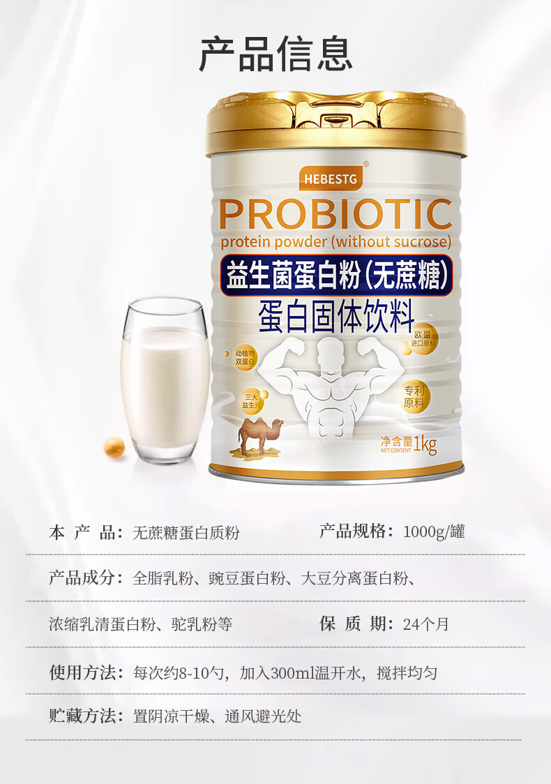 哈贝高益生菌蛋白质粉增肥增胖驼奶粉无蔗糖中老年人滋补免疫力营养品 欧盟进口 3罐周期装(店长推荐)